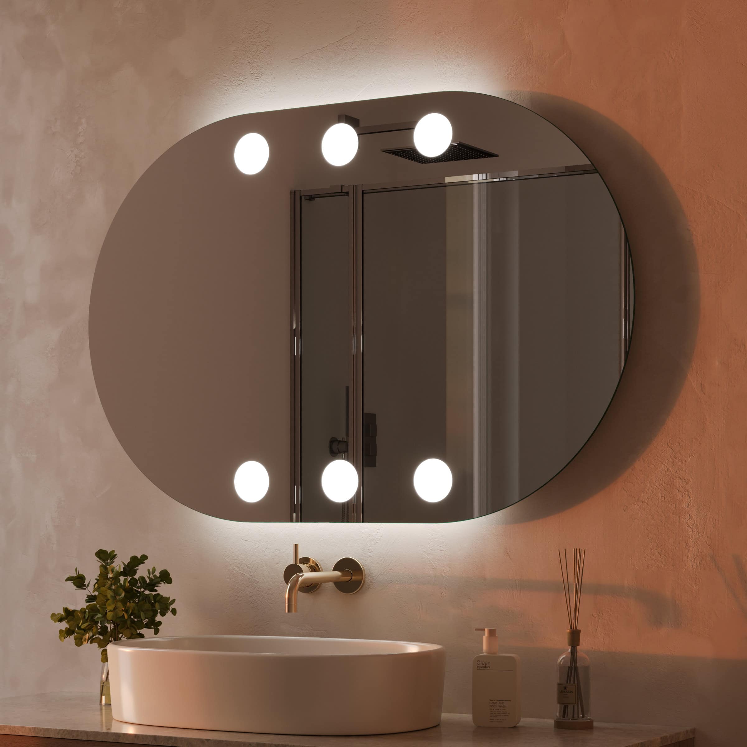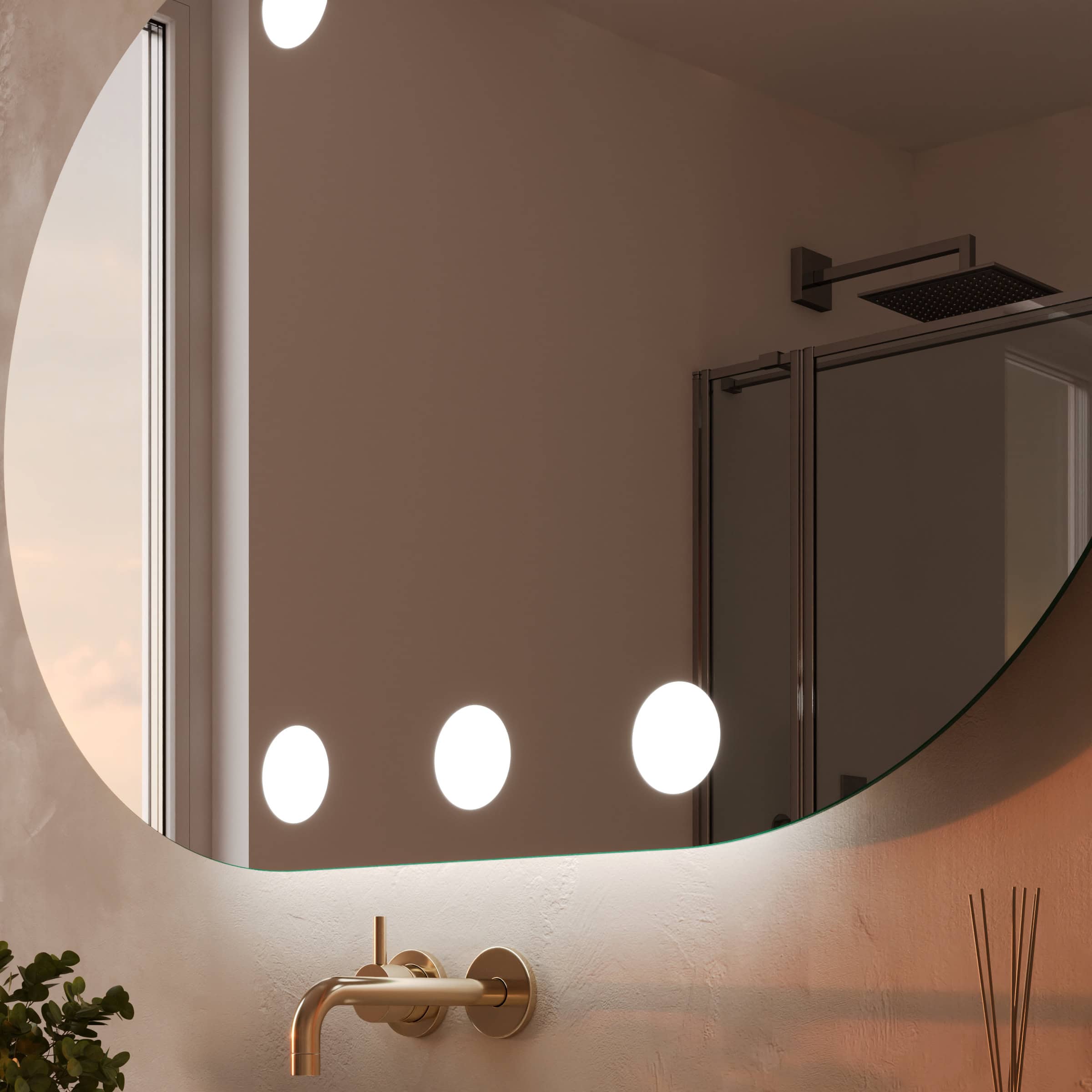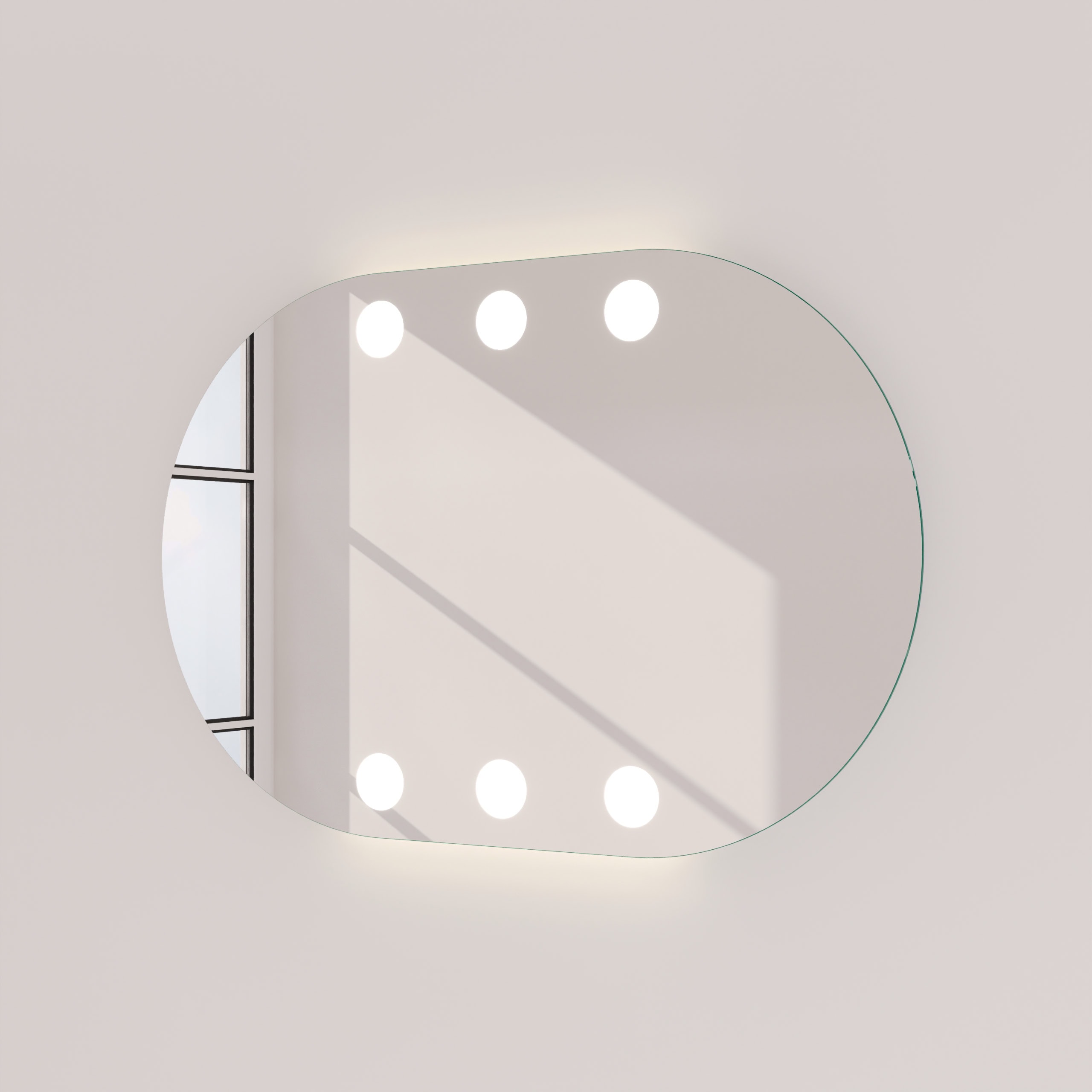 Dieser exquisit abgerundete Badspiegel ist mehr als nur eine Reflexionsfläche – er ist ein zentrales Designelement, das Ihrem Badezimmer eine sanfte, organische Note verleiht. Die weichen Konturen schaffen eine ruhige und einladende Atmosphäre. In diese Form integriert, sorgt die beidseitige LED-Beleuchtung oben und unten für eine professionelle und zugleich schmeichelhafte Ausleuchtung. Inspiriert vom klassischen Hollywood-Spiegel, werden die Leuchtfelder indirekt erhellt, was ein absolut blendfreies, schattenfreies Licht erzeugt – optimiert für präzise kosmetische Anwendungen. Gefertigt aus 5mm starkem Kristallspiegel, garantiert er eine brillante, unverfälschte Ansicht. Die sorgfältig geschliffenen und veredelten Kanten zeugen von höchster Handwerkskunst und bieten eine sichere, hochwertige Haptik. Dank der individuellen Maßanfertigung fügt sich dieser Spiegel nahtlos in jede Raumarchitektur ein und wird zu Ihrem ganz persönlichen Meisterstück.