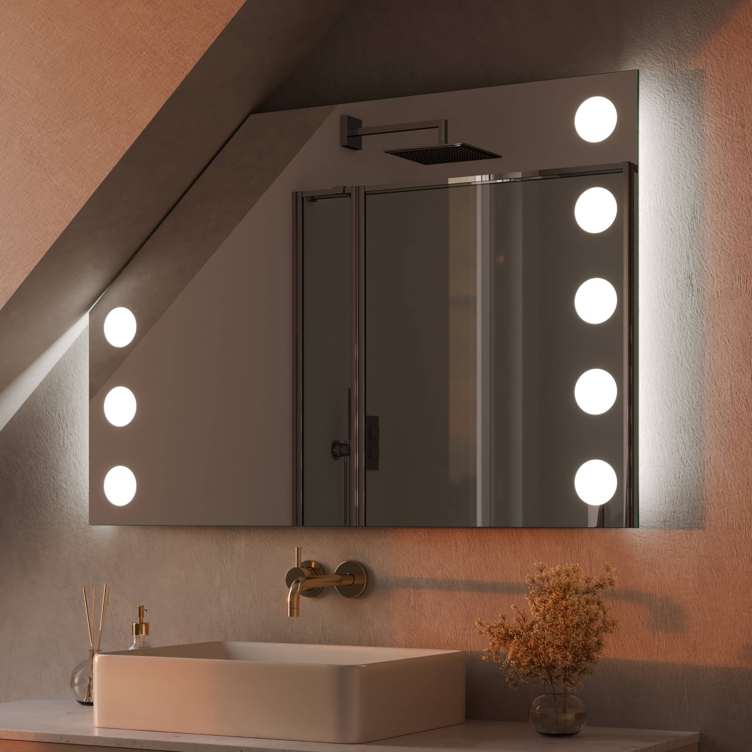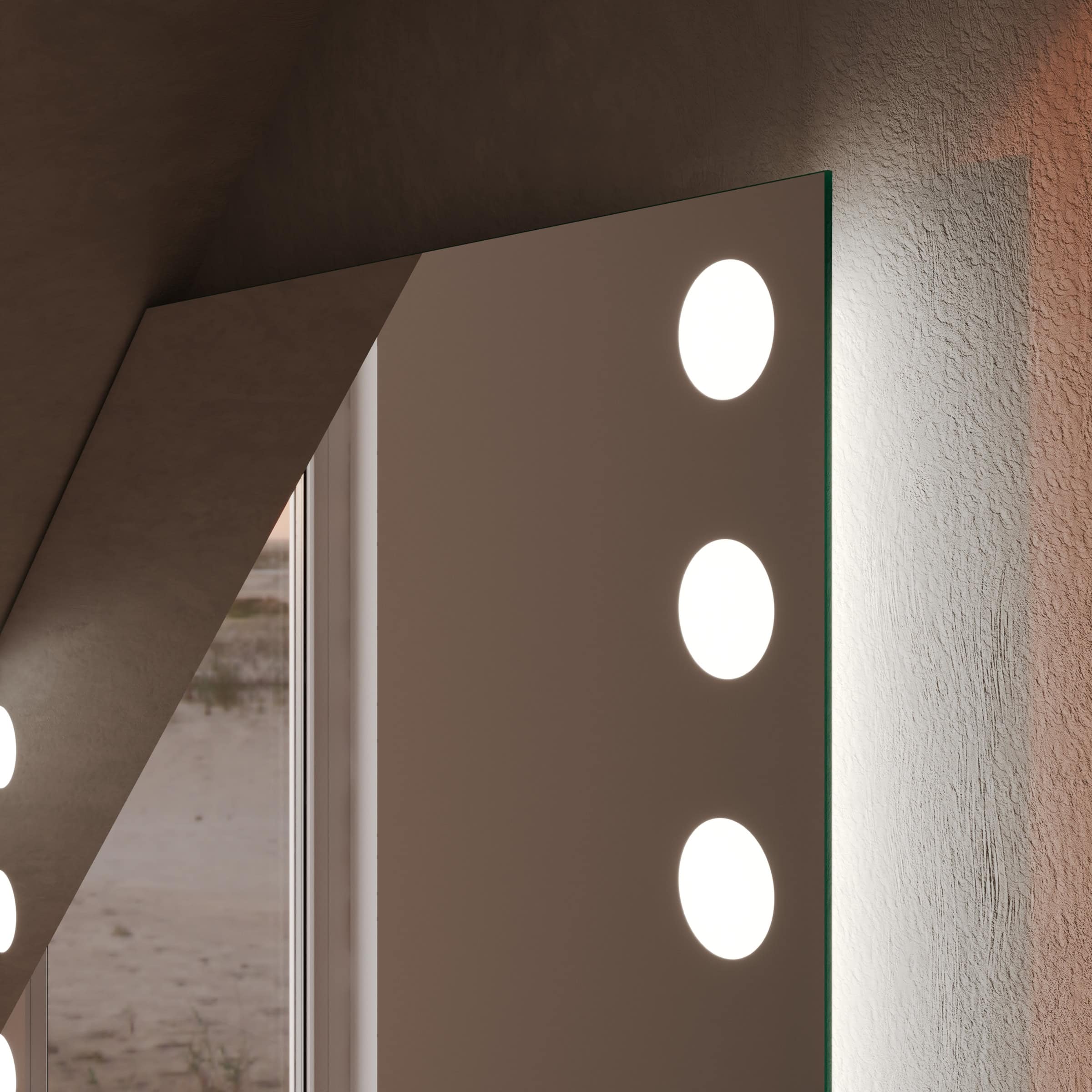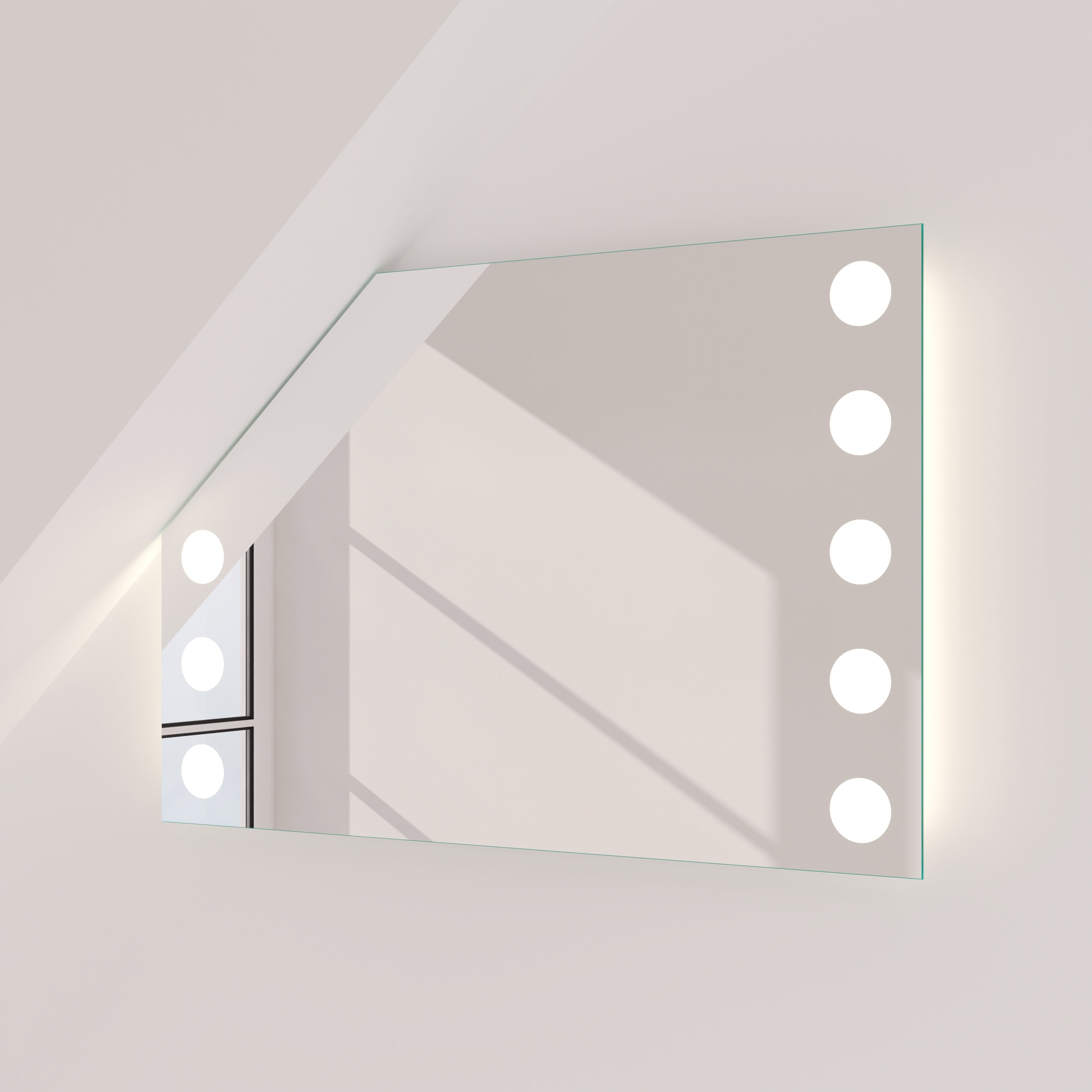 Der Badspiegel Hollywood C ist die souveräne Antwort auf architektonische Herausforderungen. Dank präziser Maßanfertigung fügt er sich millimetergenau in Ihre Dachschräge ein und verwandelt einen oft ungenutzten Bereich in den funktionalen Mittelpunkt Ihres Badezimmers. Gefertigt aus 5mm starkem Kristallspiegel mit sorgfältig geschliffenen und veredelten Kanten, zeugt jedes Detail von kompromissloser Qualität. Die beidseitige LED-Beleuchtung, deren Leuchtfelder indirekt erhellt werden, erzeugt eine schattenfreie und schmeichelhafte Ausleuchtung Ihres Gesichts. Dieses speziell für die Kosmetik optimierte Licht lässt Ihren Teint natürlich erstrahlen und macht die tägliche Pflegeroutine zu einem luxuriösen Erlebnis. Mit seiner filigranen Tiefe von nur 35mm wirkt dieser Badspiegel mit Beleuchtung wie eine nahtlose Erweiterung der Wand und unterstreicht ein klares, aufgeräumtes Raumkonzept.