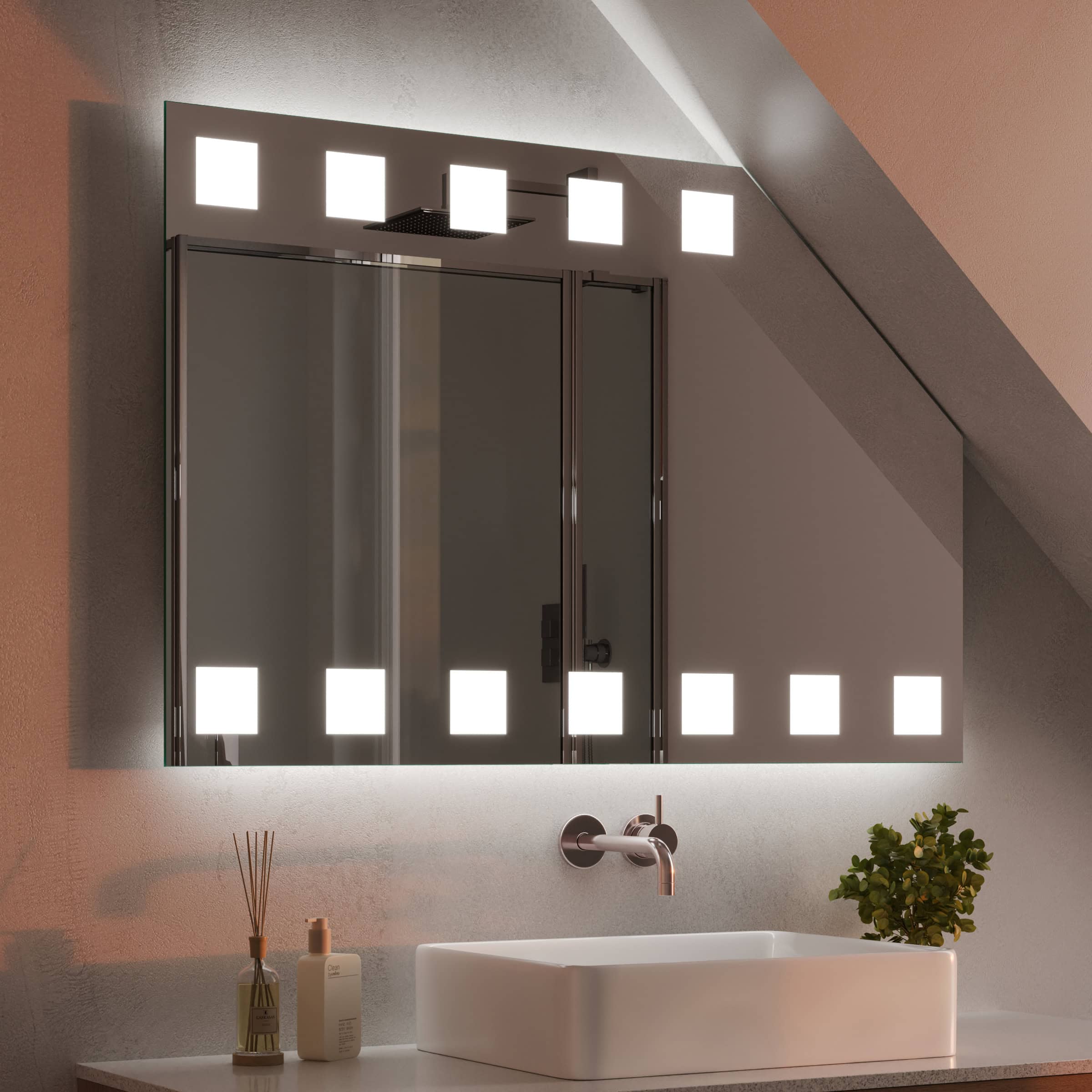 Der Badspiegel Hollywood Dice C wurde speziell für Räume mit Dachschrägen konzipiert und fügt sich als individuelle Maßanfertigung nahtlos in Ihre Badarchitektur ein. Gefertigt aus brillantem, 5 mm starkem Kristallspiegelglas, dessen Kanten sorgfältig geschliffen und veredelt sind, wird er zum zentralen Gestaltungselement. Die Besonderheit liegt im Lichtkonzept: Die oben und unten positionierten Leuchtfelder werden indirekt erhellt und tauchen Ihr Gesicht in ein schattenfreies, schmeichelhaftes Licht – optimiert für die tägliche Kosmetik und Pflege. Diese sanfte, blendfreie LED-Beleuchtung schafft nicht nur ideale Sichtverhältnisse, sondern auch eine Atmosphäre von Ruhe und Exklusivität. Statt eines Kompromisses erhalten Sie einen Spiegel für die Dachschräge, der Funktionalität und anspruchsvolles Design auf höchstem Niveau vereint und Ihr Badezimmer in eine persönliche Wohlfühloase verwandelt.