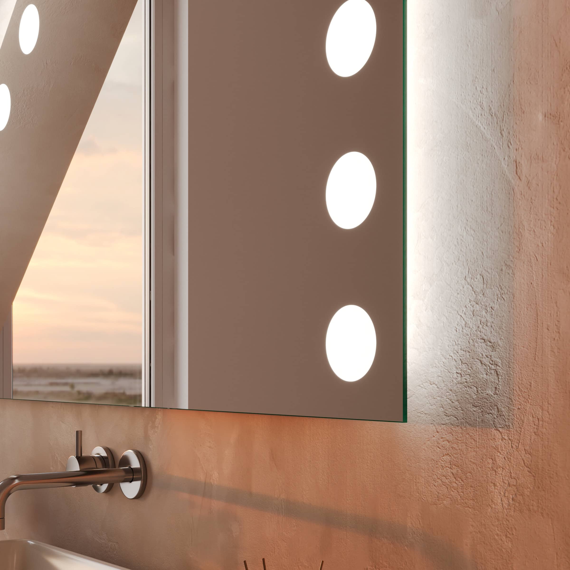 Dieser exklusive Badspiegel wurde speziell konzipiert, um sich millimetergenau an Ihre individuelle Dachschräge anzupassen. Wo Standardlösungen scheitern, entfaltet dieses Meisterstück seine volle Wirkung und nutzt den Raum optimal aus. Gefertigt aus 5mm starkem Kristallspiegelglas, garantiert er nicht nur ein außergewöhnlich brillantes und klares Spiegelbild, sondern auch höchste Langlebigkeit. Die seitlich positionierten LED-Leuchtfelder, inspiriert vom klassischen Hollywood-Spiegel, schaffen eine schattenfreie und professionelle Ausleuchtung – perfekt optimiert für Ihr tägliches Kosmetik- und Pflegeritual. Durch die indirekte Erhellung der Lichtfelder entsteht dabei ein weiches, angenehmes Ambiente ohne zu blenden. Die sorgfältig geschliffenen und veredelten Kanten unterstreichen den hohen Qualitätsanspruch und sorgen für eine elegante, rahmenlose Optik, die sich nahtlos in anspruchsvolle Raumkonzepte einfügt.