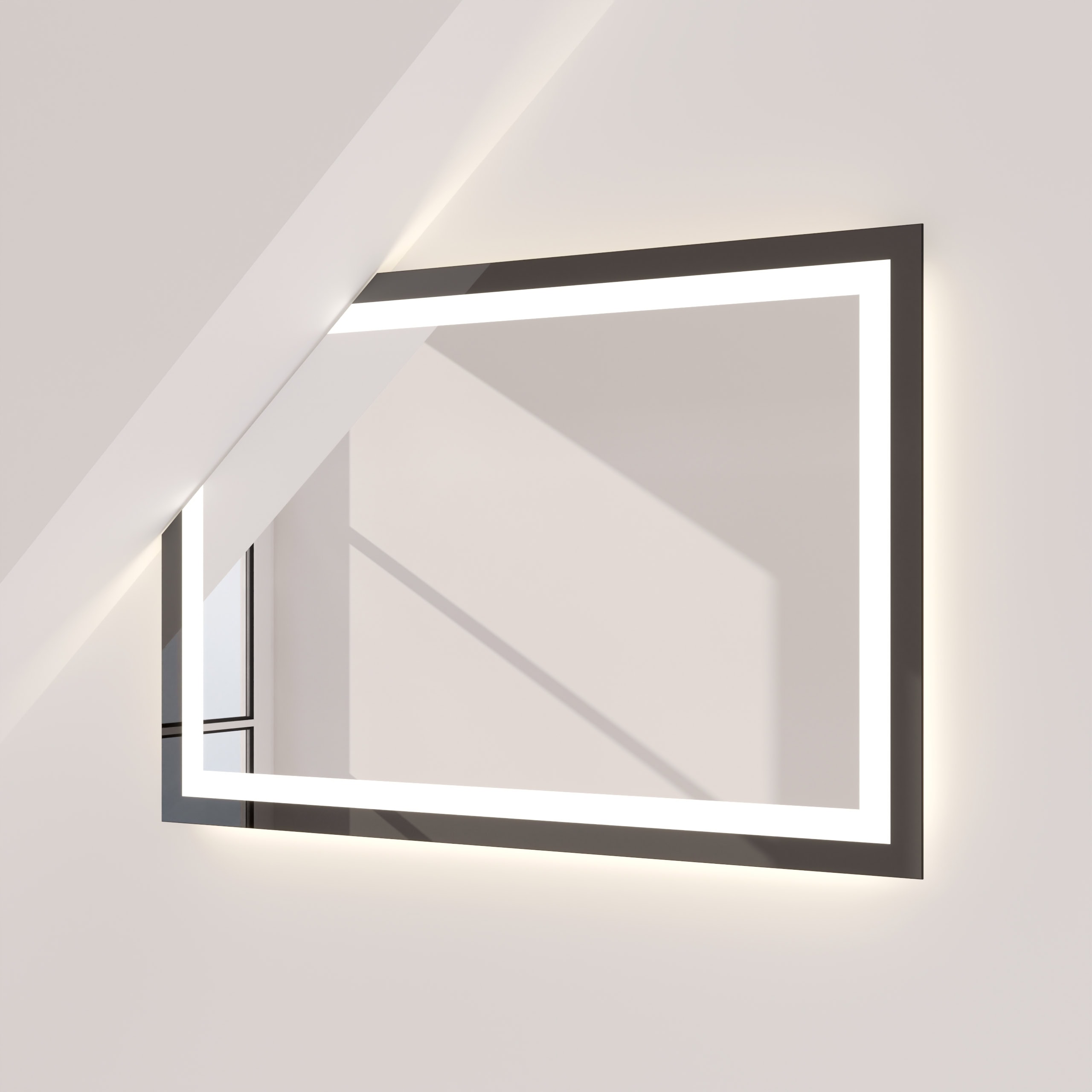 Der Badspiegel Noemi C wurde speziell für die anspruchsvolle Integration in Bäder mit Dachschrägen konzipiert. Dank der individuellen Maßanfertigung fügt er sich millimetergenau in Ihre Raumsituation ein und schafft ein Bild von vollendeter Harmonie. Der edle, 40 mm breite Rahmen aus tiefschwarzem Glas verleiht dem Spiegel eine markante Tiefe und einen modernen, grafischen Charakter. Die umlaufende LED-Beleuchtung ist ein Meisterstück der Lichttechnik: Sie erhellt indirekt die 4 cm breiten, satinierten Leuchtfelder und sorgt für eine schattenfreie, kosmetikoptimierte Ausleuchtung Ihres Gesichts. Im ausgeschalteten Zustand präsentieren sich diese Flächen in einer dezenten Milchglas-Optik. Gefertigt aus 5 mm starkem Kristallspiegel mit präzise geschliffenen und veredelten Kanten, garantiert dieser Spiegel nicht nur eine brillante, verzerrungsfreie Reflexion, sondern auch eine außergewöhnliche Wertigkeit, die Sie jeden Tag aufs Neue erleben werden.