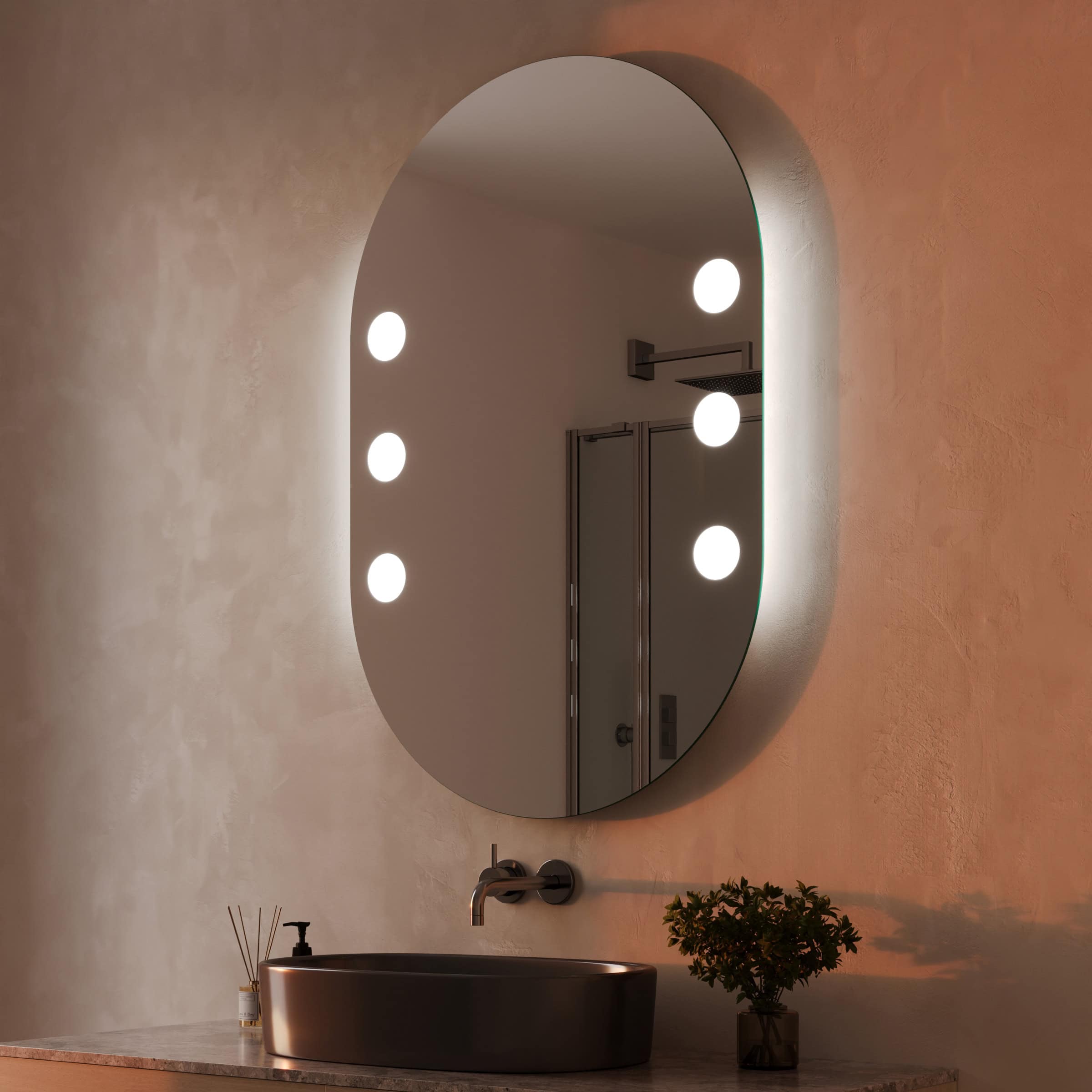 Eleganz in Bewegung: Ihr geschwungener Badspiegel mit perfekter Hollywood-Beleuchtung.