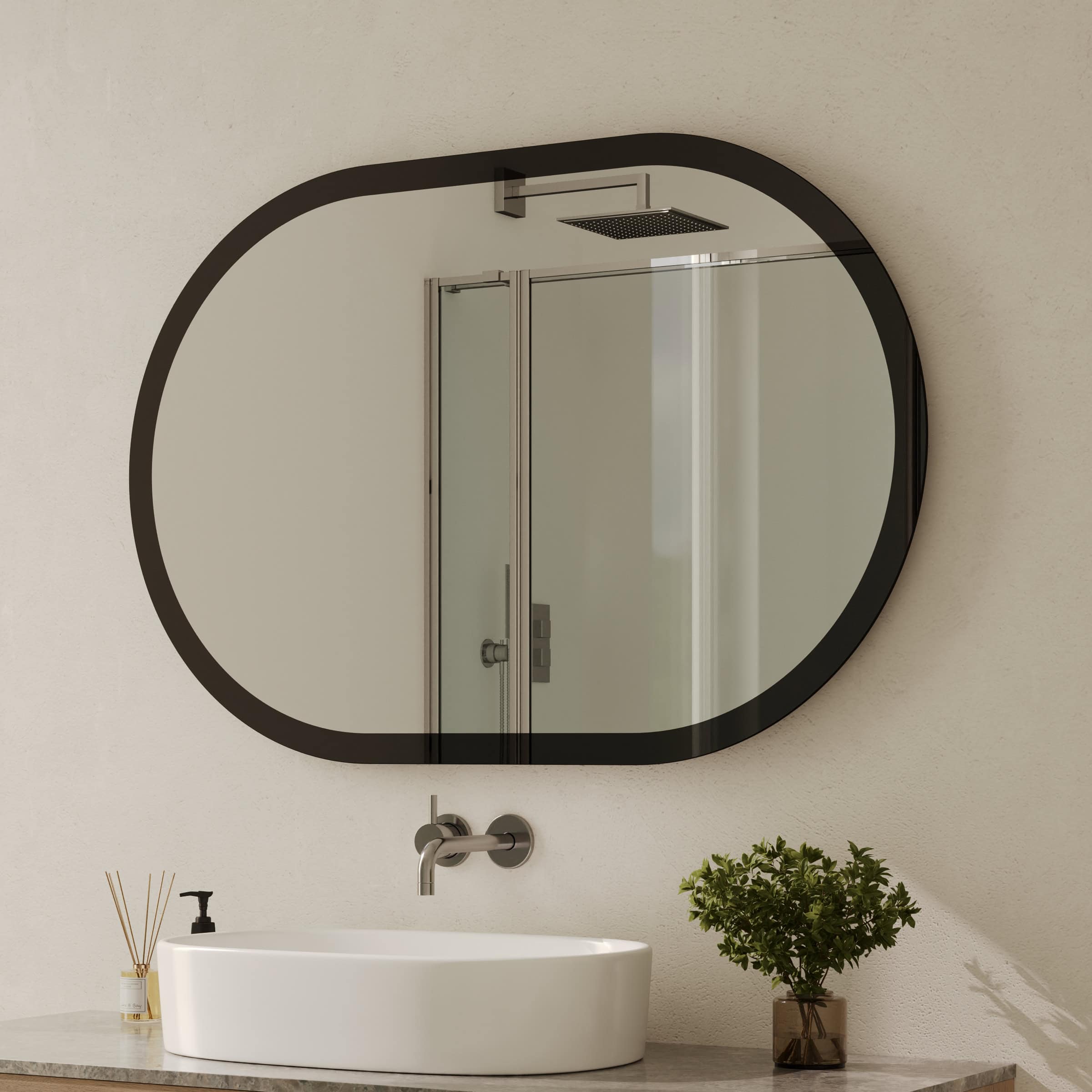 Die sanft abgerundete Silhouette des Badspiegels Cristal bricht bewusst mit geraden Linien und schafft eine Atmosphäre von fließender Harmonie. Eingefasst von einem 40 mm breiten Rahmen aus tiefschwarzem Glas, entsteht ein faszinierender Kontrast, der den Spiegel zum zentralen Gestaltungselement Ihres Raumes macht. Gefertigt aus 5 mm starkem Kristallspiegel, überzeugt er durch eine außergewöhnlich klare und brillante Reflexion. Als individuelle Maßanfertigung passt sich dieser hochwertige Badspiegel exakt Ihren Wünschen und den räumlichen Gegebenheiten an – ob als dezenter Akzent im Gästebad oder als großzügiges Statement im Master-Badezimmer. Die präzise geschliffenen und veredelten Glaskanten unterstreichen den Manufakturcharakter und garantieren Sicherheit sowie eine makellose Optik, die Bestand hat.