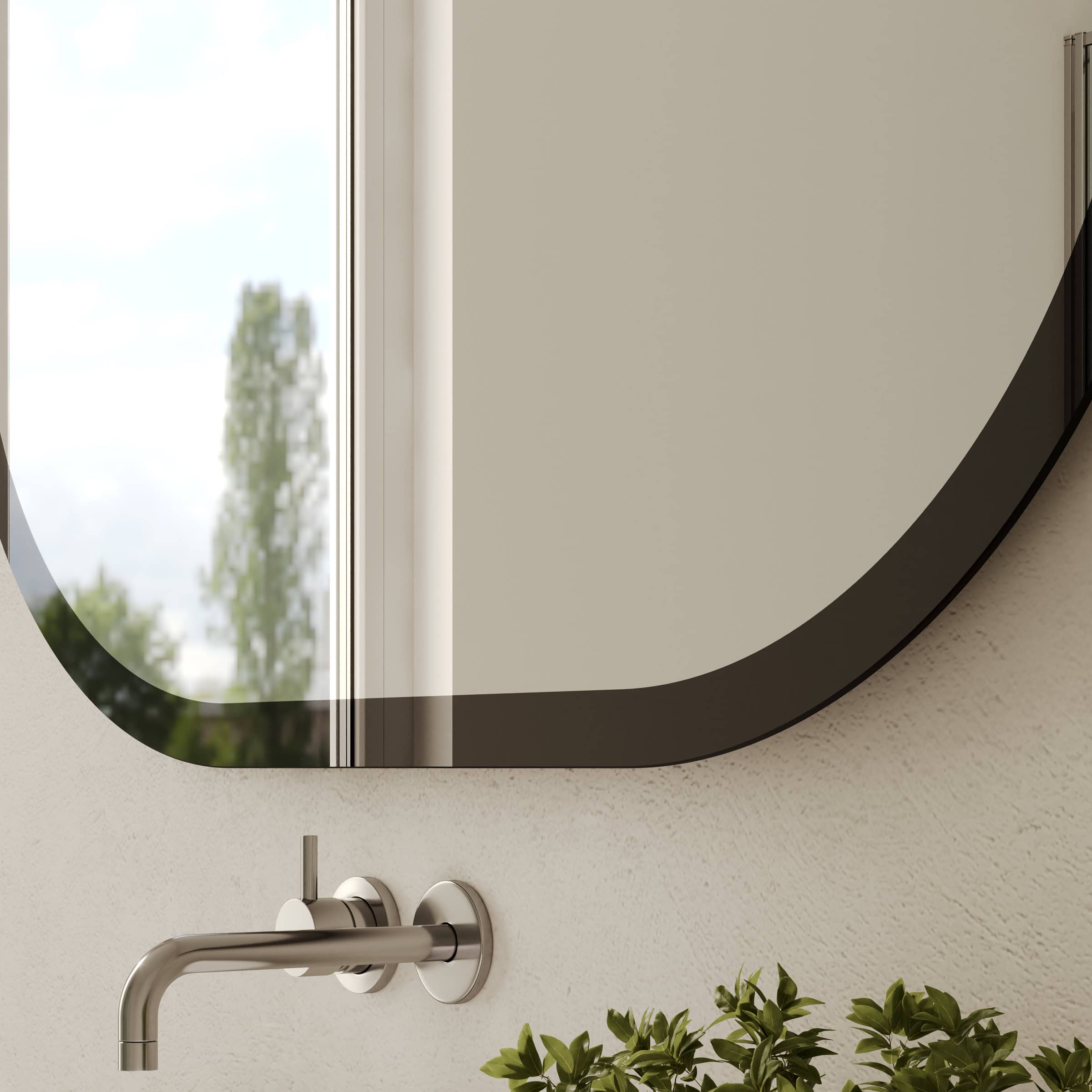 Verleihen Sie Ihrem Badezimmer mit diesem geschwungenen Designspiegel eine unverwechselbare, persönliche Note.