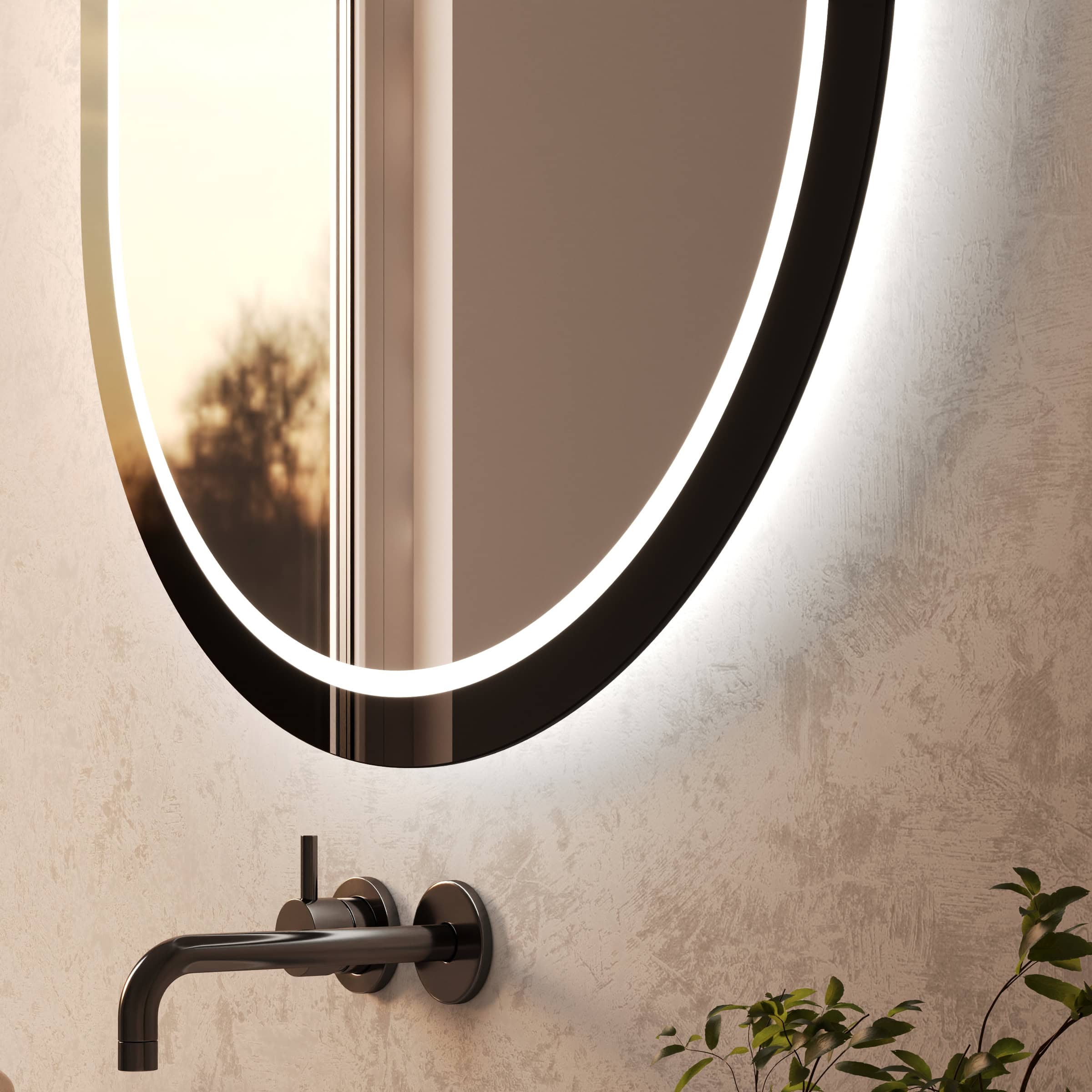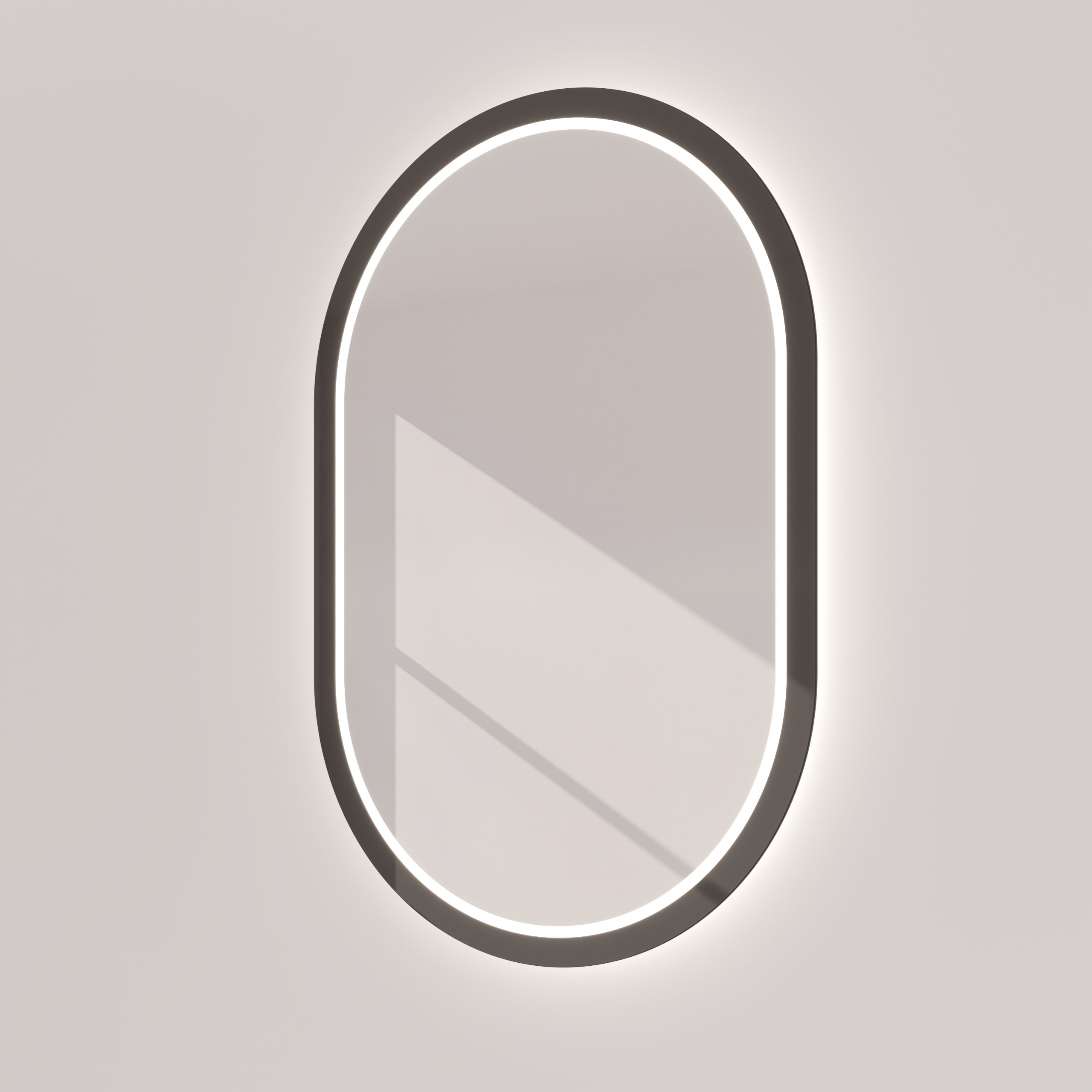 Der geschwungene Badspiegel Siena ist mehr als ein Spiegel – er ist ein zentrales Gestaltungselement für anspruchsvolle Bäder. Seine sanft abgerundete Form bricht mit strengen Linien und schafft eine weiche, einladende Atmosphäre. Der markante, 40 mm breite Rahmen aus tiefschwarzem Glas verleiht dem Design eine exquisite Tiefe und einen modernen Charakter. Gefertigt als individuelle Maßanfertigung aus brillantem, 5 mm starkem Kristallspiegel, fügt sich Siena nahtlos in Ihr Raumkonzept ein. Die rundherum laufende LED-Beleuchtung ist perfekt für die kosmetische Anwendung optimiert und leuchtet Ihr Gesicht schattenfrei und authentisch aus. Das Licht tritt dabei sanft durch satinierte Leuchtfelder, die im ausgeschalteten Zustand wie edles Milchglas wirken und im eingeschalteten Zustand eine blendfreie, indirekte Aura erzeugen. Mit seinen sorgfältig geschliffenen und veredelten Kanten verkörpert dieser Spiegel mit Beleuchtung höchste Handwerkskunst.