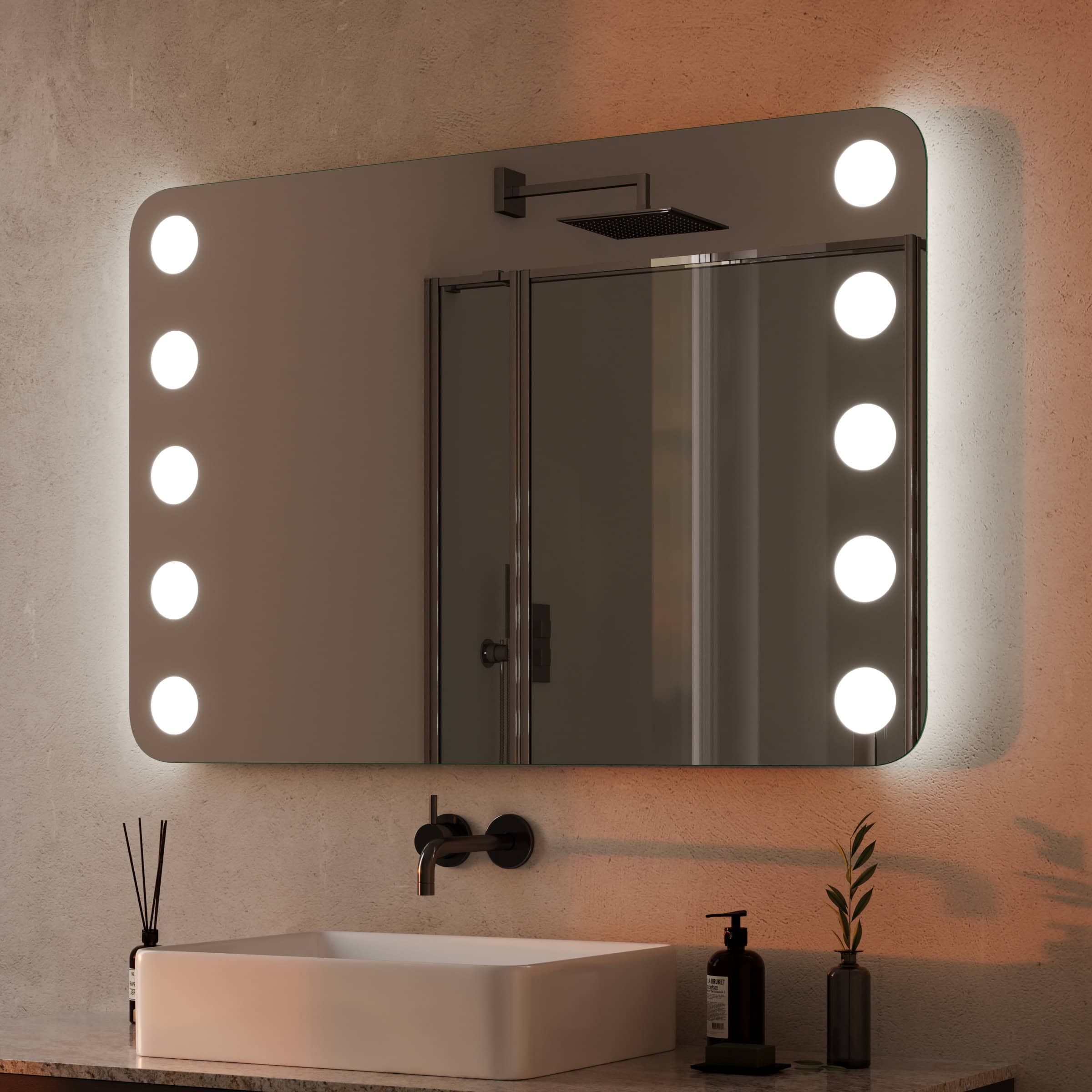 Perfekte Symmetrie: Ihr Badspiegel mit abgerundeten Ecken und professioneller Hollywood-Beleuchtung
