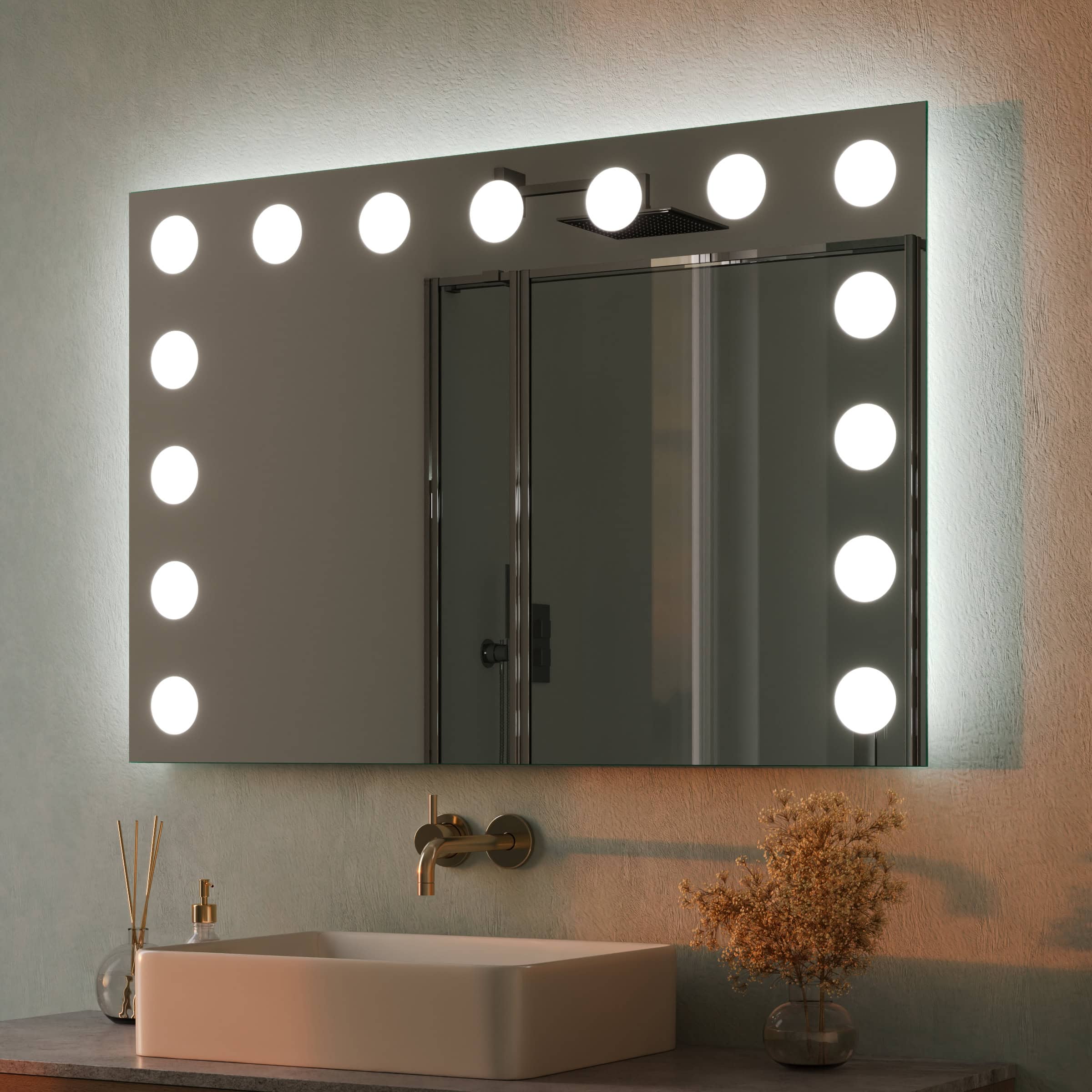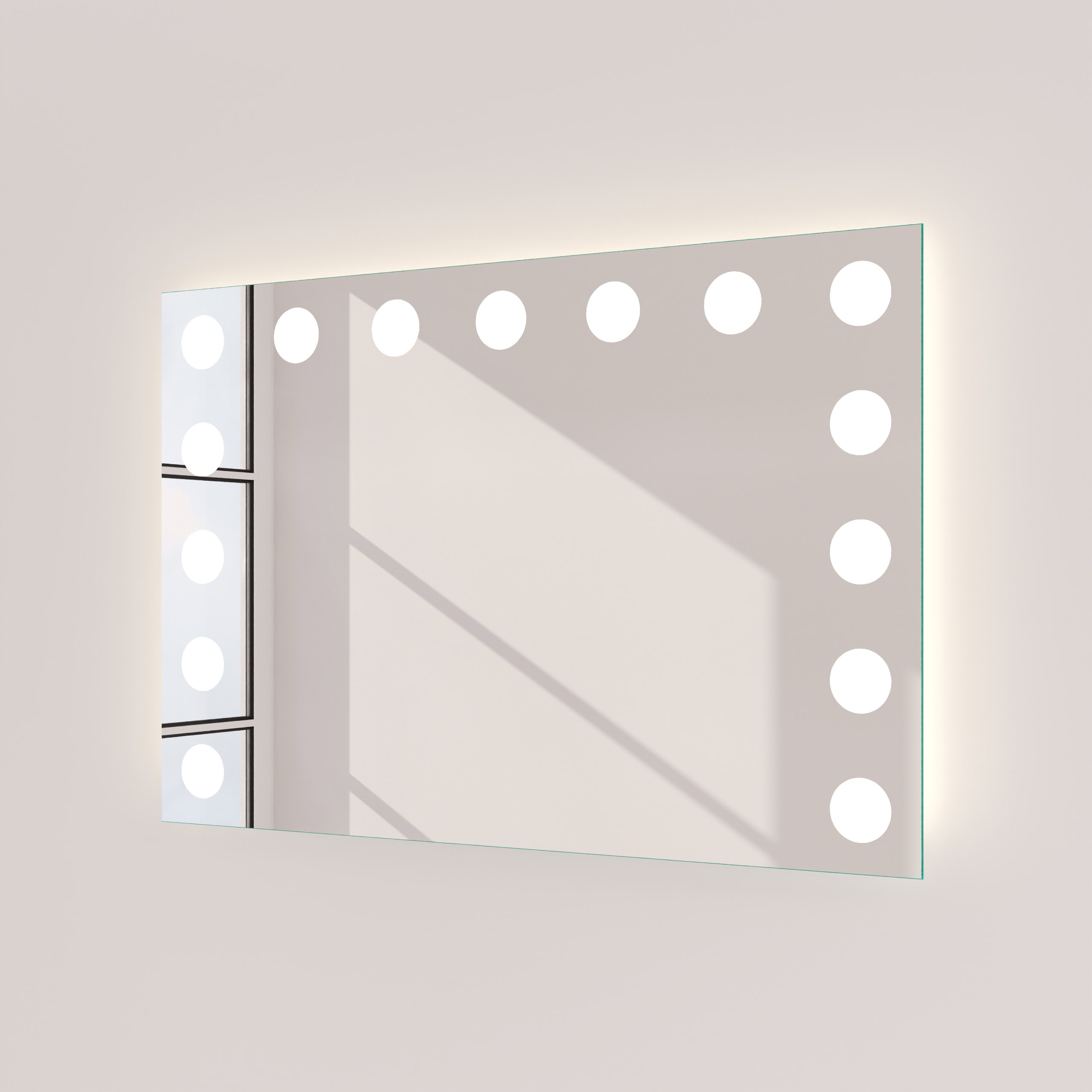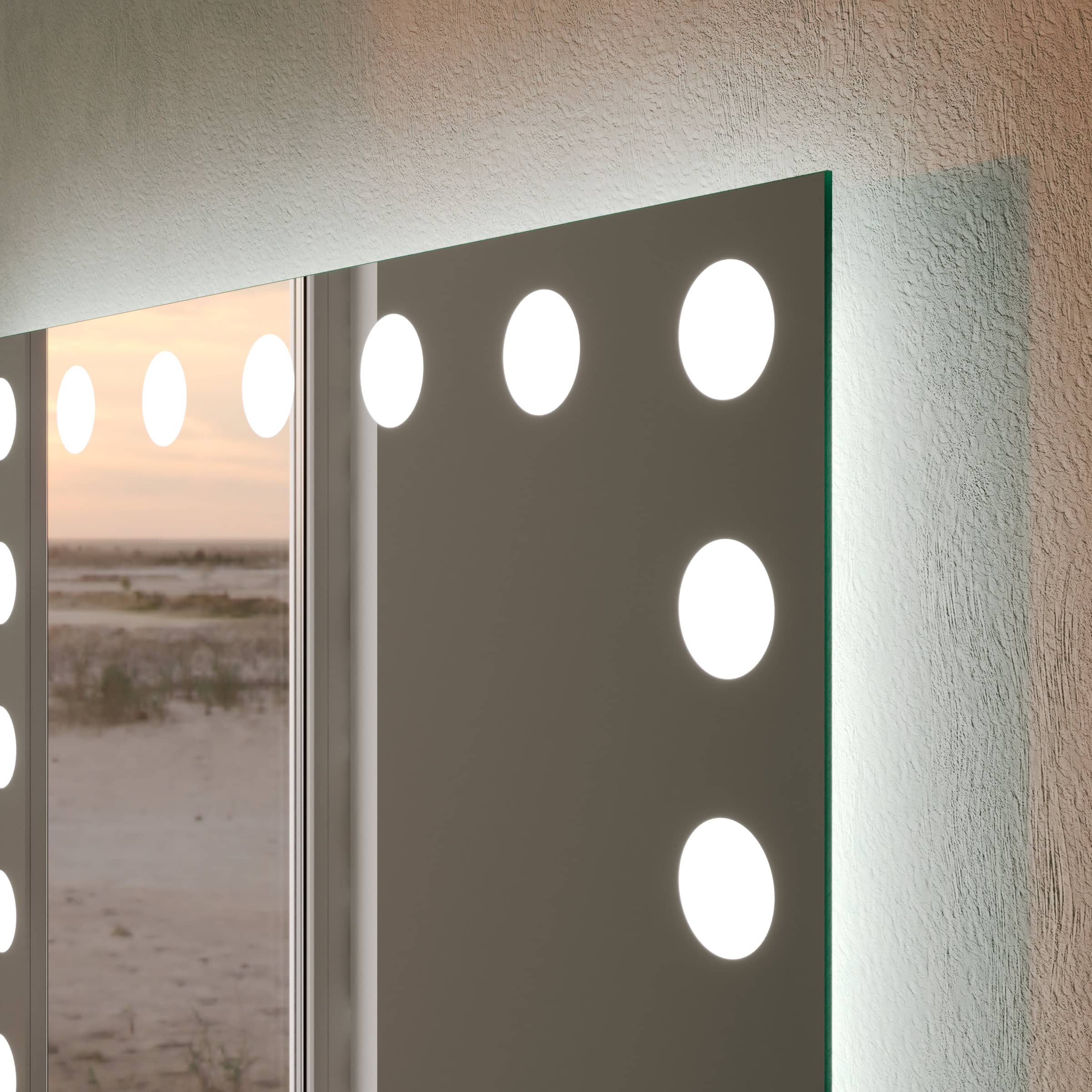 Inspiriert von der professionellen Beleuchtung großer Garderoben, rahmt dieser Badspiegel mit Beleuchtung Ihr Spiegelbild mit drei präzise positionierten Leuchtfeldern ein. Die Anordnung links, oben und rechts sorgt für eine schattenfreie und homogene Ausleuchtung Ihres Gesichts – die ideale Voraussetzung für eine makellose Kosmetik oder eine präzise Rasur. Die fortschrittliche LED Lichttechnik erzeugt dabei durch indirekte Erhellung ein weiches, blendfreies Licht, das die Hauttöne authentisch wiedergibt. Gefertigt aus brillantem, 5mm starkem Kristallspiegel, dessen Kanten sorgfältig geschliffen und veredelt werden, wird dieser Spiegel nach Maß zu einem zentralen Designelement in Ihrem Badezimmer. Er passt sich millimetergenau Ihren räumlichen Gegebenheiten an und verkörpert eine Symbiose aus funktionaler Perfektion und zeitloser Ästhetik.