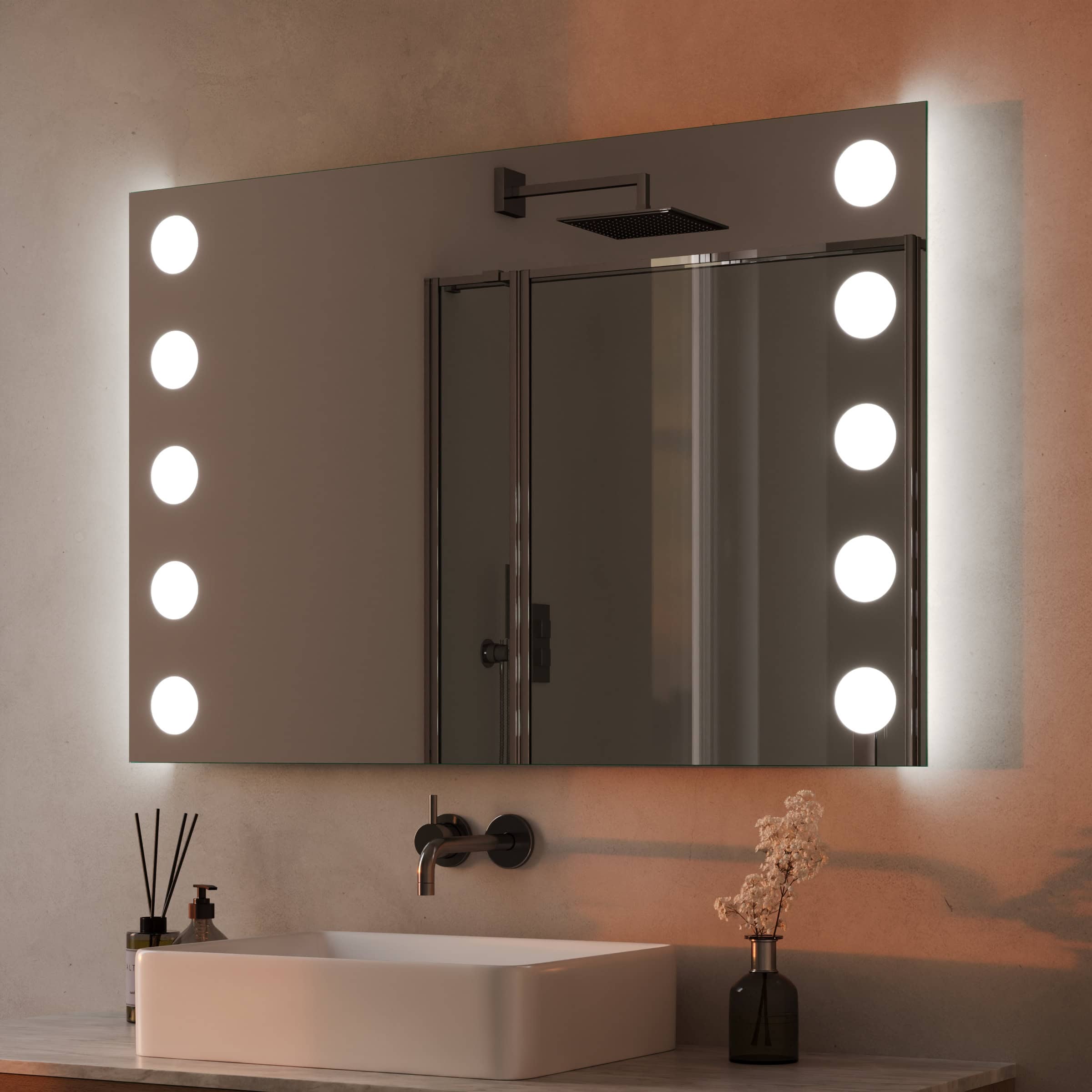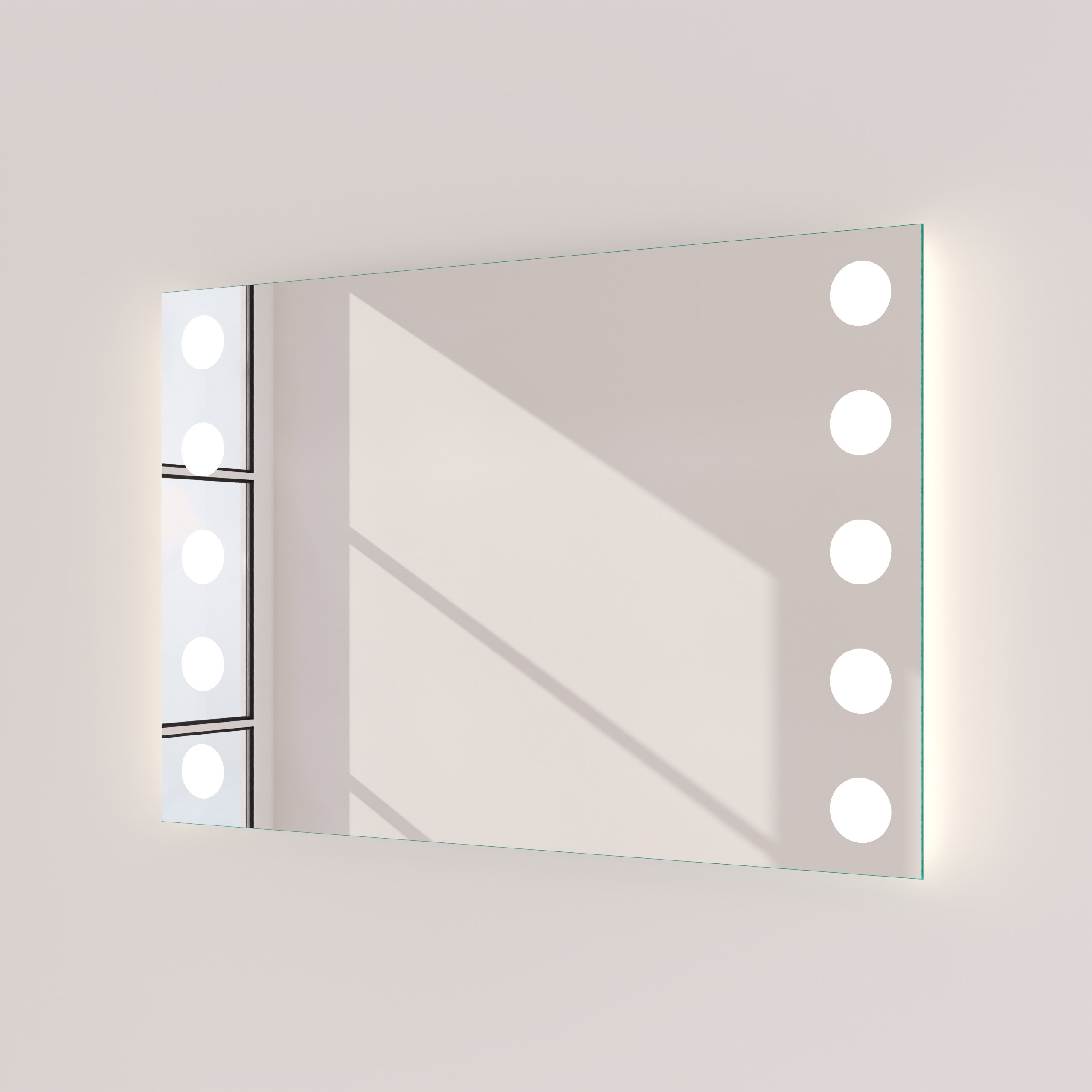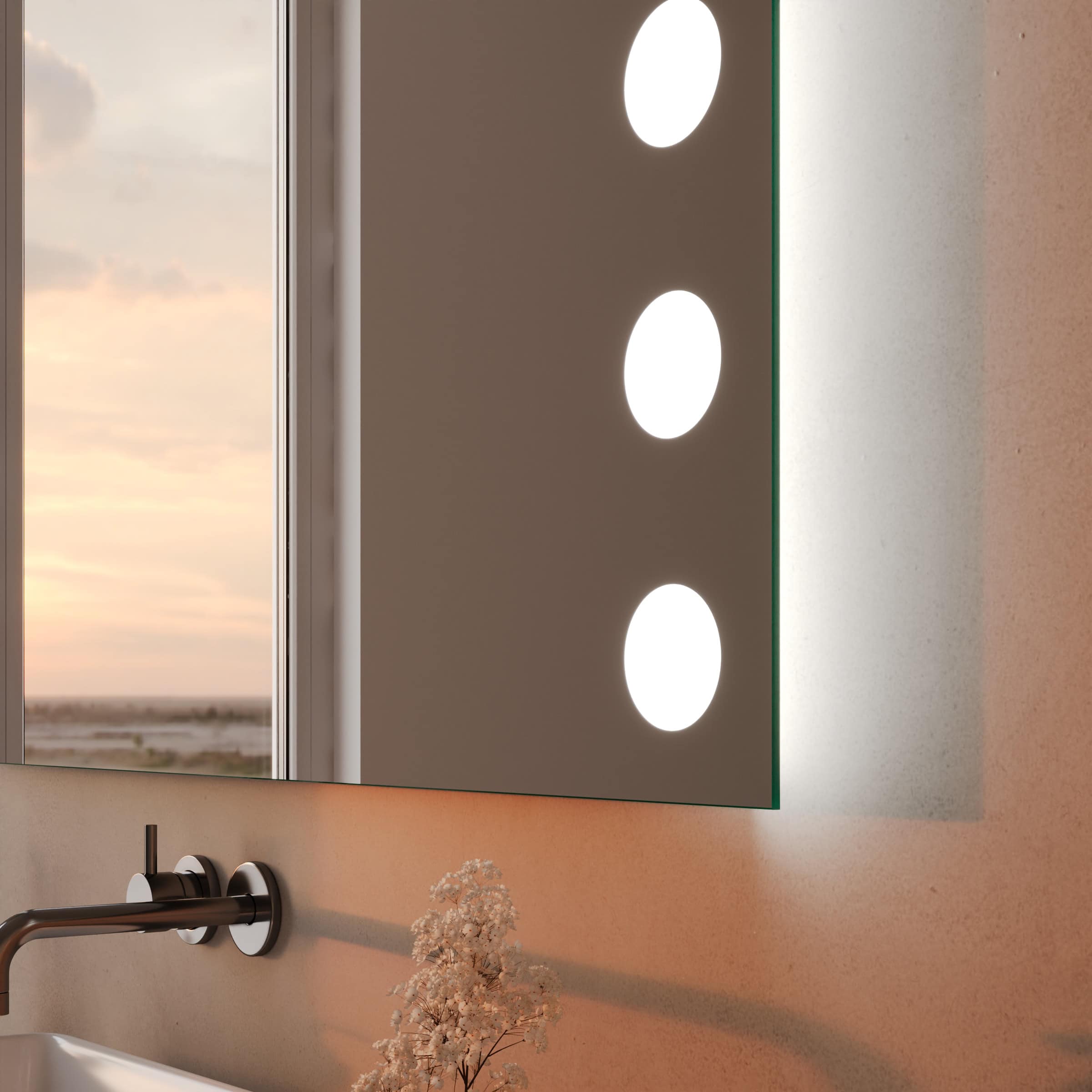 Dieser Badspiegel mit Beleuchtung verwandelt Ihr Badezimmer in ein exklusives Refugium. Die seitlich positionierten LED-Lichtfelder wurden speziell für kosmetische Anwendungen optimiert: Sie erzeugen ein gleichmäßiges, schattenfreies Licht, das Ihr Gesicht frontal und weich ausleuchtet – ideal für das tägliche Make-up oder die präzise Rasur. Die Leuchtfelder werden indirekt erhellt, was für eine blendfreie und angenehme Atmosphäre sorgt. Gefertigt als individuelle Maßanfertigung aus brillantem, 5 mm starkem Kristallspiegel, fügt sich dieses Designobjekt nahtlos in Ihre Raumarchitektur ein. Die sorgfältig geschliffenen und veredelten Glaskanten unterstreichen den hohen Qualitätsanspruch und garantieren eine puristische Ästhetik. Mit seiner minimalen Tiefe von nur 35 mm wirkt der Spiegel elegant und beinahe schwebend an der Wand.