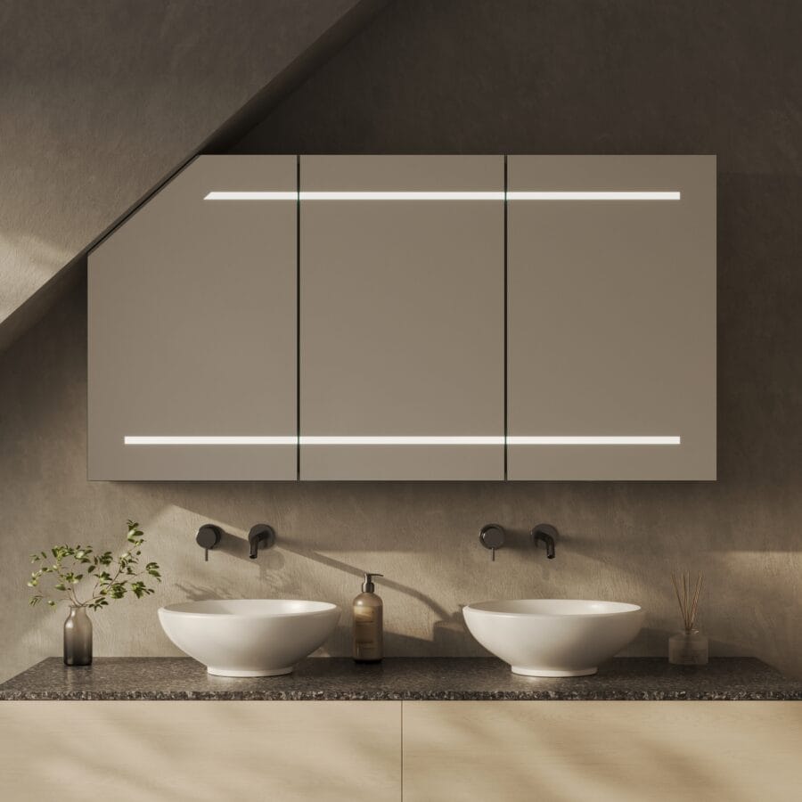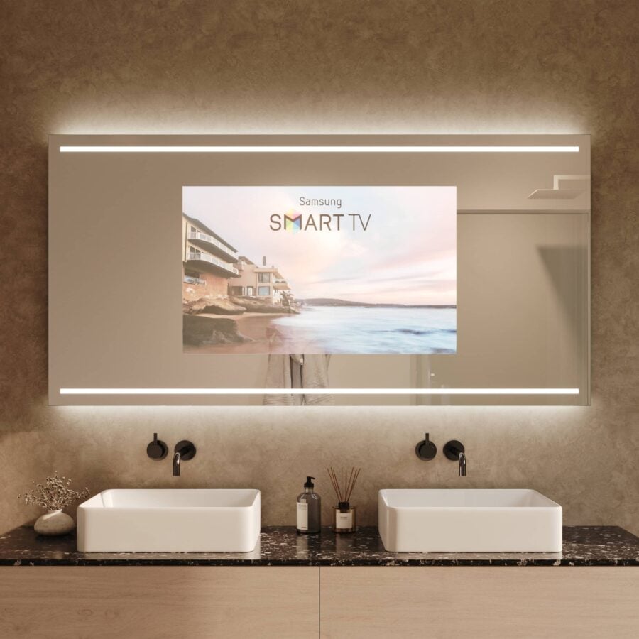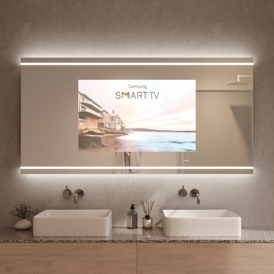 Der Badspiegel Lumina definiert Ihr Badezimmer neu, indem er Funktion und Ästhetik auf höchstem Niveau vereint. Die direkte LED-Beleuchtung an der oberen und unteren Kante wurde gezielt für kosmetische Anwendungen optimiert. Sie erzeugt ein schattenfreies, klares Licht, das Ihr Gesicht gleichmäßig ausleuchtet – ideal für ein makelloses Make-up oder eine präzise Rasur. Gefertigt aus brillantem, 5mm starkem Kristallspiegelglas, garantiert er eine unverfälschte und naturgetreue Reflexion. Die sorgfältig geschliffenen und veredelten Glaskanten unterstreichen die hochwertige Verarbeitung und sorgen für eine elegante Optik. Dank der individuellen Maßanfertigung fügt sich dieser rechteckige LED Badspiegel nahtlos in jede Raumarchitektur ein, während seine geringe Tiefe von nur 35mm ein filigranes, schwebendes Erscheinungsbild erzeugt. Er ist mehr als nur ein Spiegel; er ist ein zentrales Designelement, das Ihr Bad in eine persönliche Wohlfühloase verwandelt.