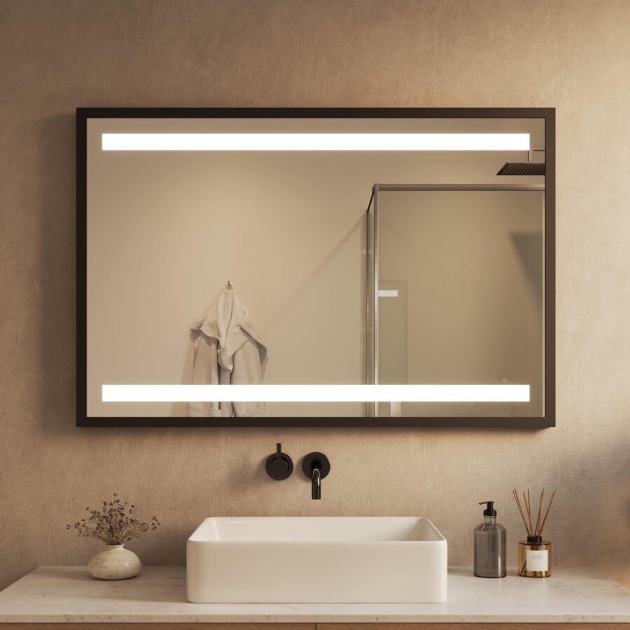 Der Badspiegel Livela definiert Ihr Raumgefühl durch seine klare, rechteckige Form und den dezenten Metallrahmen. Mit einer feinen Breite von nur 10 mm fasst das tiefschwarze, matte Finish den hochwertigen Kristallspiegel elegant ein und setzt einen kraftvollen, architektonischen Akzent. Die 5 mm starke Glasfläche garantiert dabei nicht nur eine außergewöhnliche Langlebigkeit, sondern auch eine brillante, unverfälschte Reflexion, veredelt durch präzise geschliffene Kanten. Das Herzstück des Livela ist seine individuelle Maßanfertigung. Er wird exakt nach Ihren Vorgaben in Breite und Höhe gefertigt und fügt sich so nahtlos in Ihr persönliches Badkonzept ein – sei es als subtiler Akzent über einem schmalen Waschtisch oder als großzügige Spiegelfläche, die den Raum optisch erweitert. Livela ist mehr als ein Spiegel; er ist ein Bekenntnis zu Design, Qualität und einem Bad, das Ihre Handschrift trägt.