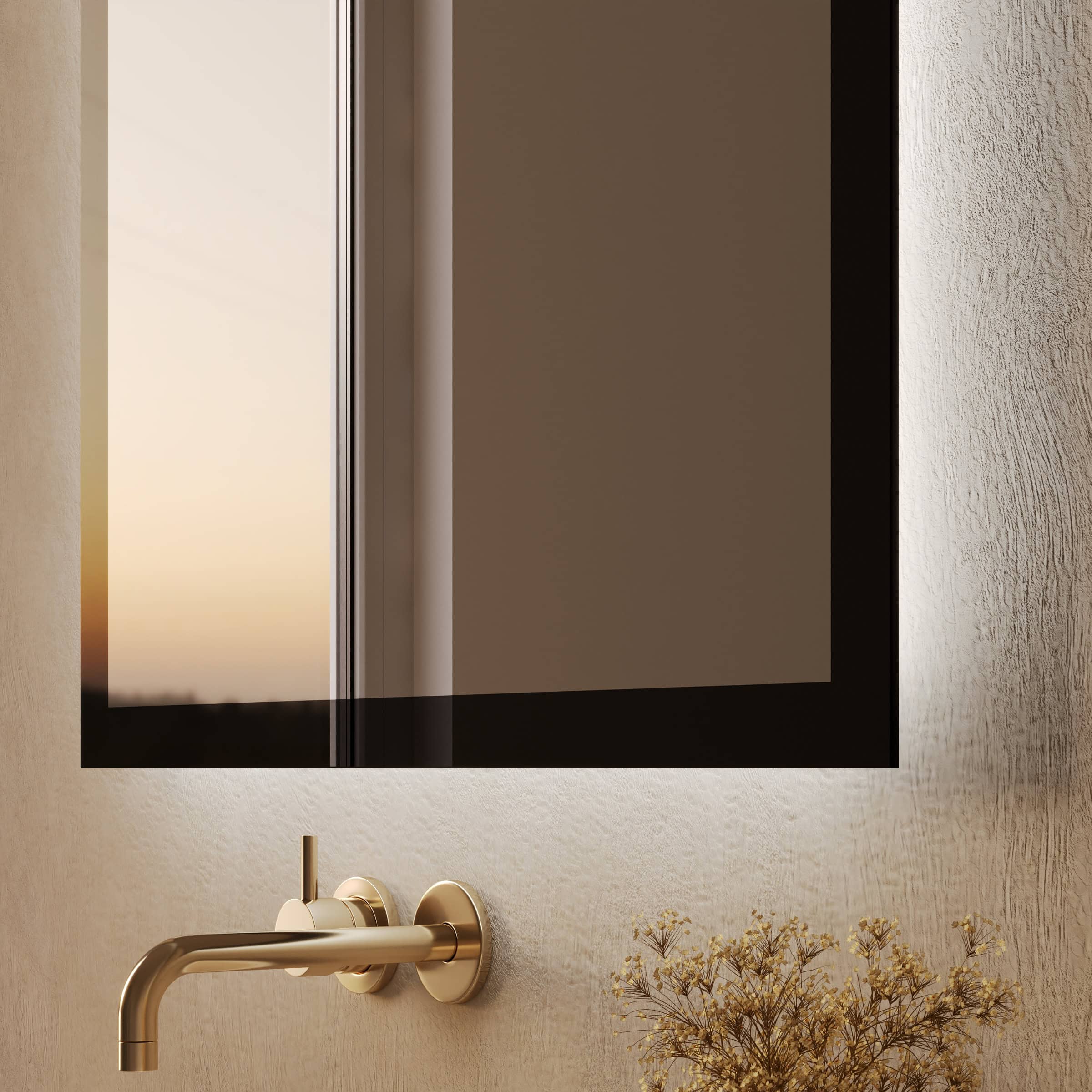 Der Badspiegel Aurea bricht bewusst mit konventionellen Linien und setzt mit seiner eleganten Rundbogenform ein architektonisches Statement in Ihrem Raum. Das Herzstück des Designs ist der markante, 40 mm breite Rahmen aus schwarz veredeltem Glas, der eine faszinierende Tiefe erzeugt und nahtlos mit der Spiegelfläche verschmilzt. Die umlaufende LED-Hintergrundbeleuchtung lässt diesen Spiegel nach Maß sanft vor der Wand schweben und hüllt Ihr Bad in ein weiches, atmosphärisches Licht. Gleichzeitig ist die Lichtstärke präzise für die tägliche Kosmetik optimiert und garantiert eine schattenfreie, naturgetreue Ausleuchtung. Gefertigt aus 5 mm starkem Kristallspiegel mit präzise geschliffenen Kanten, wird dieser Badspiegel mit Rundbogen zum zentralen Element Ihrer persönlichen Wellness-Oase.
