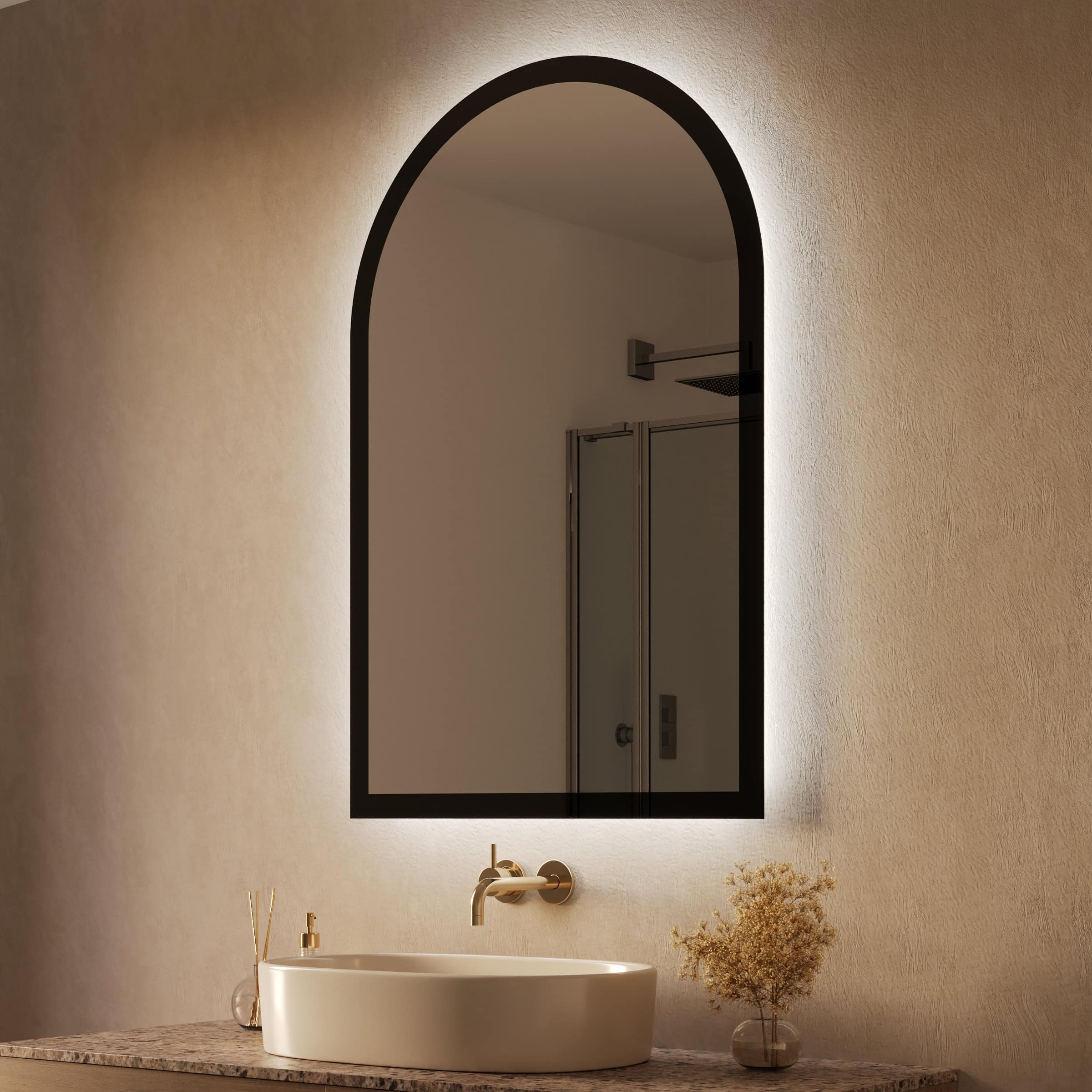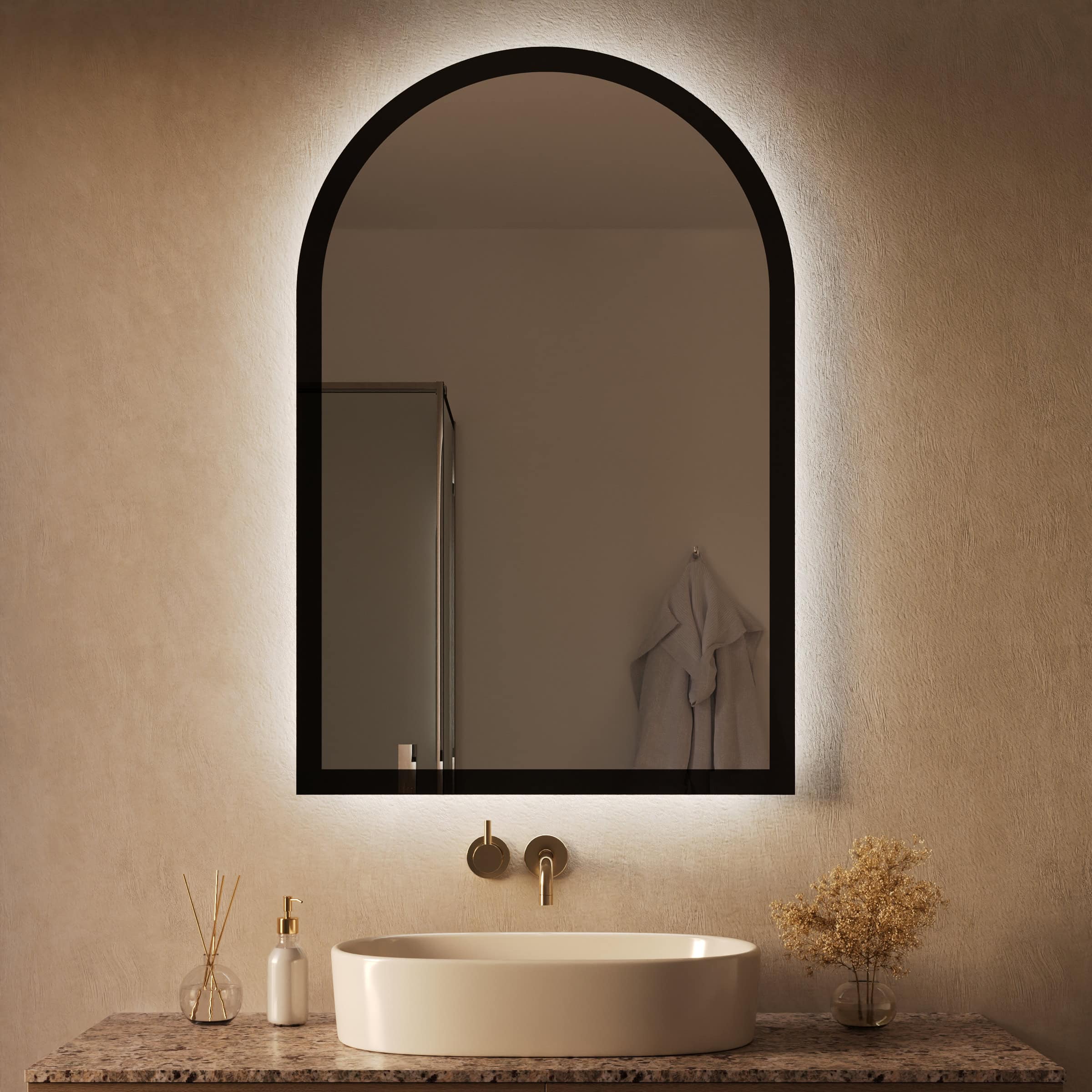 Dieser nach Maß gefertigte Rundbogenspiegel ist eine bewusste Entscheidung für beständige Qualität, durchdachtes Design und eine unverwechselbare Atmosphäre. Vollenden Sie Ihr Badezimmerambiente mit dem Aurea Spiegel.
