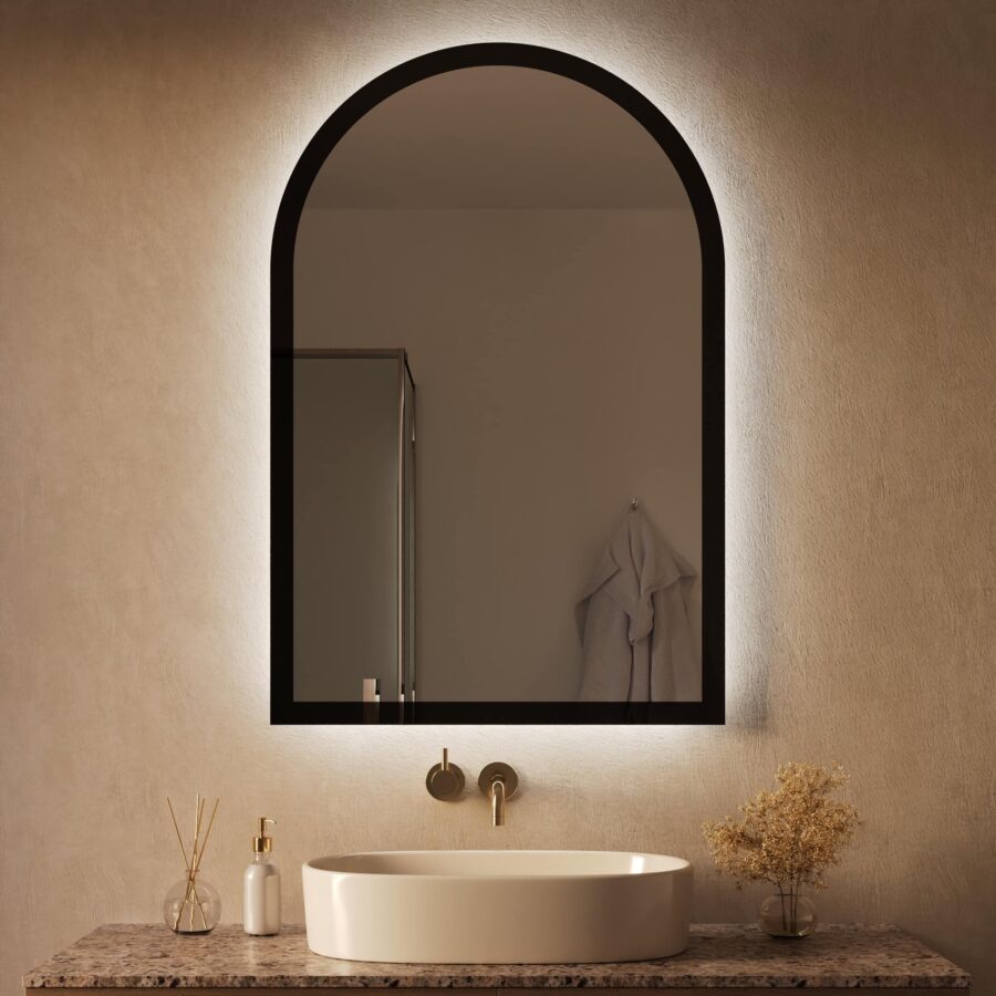 Verwandeln Sie Ihr Bad in eine Oase der Ruhe mit einem Spiegel, der Form und Funktion vollendet.