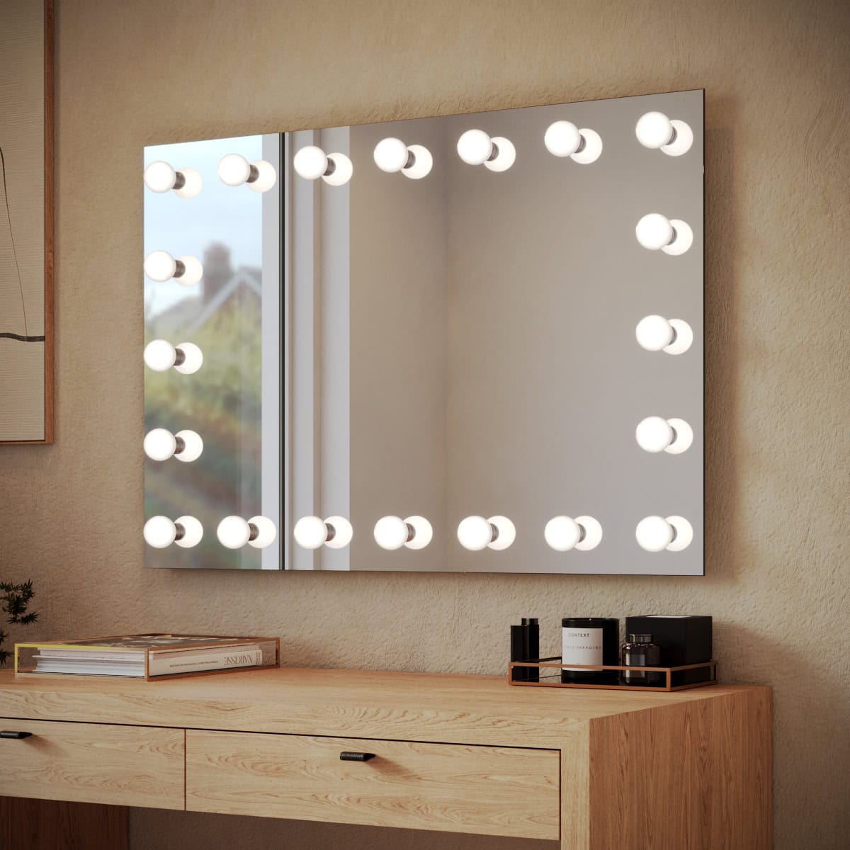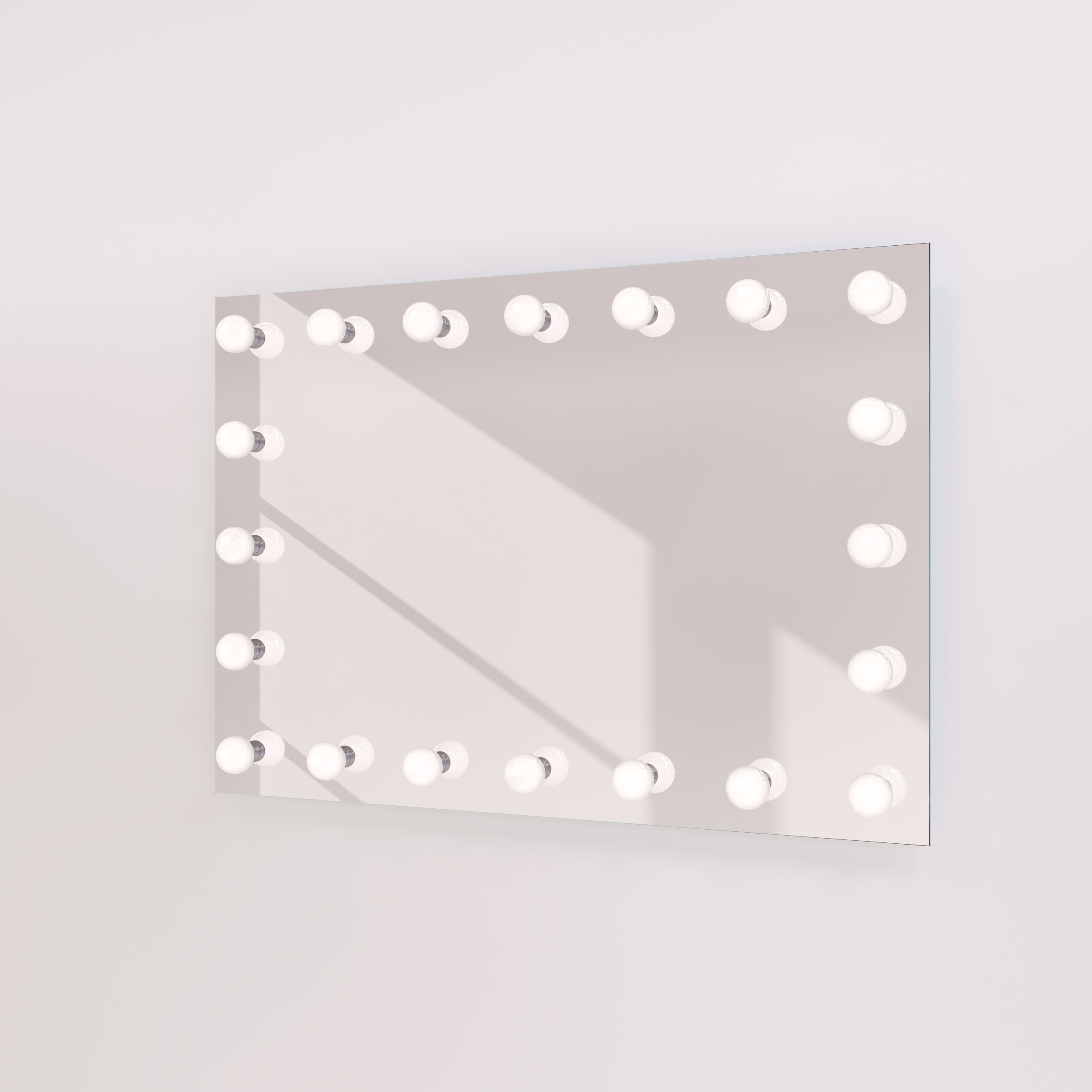 Der rechteckige Hollywood Spiegel Glamira ist mehr als nur ein Badspiegel – er ist ein Statement für Design und Funktionalität. Die rundherum positionierte, offene Beleuchtung mit stilvollen LED-Glühbirnen schafft eine schattenfreie und für kosmetische Anwendungen optimierte Ausleuchtung. Jeder Pinselstrich, jede Kontur wird perfekt sichtbar. Gefertigt aus 5mm starkem Kristallspiegel, garantiert er eine unverfälschte und brillante Reflexion, während die sorgfältig geschliffenen und veredelten Kanten von höchster Verarbeitungsqualität zeugen. Dank der individuellen Maßanfertigung fügt sich dieser LED Spiegel nahtlos in Ihr anspruchsvolles Raumkonzept ein und wird zum maßgeschneiderten Herzstück Ihres Badezimmers.