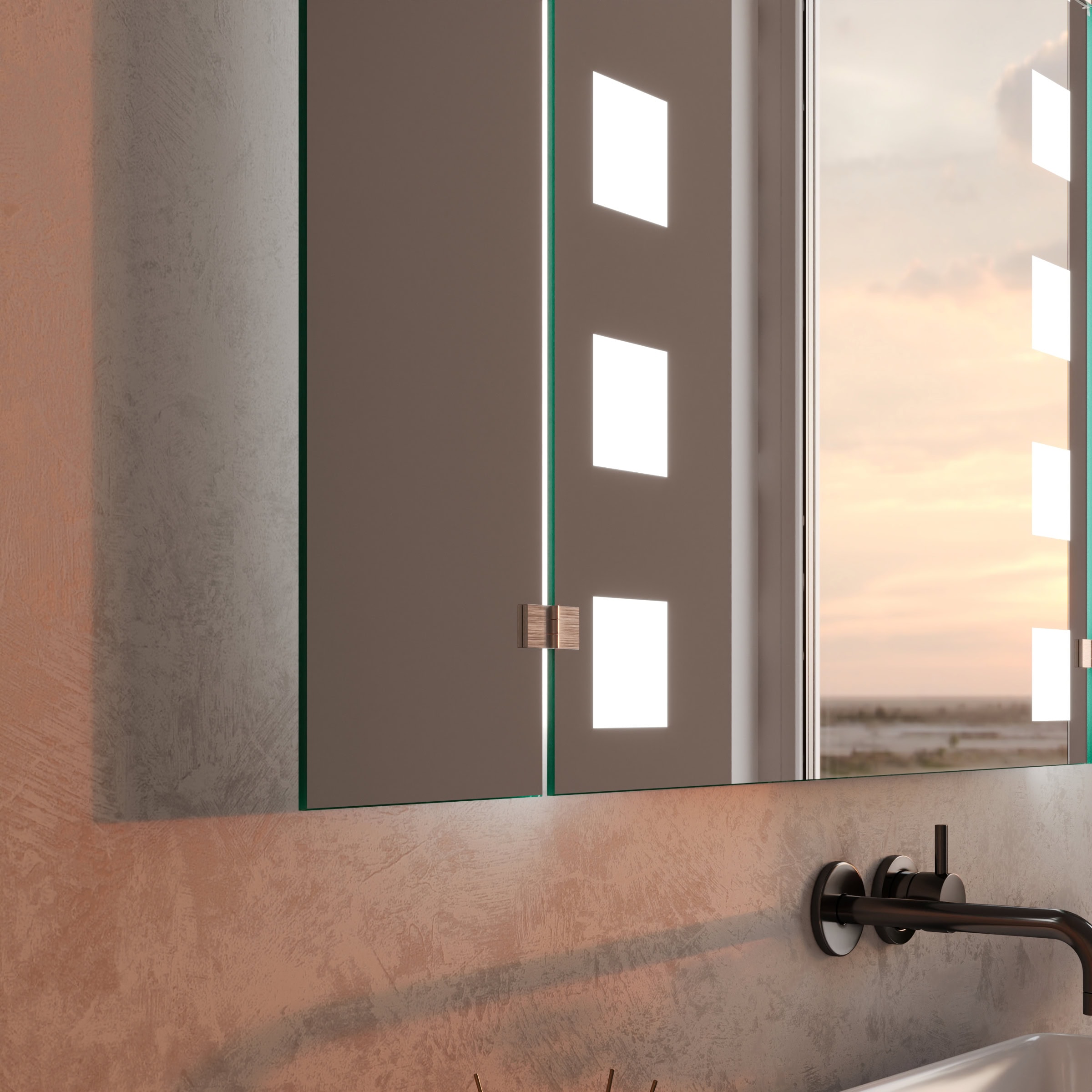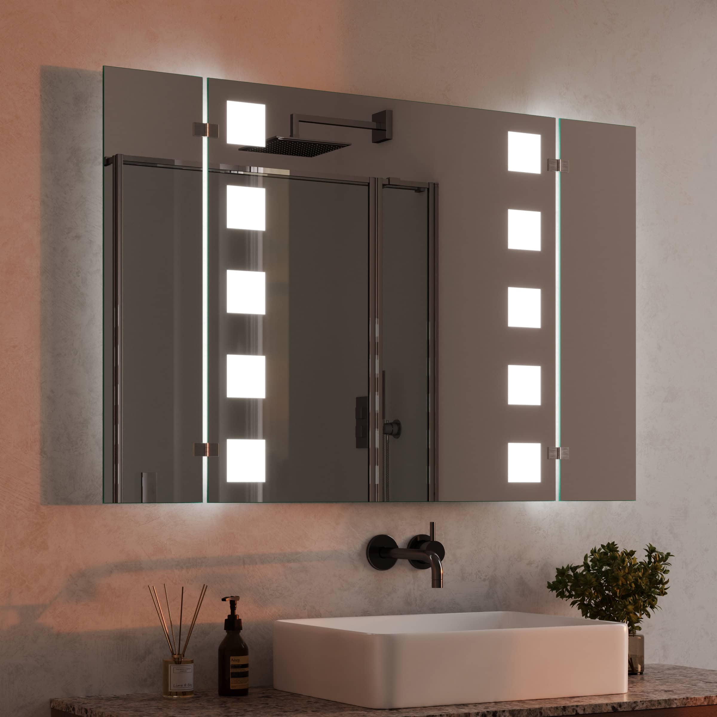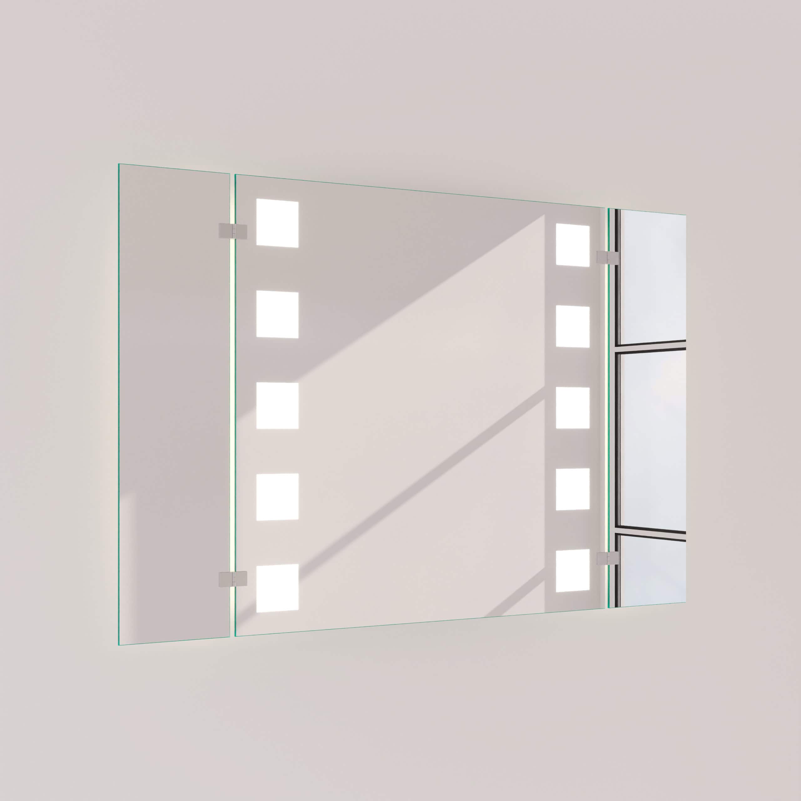 Der dreiteilige Klappspiegel Hollywood Dice ist mehr als nur ein Spiegel – er ist ein Statement für anspruchsvolles Design und funktionale Perfektion. Als individuelle Maßanfertigung fügt er sich nahtlos in die Architektur Ihres Badezimmers ein. Die seitlichen Spiegelflügel ermöglichen Ihnen eine umfassende Rundum-Ansicht für ein makelloses Styling. Herzstück dieses Designs ist die professionelle LED-Beleuchtung, die links und rechts am Hauptspiegel positioniert ist. Die Lichtstärke wurde gezielt für kosmetische Anwendungen optimiert und garantiert eine schattenfreie, naturgetreue Ausleuchtung Ihres Gesichts. Dank der indirekten Erhellung der Leuchtfelder entsteht ein weiches, blendfreies Licht, das eine luxuriöse und entspannte Atmosphäre schafft. Gefertigt aus einem 5mm starken Kristallspiegel mit sorgfältig geschliffenen und veredelten Kanten, verspricht dieser Spiegel eine brillante Reflexion und eine außergewöhnliche Langlebigkeit.