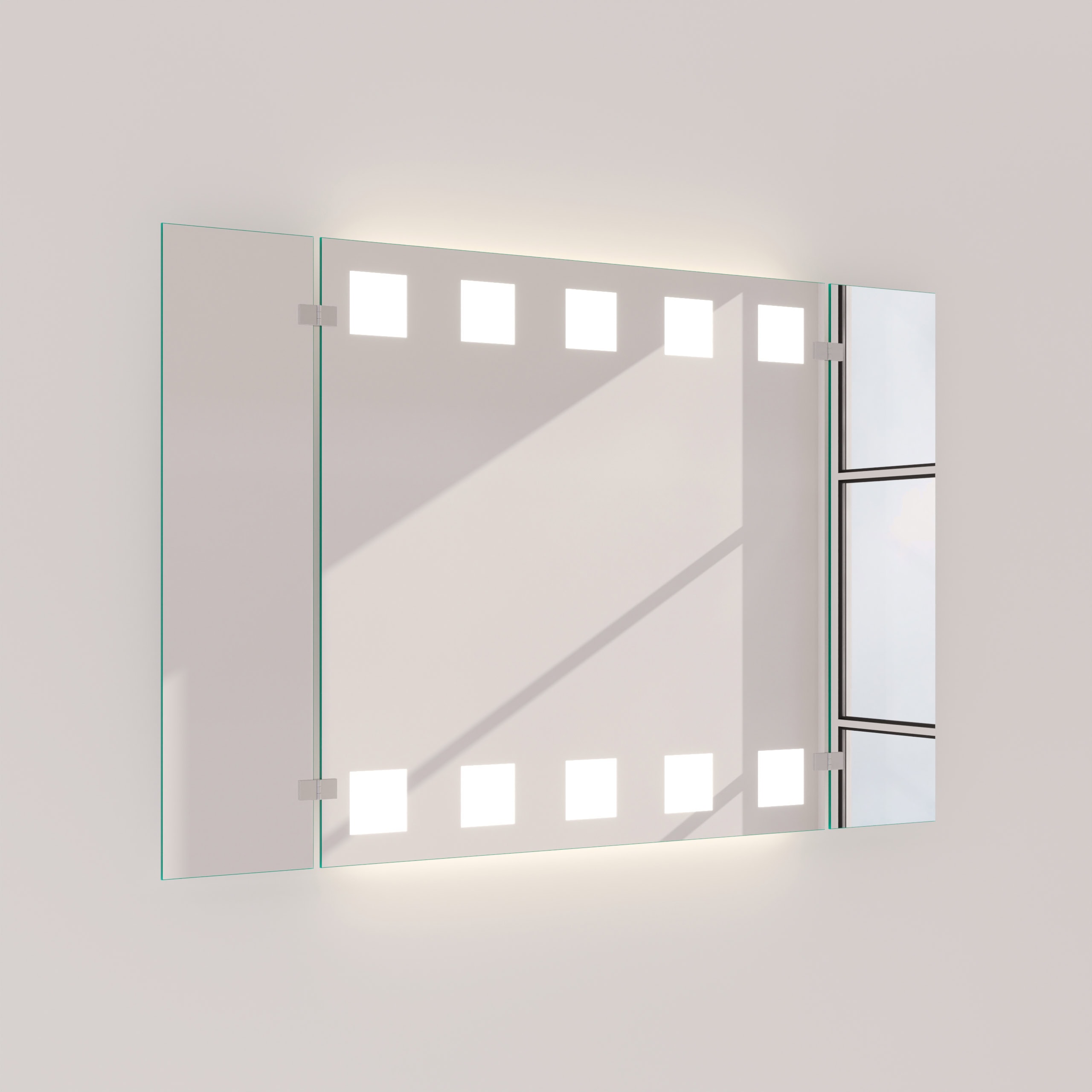 Der dreiteilige Klappspiegel Hollywood Dice ist mehr als nur ein Badezimmerspiegel – er ist ein Statement für Design und Funktionalität, das exakt nach Ihren Wünschen auf Maß gefertigt wird. Die innovative Form ermöglicht Ihnen eine komfortable Rundum-Sicht, ideal für präzises Styling und kosmetische Anwendungen. Gefertigt aus brillantem, 5 mm starkem Kristallspiegelglas mit veredelten und geschliffenen Kanten, zeugt jedes Detail von höchster Qualität. Die Beleuchtung ist das Herzstück dieses Designs: Oben und unten positionierte LED-Leuchtfelder werden indirekt erhellt und schaffen ein weiches, diffuses Licht. Diese speziell für kosmetische Bedürfnisse optimierte Ausleuchtung garantiert eine schattenfreie und farbechte Wiedergabe, sodass Ihr Make-up bei jedem Licht perfekt gelingt. Mit einer Tiefe von nur 35 mm fügt sich dieser Klappspiegel mit Beleuchtung elegant und nahtlos in jede anspruchsvolle Raumgestaltung ein.