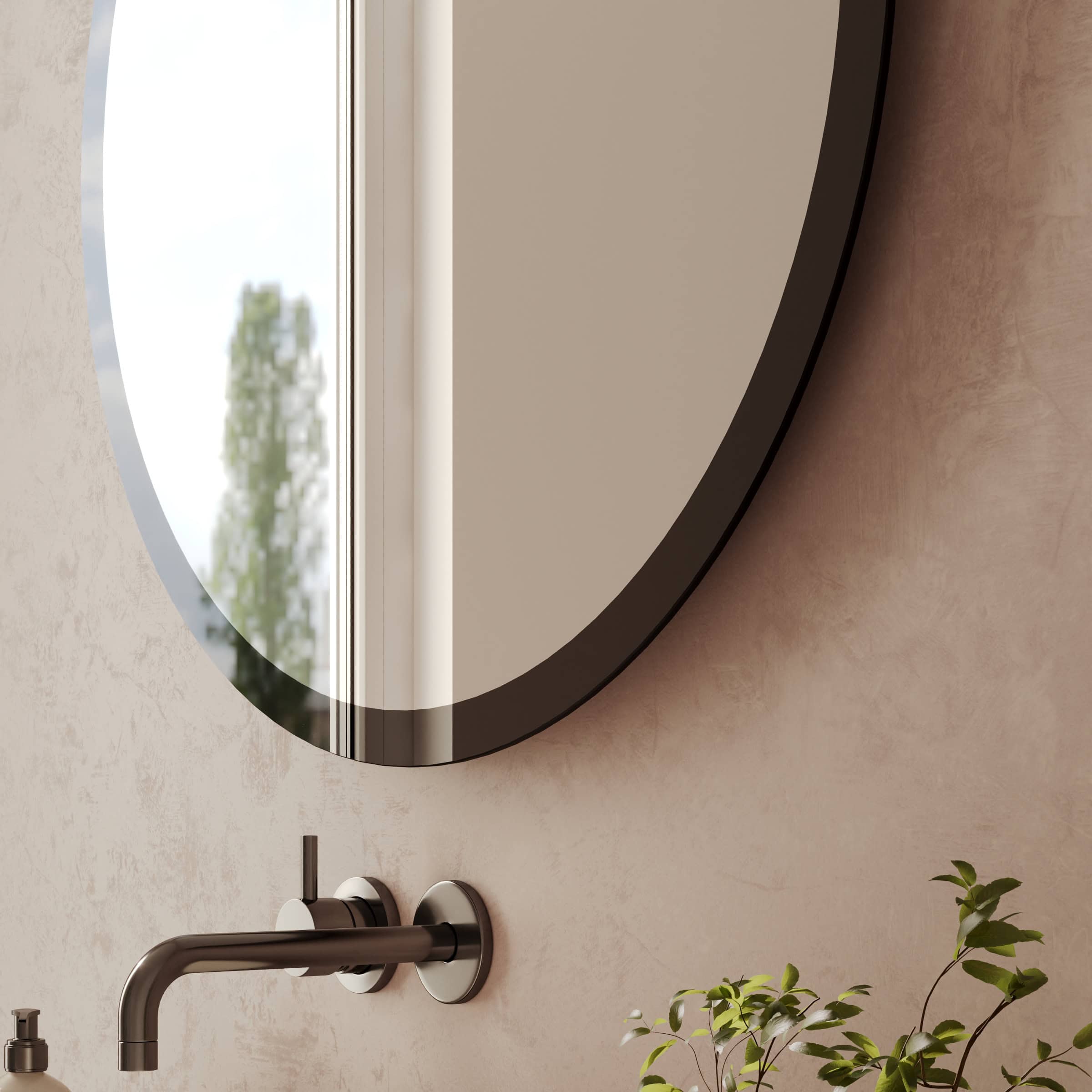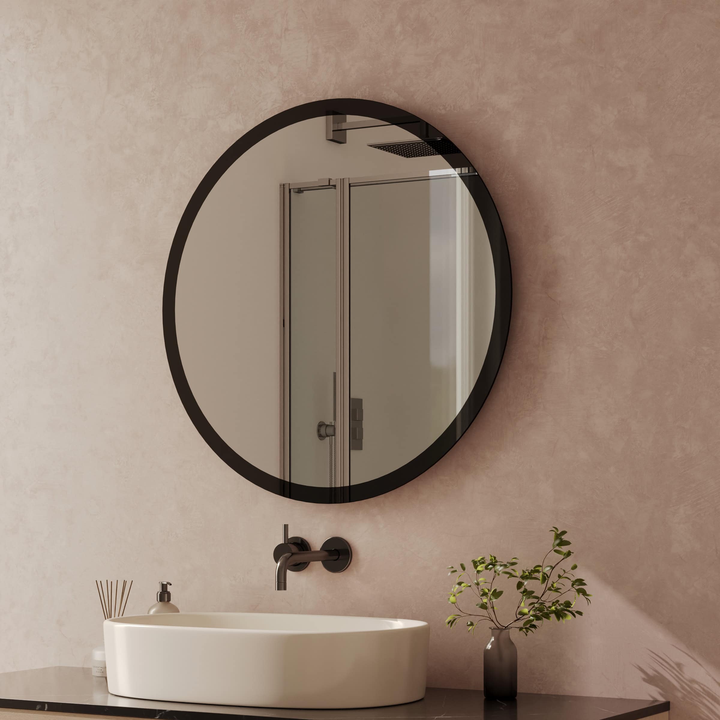 Der Badspiegel Cristal definiert Ihr Raumgefühl neu. Seine runde Form durchbricht sanft die geraden Linien des Badezimmers und schafft eine Atmosphäre von Harmonie und Ausgeglichenheit. Der markante, 40 mm breite Rahmen aus tiefschwarzem Glas setzt einen kraftvollen, aber dennoch subtilen Akzent, der mit jeder Badgestaltung korrespondiert. Gefertigt aus 6 mm starkem Kristallspiegelglas, garantiert Cristal eine außergewöhnlich brillante und verzerrungsfreie Reflexion, die Ihr Spiegelbild in reinster Klarheit wiedergibt. Die fein geschliffenen und polierten Kanten des Spiegels und des Rahmens zeugen von höchster Handwerkskunst und sorgen für eine nahtlose, edle Optik. Als individuelle Maßanfertigung fügt sich dieser runde Spiegel millimetergenau in Ihr persönliches Raumkonzept ein und wird so zum Ausdruck Ihres anspruchsvollen Stils. Er ist mehr als nur ein Spiegel – er ist ein zentrales Designelement, das Wertigkeit und Persönlichkeit ausstrahlt.