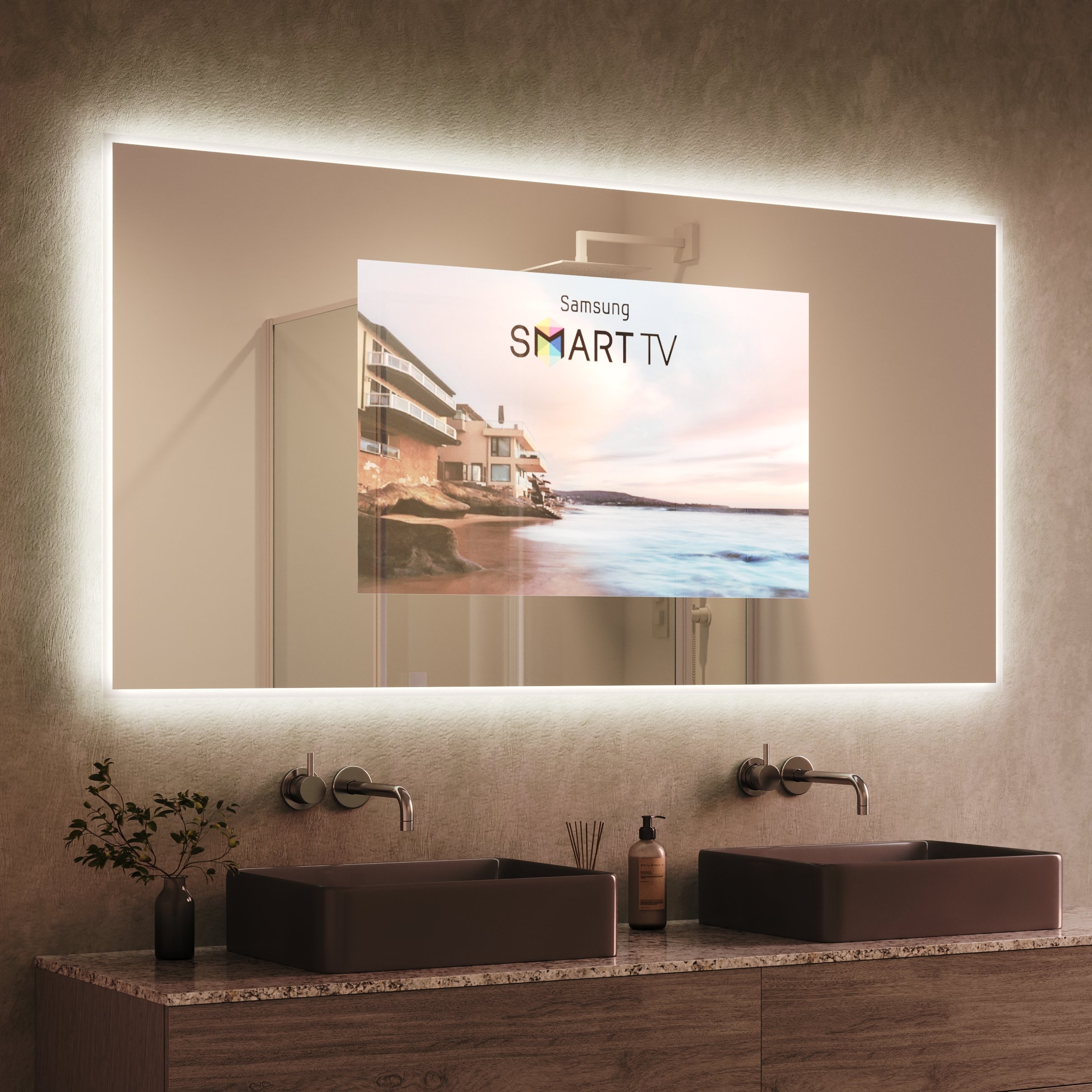 Der Siena TV Spiegel definiert das Zentrum Ihres Badezimmers neu. Als maßgefertigtes Unikat fügt er sich mit seiner runden Formgebung nahtlos in Ihr anspruchsvolles Raumkonzept ein. Hinter der makellosen Oberfläche aus 6 mm starkem Spionglas verbirgt sich ein vollwertiger Bildschirm, der nur dann in Erscheinung tritt, wenn Sie es wünschen. Im ausgeschalteten Zustand präsentiert sich eine reine, spiegelnde Fläche. Die umlaufende LED-Beleuchtung schafft ein schattenfreies, weiches Licht, dessen Stärke gezielt für kosmetische Anwendungen optimiert ist. Die satinierten Leuchtfelder erzeugen einen indirekten, schmeichelnden Schein, der Ihr Spiegelbild perfekt ausleuchtet und dem Raum eine warme Atmosphäre verleiht. Die edel geschliffenen und veredelten Glaskanten zeugen von höchster Verarbeitungsqualität und machen diesen runden TV Spiegel mit Beleuchtung zu einem langlebigen Kunstwerk für Ihr Zuhause.