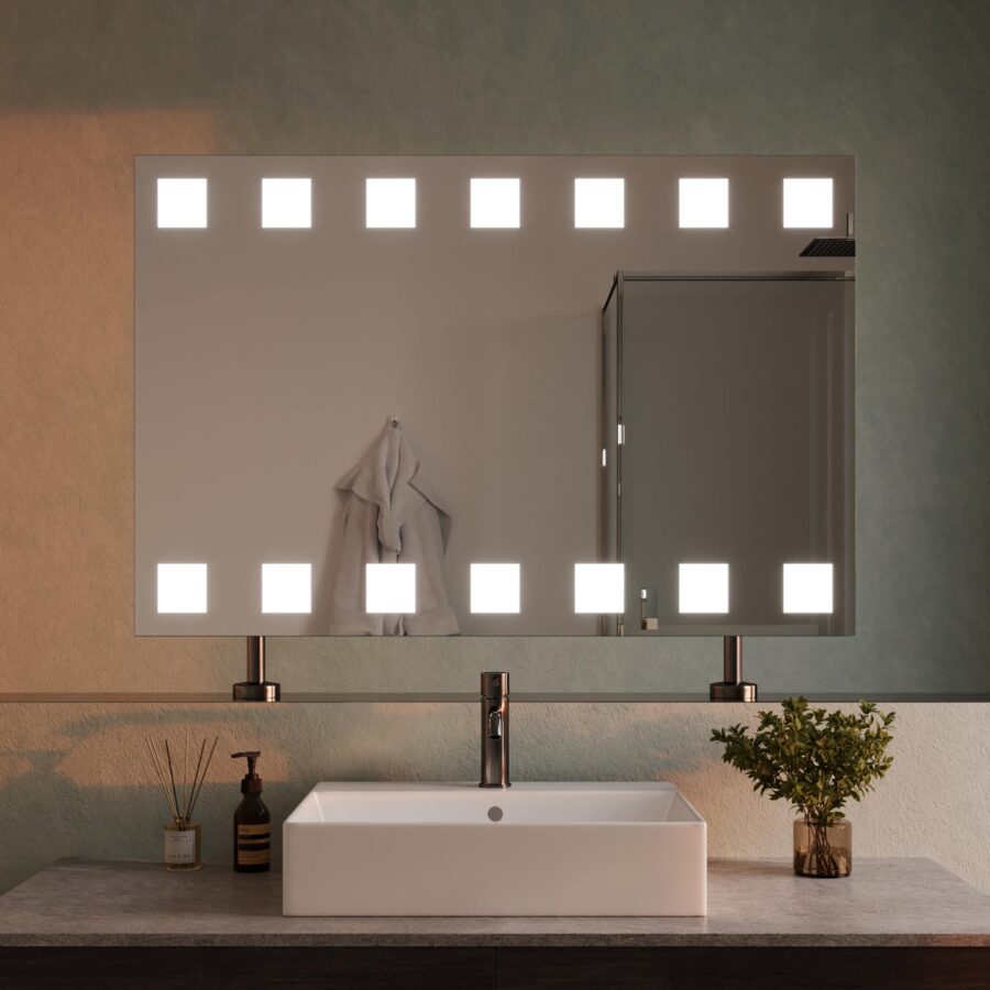 Der Spiegel Raumteiler mit Beleuchtung 'Hollywood Dice' ist mehr als nur ein Spiegel – er ist ein zentrales Gestaltungselement für anspruchsvolle Interieurs. Gefertigt als individuelle Maßanfertigung, fügt er sich nahtlos in Ihre Raumarchitektur ein und schafft klare, elegante Zonen, ohne die Offenheit zu beeinträchtigen. Sein Herzstück ist ein 5mm starker Kristallspiegel, dessen präzise geschliffene und veredelte Kanten von höchster Handwerkskunst zeugen und eine brillante, verzerrungsfreie Reflexion garantieren. Die oben positionierte LED-Beleuchtung setzt dabei neue Maßstäbe: Die speziell für kosmetische Anwendungen optimierte Lichtstärke taucht Ihr Gesicht in ein schattenfreies, authentisches Licht – ideal für die tägliche Pflegeroutine. Durch die indirekte Erhellung der Leuchtfelder entsteht zugleich ein sanftes, blendfreies Ambiente, das Ihr Badezimmer in eine private Wellness-Lounge verwandelt.