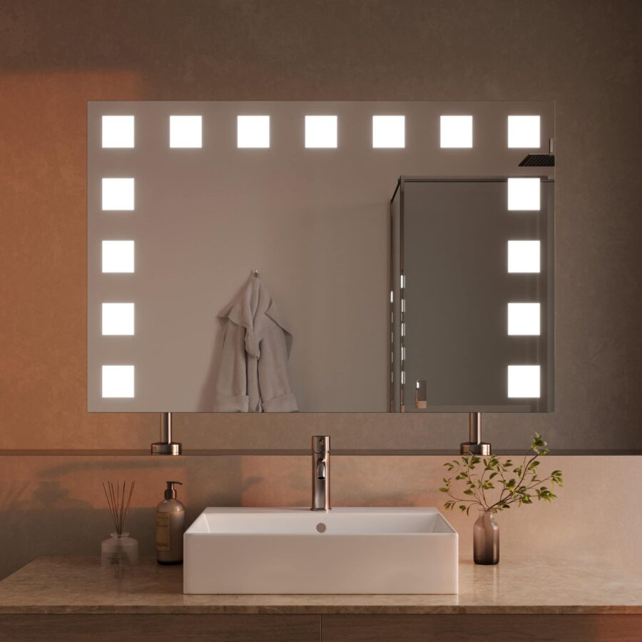 Der Spiegel-Raumteiler Noera ist mehr als nur eine Spiegelfläche – er ist ein architektonisches Statement für anspruchsvolle Bäder. Als maßgefertigtes Element trennt er elegant Bereiche und schafft neue Perspektiven, ohne dem Raum seine Großzügigkeit zu nehmen. Die dreiseitige LED-Beleuchtung (links, oben, rechts) liefert ein perfekt auf die Kosmetik abgestimmtes, schattenfreies Licht. Die Lichtquelle selbst bleibt dabei dezent verborgen: Die 4 cm breiten Leuchtfelder werden indirekt erhellt und erzeugen einen sanften, blendfreien Schein. Im ausgeschalteten Zustand präsentieren sich diese satinierten Flächen in einer edlen Milchglas-Optik, die sich harmonisch in das Gesamtbild einfügt. Gefertigt aus 5mm starkem Kristallspiegel mit präzise geschliffenen und veredelten Kanten, reflektiert dieser Spiegel nicht nur Ihr Bild, sondern auch Ihren Anspruch an erstklassige Qualität und durchdachtes Design.