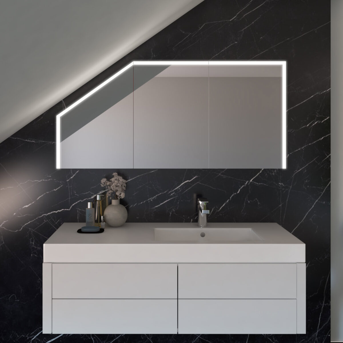 Erleben Sie die Verbindung aus passgenauer Fertigung und zeitlosem Design. Gestalten Sie jetzt Ihren individuellen Spiegelschrank für die Dachschräge.
