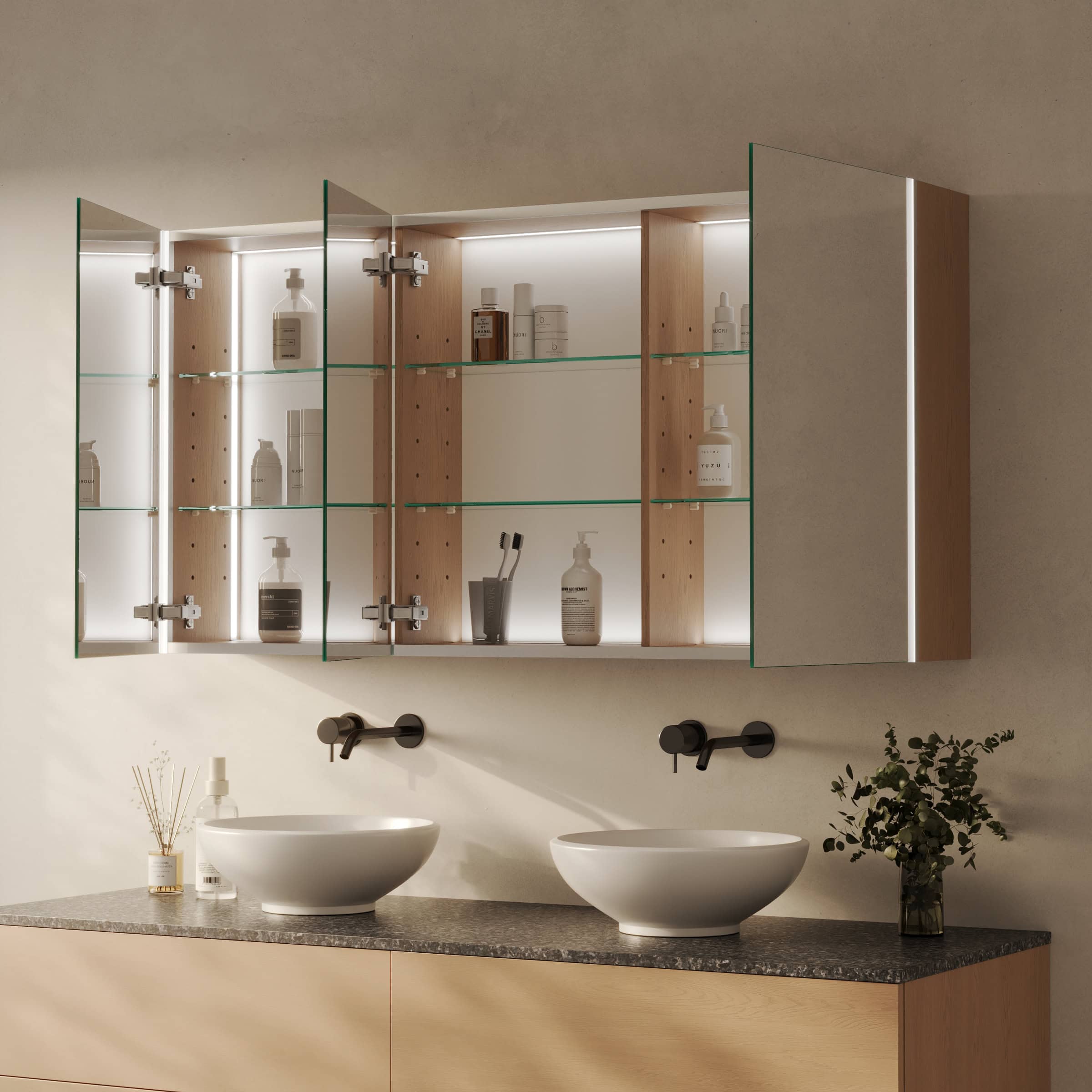 Erleben Sie die Symbiose aus Design, Funktion und Langlebigkeit. Konfigurieren Sie jetzt Ihren persönlichen Spiegelschrank mit Beleuchtung.