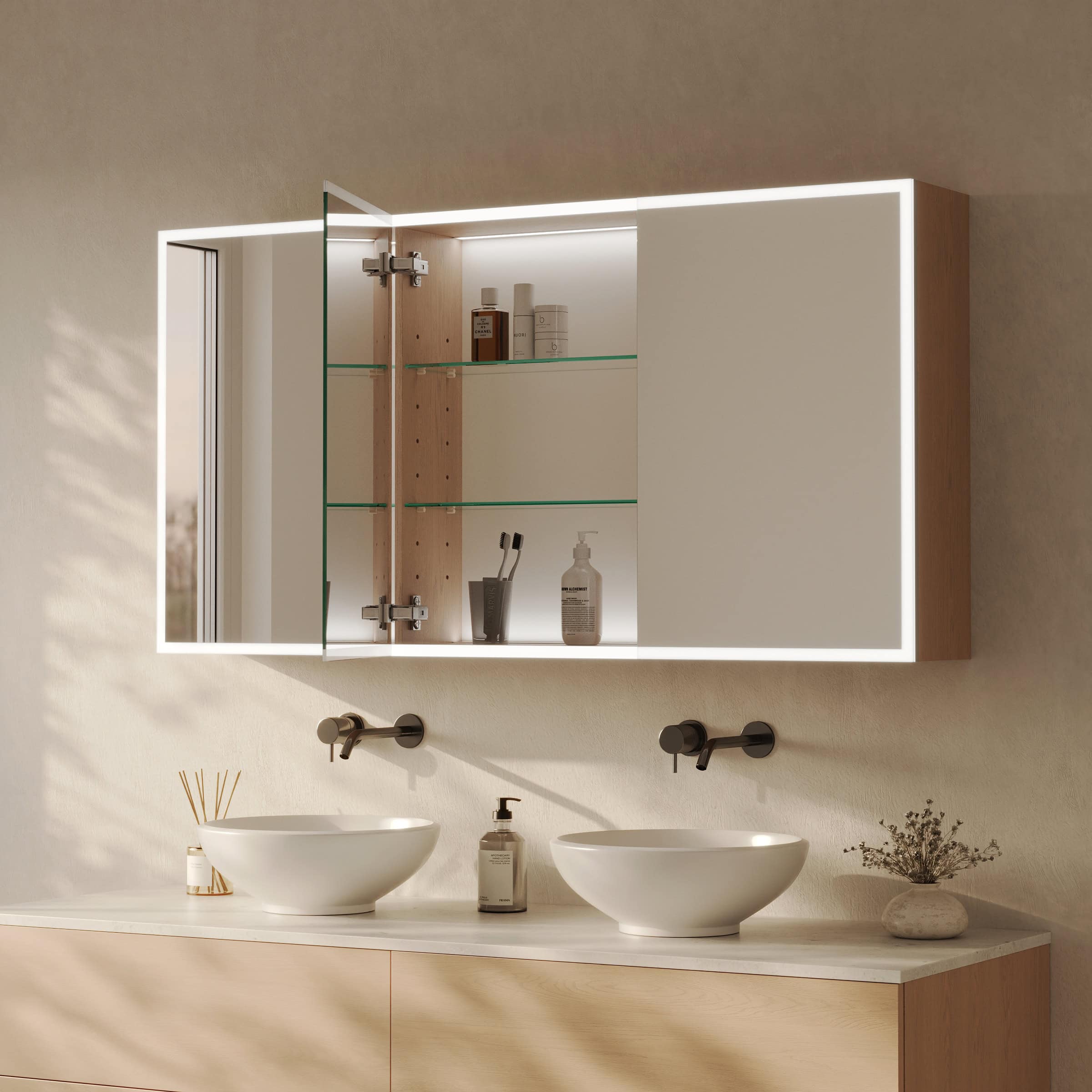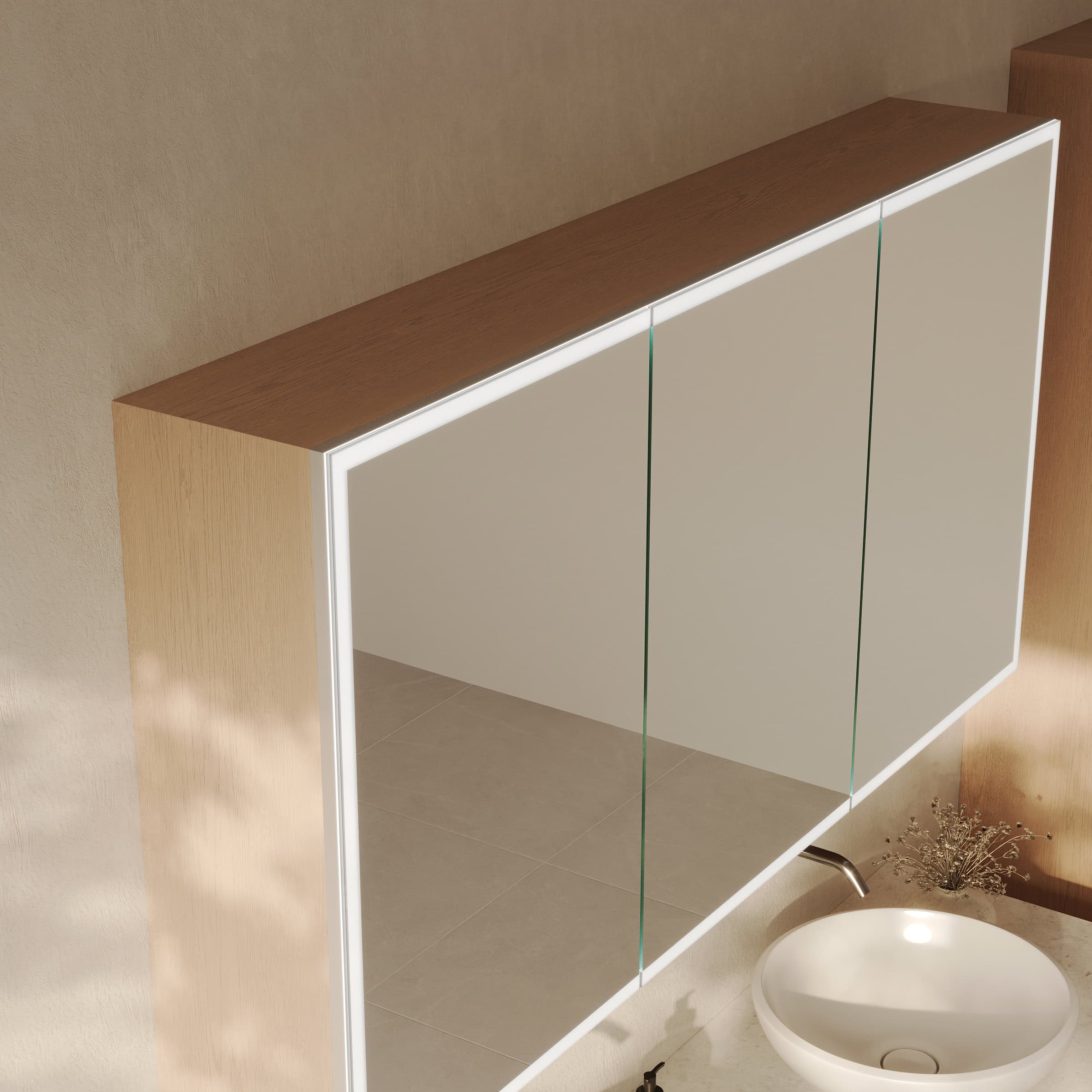 Gestalten Sie Ihr Badritual neu mit einem Spiegelschrank, der sich exakt Ihren Wünschen und Ihrem Raum anpasst.