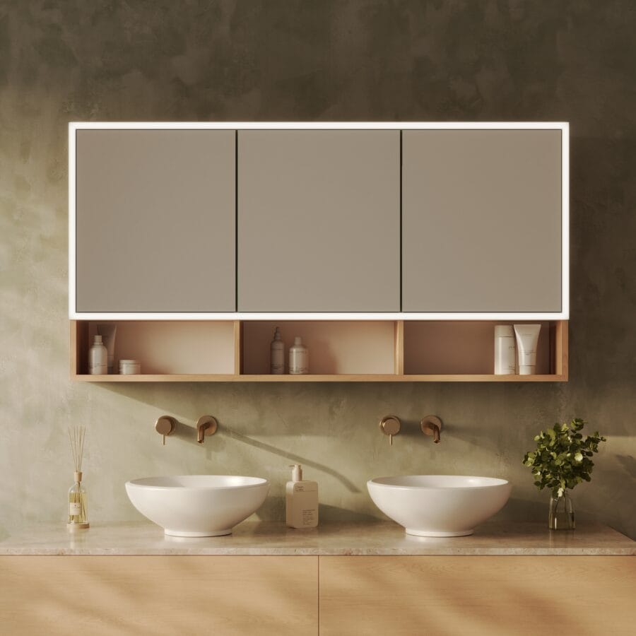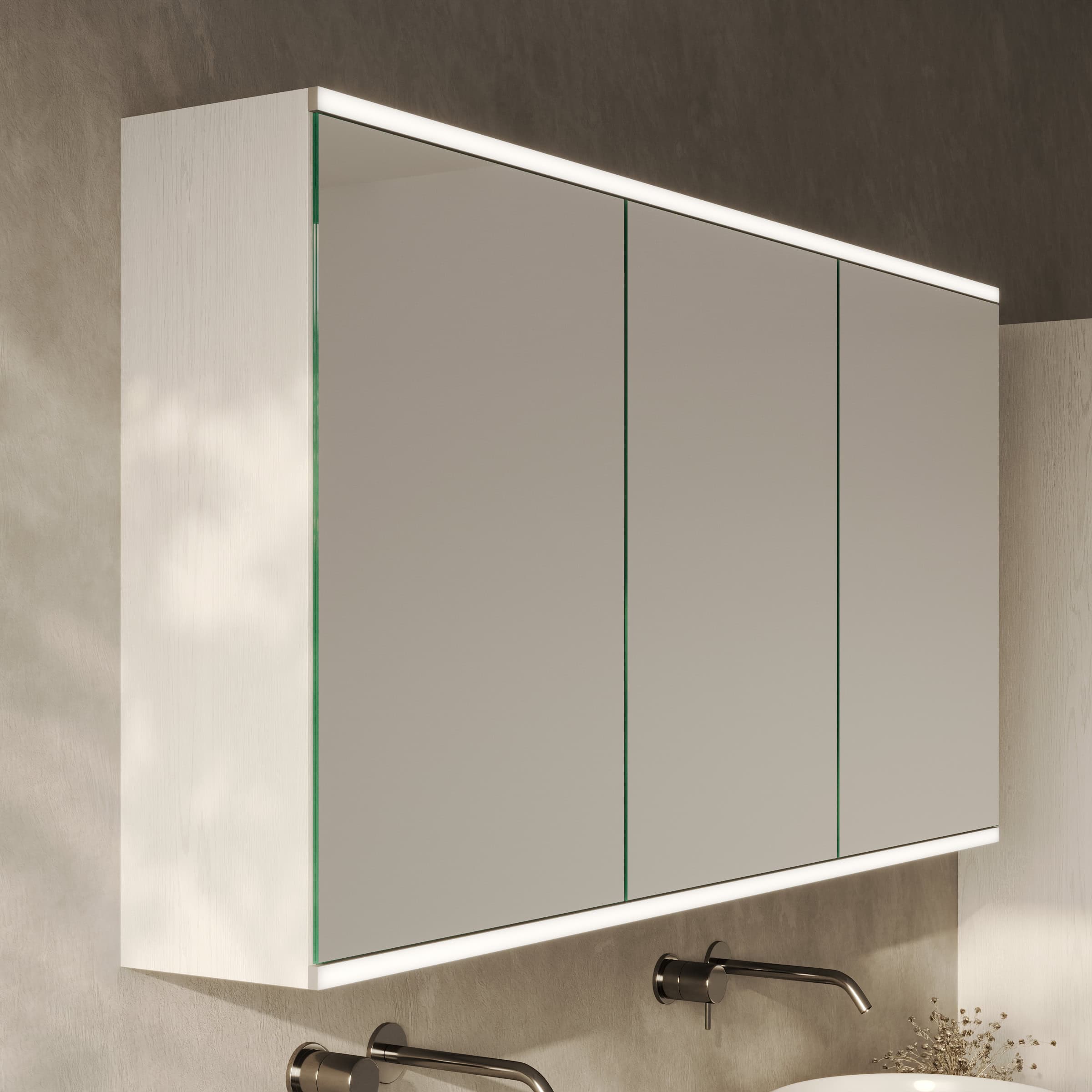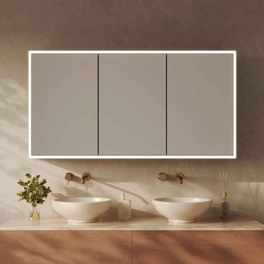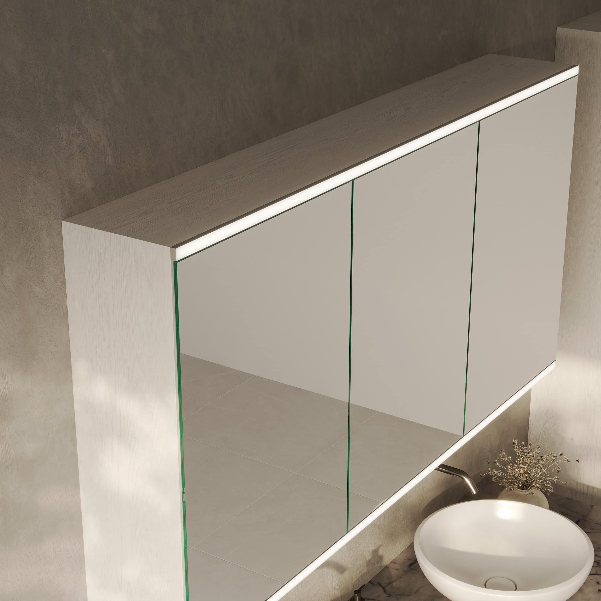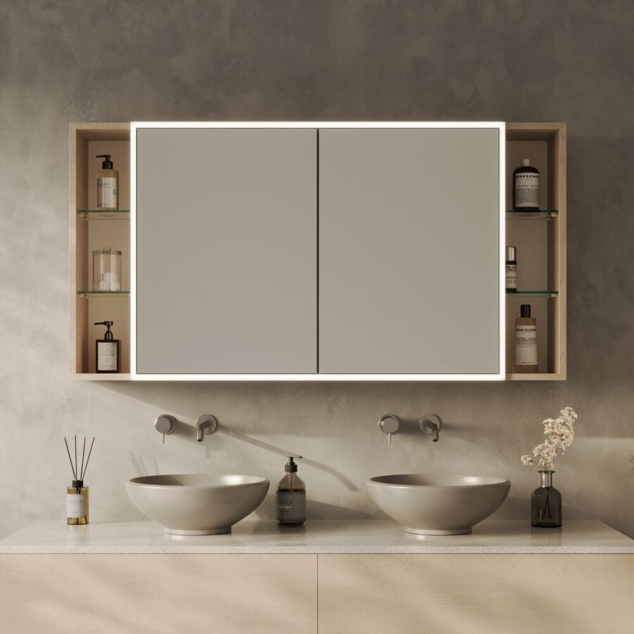 Gestalten Sie einen Spiegelschrank, der nicht nur aufbewahrt, sondern Ihr Bad mit brillantem Licht und Präzision veredelt.