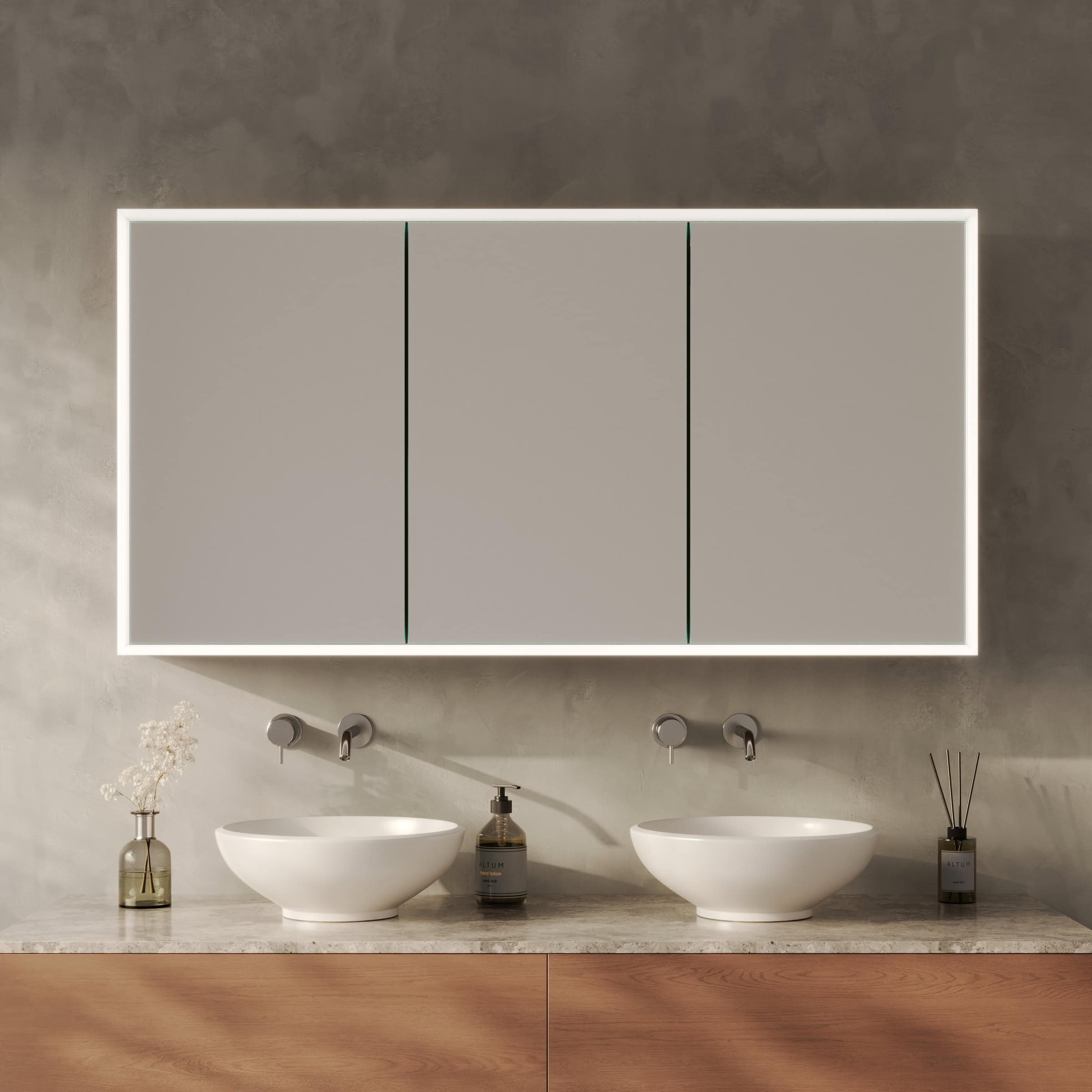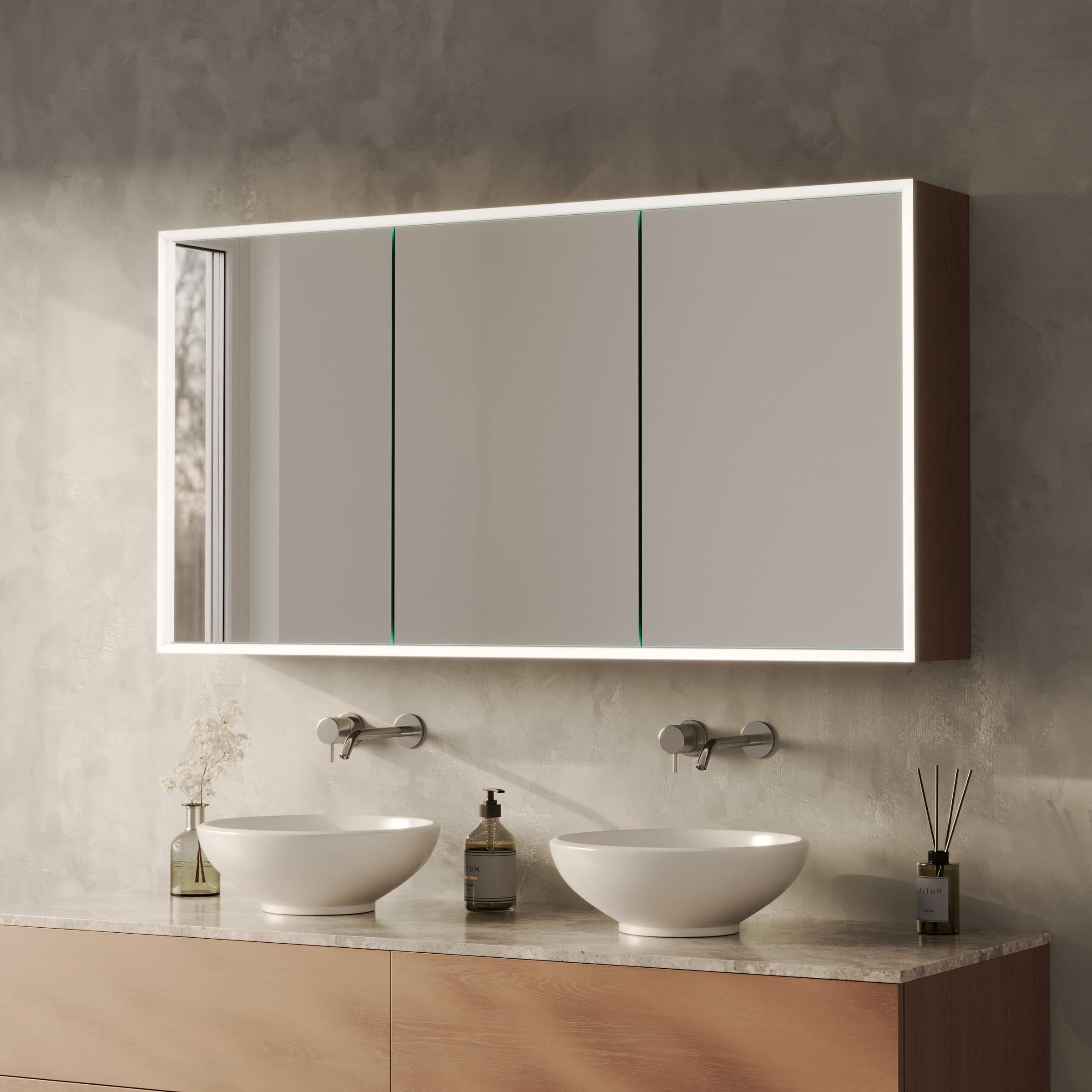 Verwandeln Sie Ihr Bad in eine private Bühne mit einem Spiegelschrank, der exklusiv für Sie gefertigt wird.