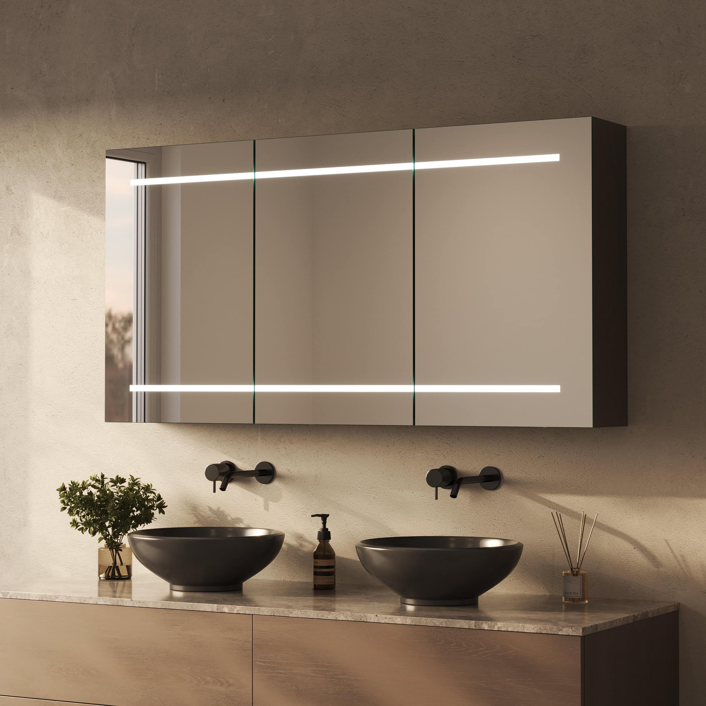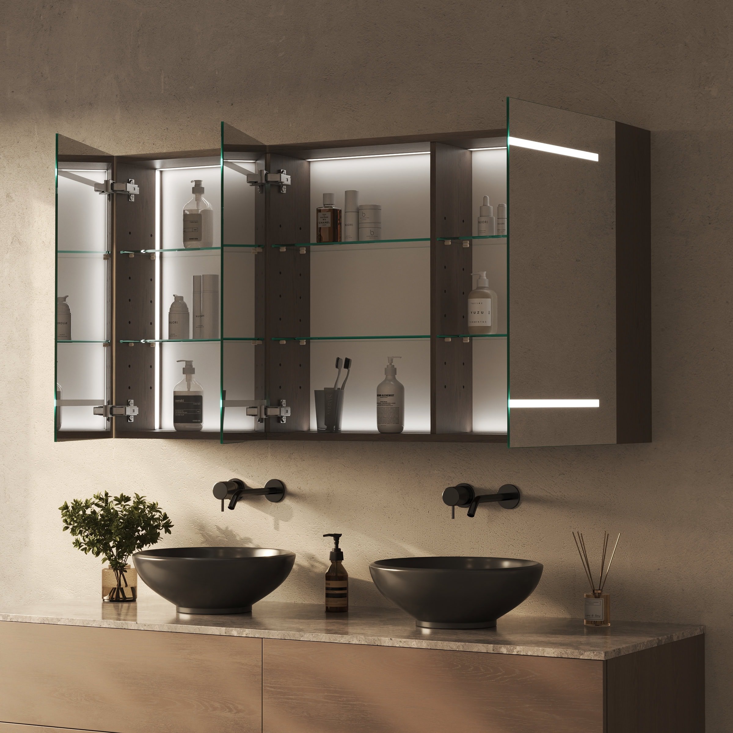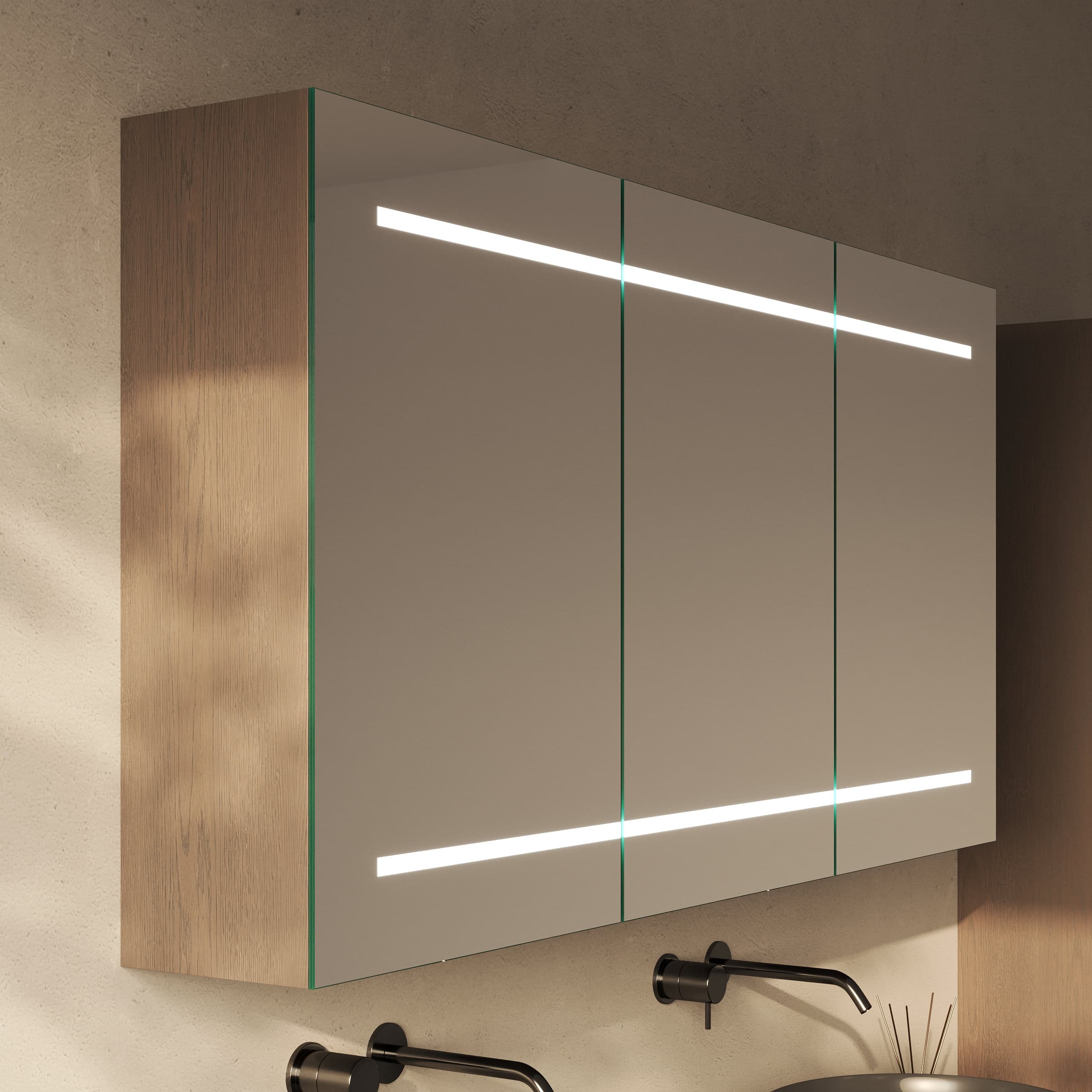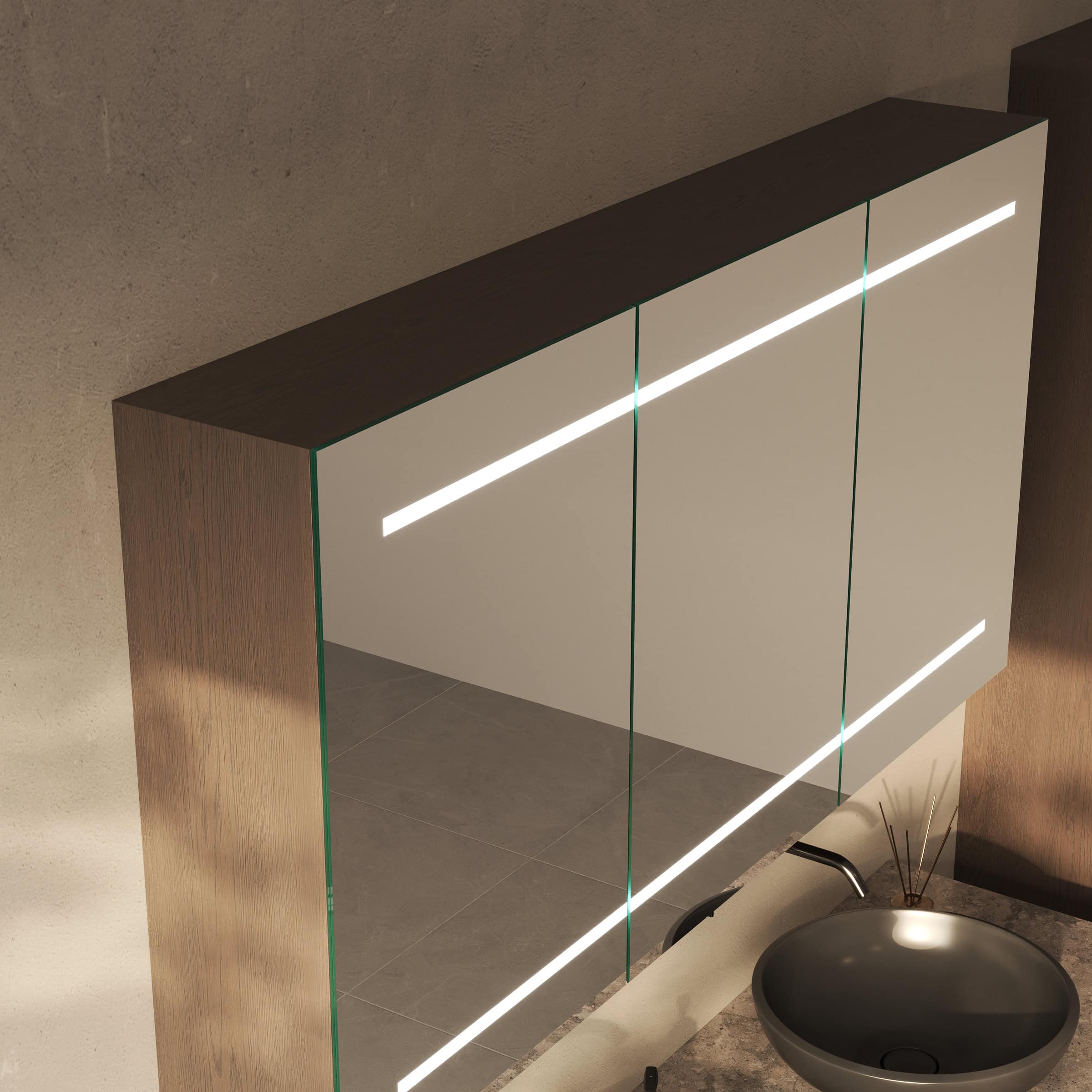 Gestalten Sie Ihr persönliches Refugium mit einem Spiegelschrank, der Design, Funktion und Atmosphäre meisterhaft vereint.
