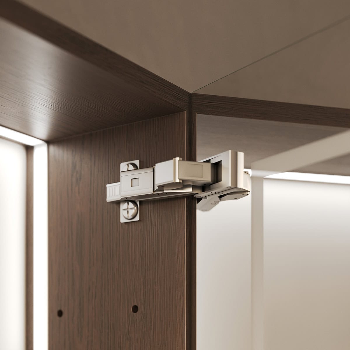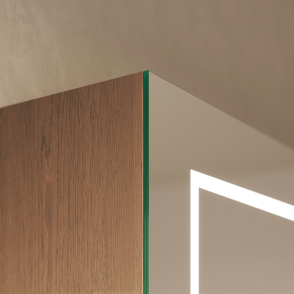 Der Spiegelschrank Modena ist mehr als nur Stauraum – er ist das Herzstück Ihrer persönlichen Wellness-Oase. Gefertigt nach Ihren exakten Maßvorgaben, fügt er sich nahtlos in die Architektur Ihres Badezimmers ein und wird so zum Ausdruck Ihres persönlichen Stils. Die umlaufende LED-Beleuchtung wurde speziell für kosmetische Anwendungen optimiert und hüllt Ihr Gesicht in ein klares, schattenfreies Licht für Ihre tägliche Pflegeroutine. Indirekt durch edle, satinierte Leuchtfelder gestreut, erzeugt sie gleichzeitig eine warme und einladende Atmosphäre. Im ausgeschalteten Zustand präsentieren sich die Lichtflächen in einer dezenten Milchglas-Optik, die das puristische Design unterstreicht. Im Inneren zeugen Details von höchster Qualität: Der brillante 6mm Kristallspiegel mit präzise geschliffenen Kanten, der stabile 19mm Korpus und die weltbekannten Blum-Scharniere, deren Soft-Close-Mechanismus die Türen sanft und beinahe lautlos schließt. Dieser Spiegelschrank fürs Bad ist eine bewusste Entscheidung für Langlebigkeit und zeitloses Design.
