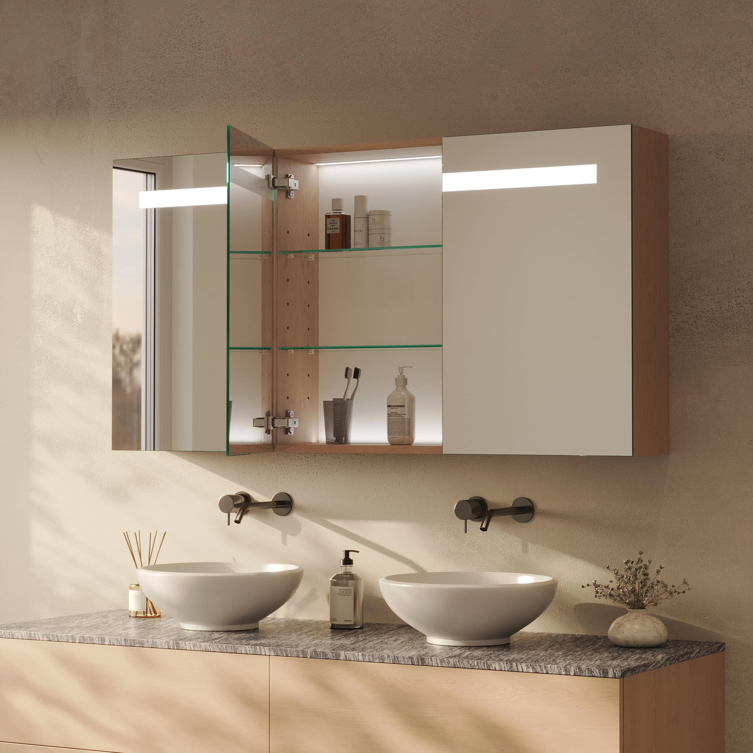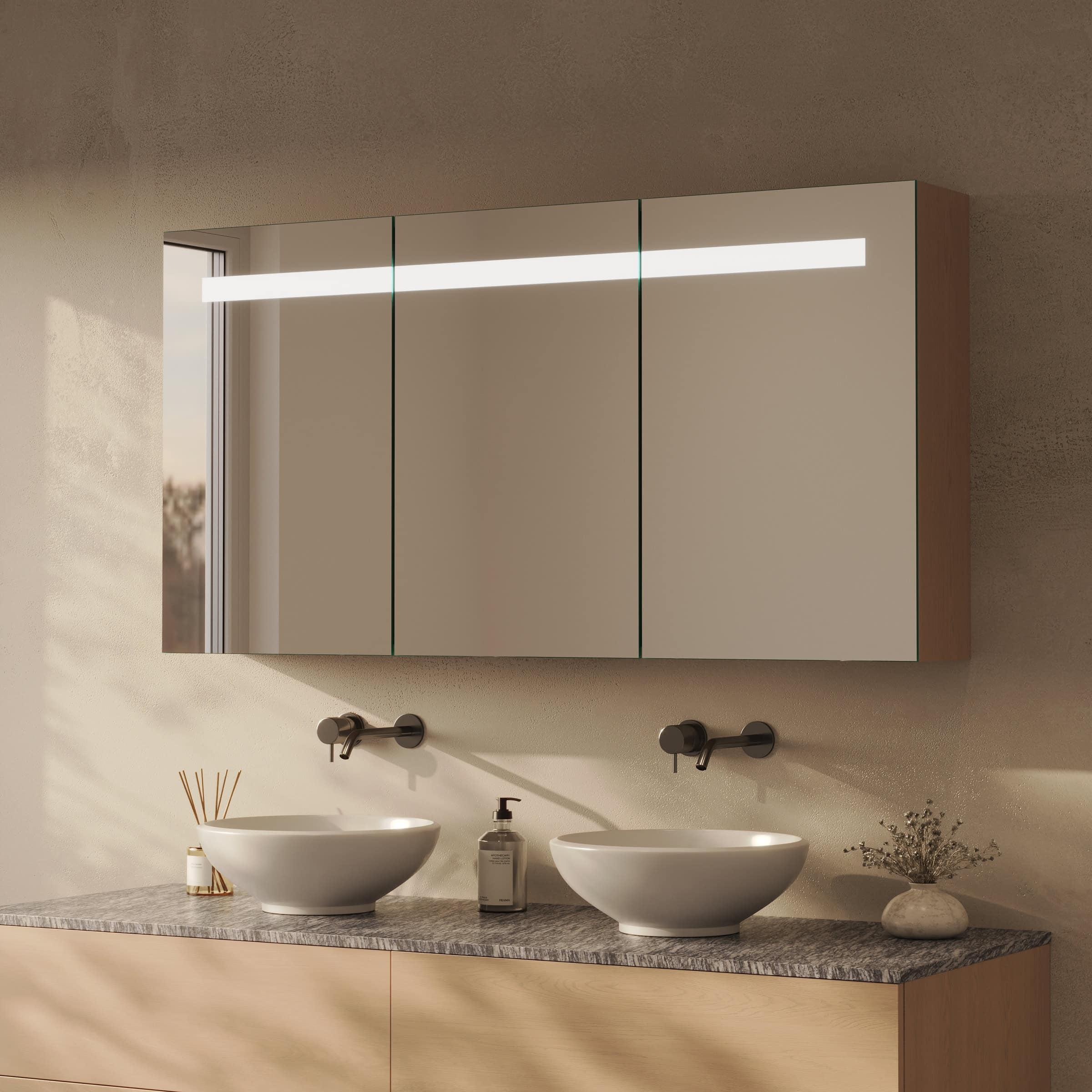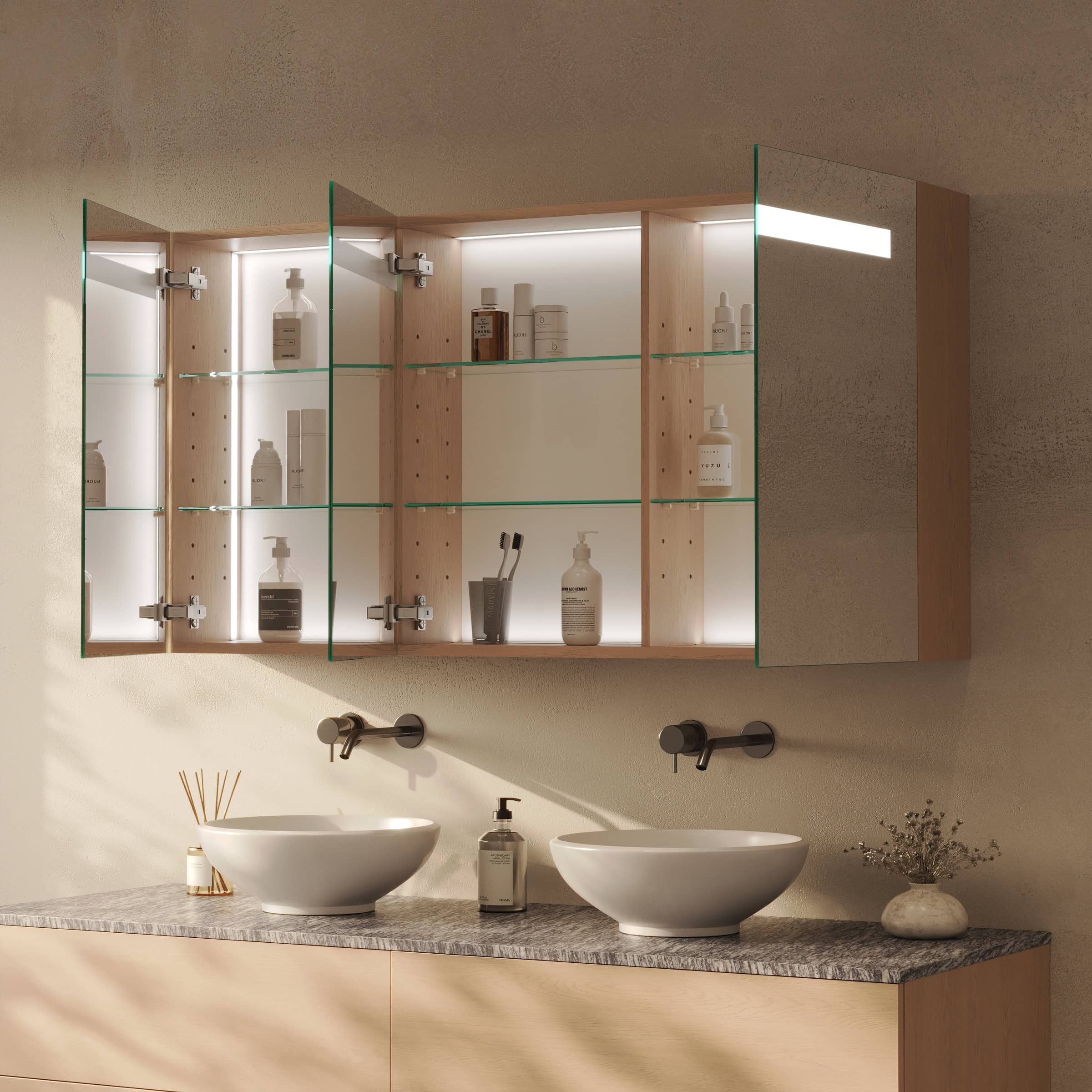 Maßgefertigte Eleganz und perfektes Licht: Ihr Spiegelschrank Noera