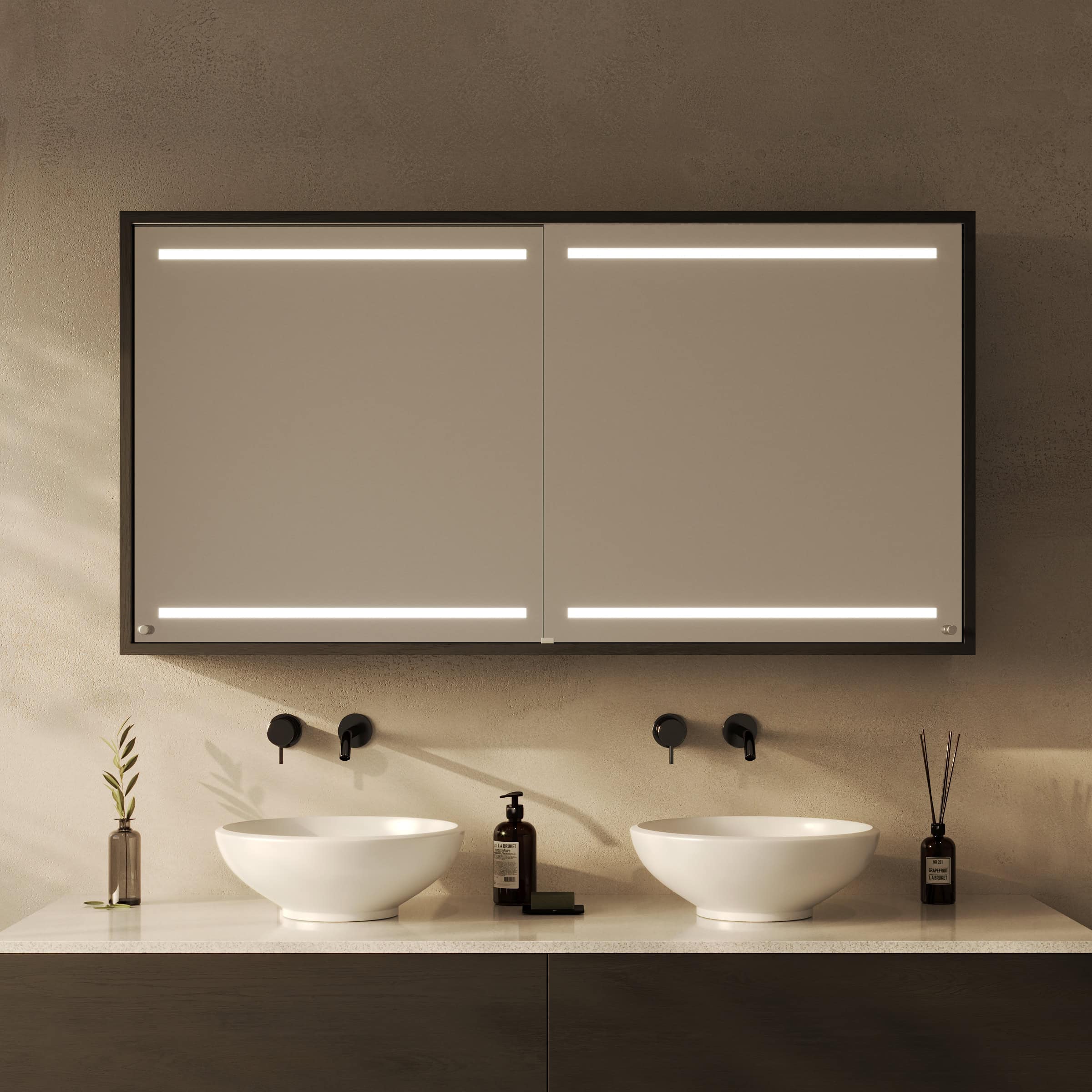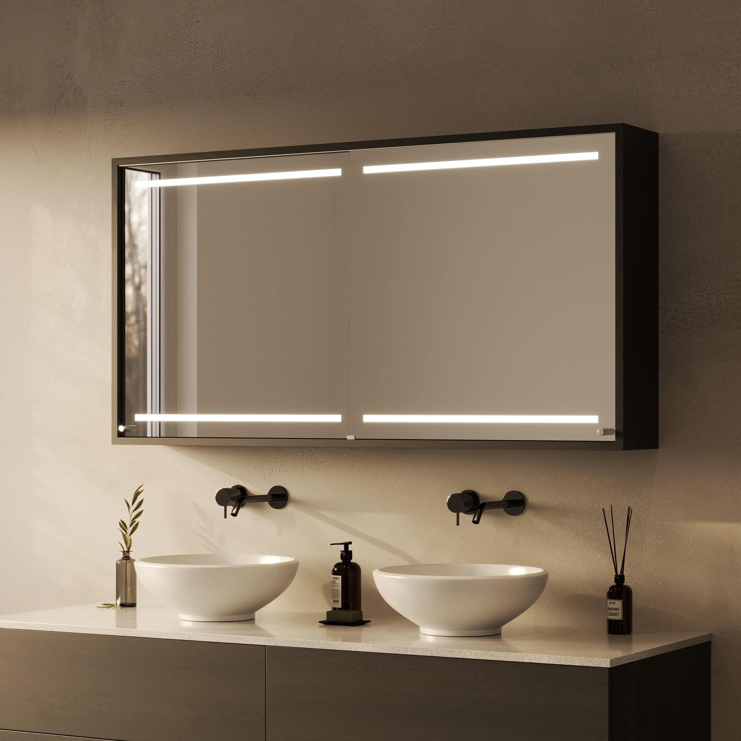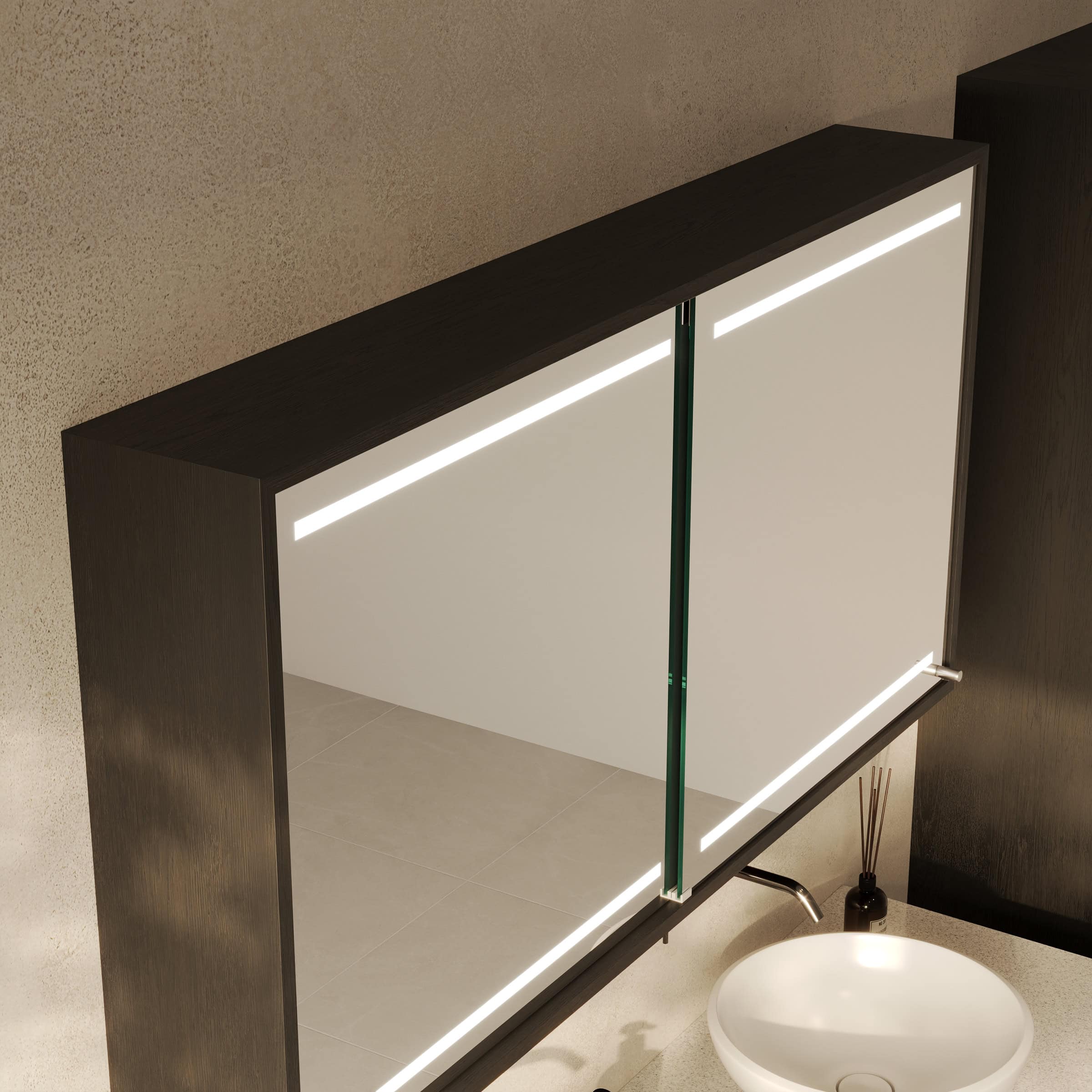 Maßgefertigte Eleganz: Der Spiegelschrank Modena mit atmosphärischer Beleuchtung