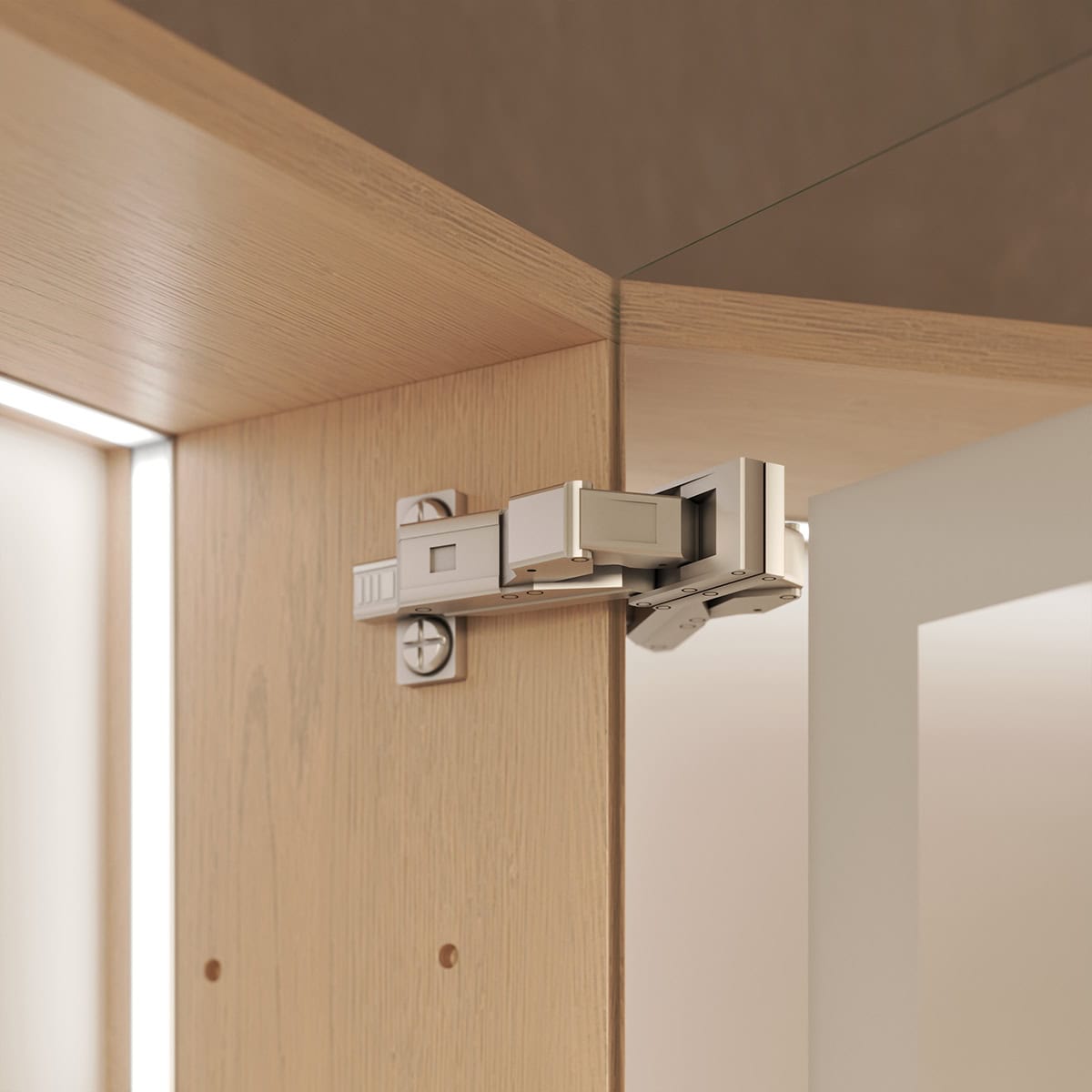 Der Spiegelschrank 'Noera rundherum' ist das Herzstück einer anspruchsvollen Badgestaltung. Als individuelle Maßanfertigung fügt er sich millimetergenau in Ihre Raumarchitektur ein und wird so zum Ausdruck Ihrer Persönlichkeit. Die Fronten aus 6 mm starkem Kristallspiegel mit präzise geschliffenen Kanten verleihen Ihrem Spiegelbild eine außergewöhnliche Tiefe und Brillanz. Umrahmt wird diese Klarheit von einer umlaufenden LED-Beleuchtung, die durch satinierte Leuchtfelder scheint. Das Resultat ist ein schmeichelhaftes, schattenfreies Licht – optimiert für Ihre tägliche Kosmetik- und Pflegeroutine. Im ausgeschalteten Zustand präsentieren sich die Leuchtfelder in einer dezenten Milchglas-Optik. Offene, seitliche Fächer bieten stilvollen Stauraum für Ihre liebsten Parfums und Accessoires, während der robuste, 19 mm starke Korpus in Ihrem Wunsch-Holzdekor für eine warme, natürliche Atmosphäre sorgt. Im Inneren zeugt jedes Detail von höchster Qualität: Die Türen schließen dank originaler Blum-Scharniere mit Soft-Close-Mechanismus samtweich und nahezu geräuschlos.