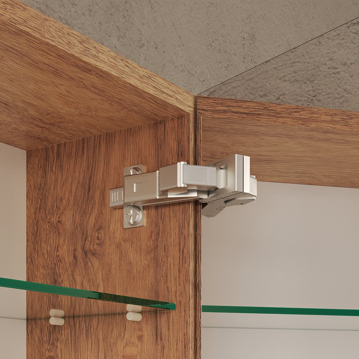 Der Spiegelschrank Cristal ist mehr als nur Stauraum; er ist ein Ausdruck Ihrer Persönlichkeit, gefertigt nach Ihren exakten Wünschen in Breite, Höhe und Tiefe. Das Herzstück bildet ein brillanter, 6mm starker Kristallspiegel, dessen präzise geschliffene und veredelte Kanten das Licht sanft reflektieren und Ihrem Badezimmer eine exklusive Atmosphäre verleihen. Der robuste Korpus aus 19mm starken Holzdekorplatten, dessen Farbe und Rückwand Sie frei bestimmen, bildet den perfekten Rahmen für dieses Designobjekt. Eine Besonderheit sind die integrierten unteren Fächer, die eine offene und zugleich stilvolle Ablagefläche für Ihre täglichen Essentials oder ausgewählte Dekorationsobjekte bieten. Im Inneren sorgt die bewährte Technik von Blum für ein Erlebnis der Extraklasse: Dank des Soft-Close-Mechanismus schließen die Türen stets sanft und lautlos – ein Detail, das die Hochwertigkeit dieses Badmöbels bei jeder Berührung unterstreicht.