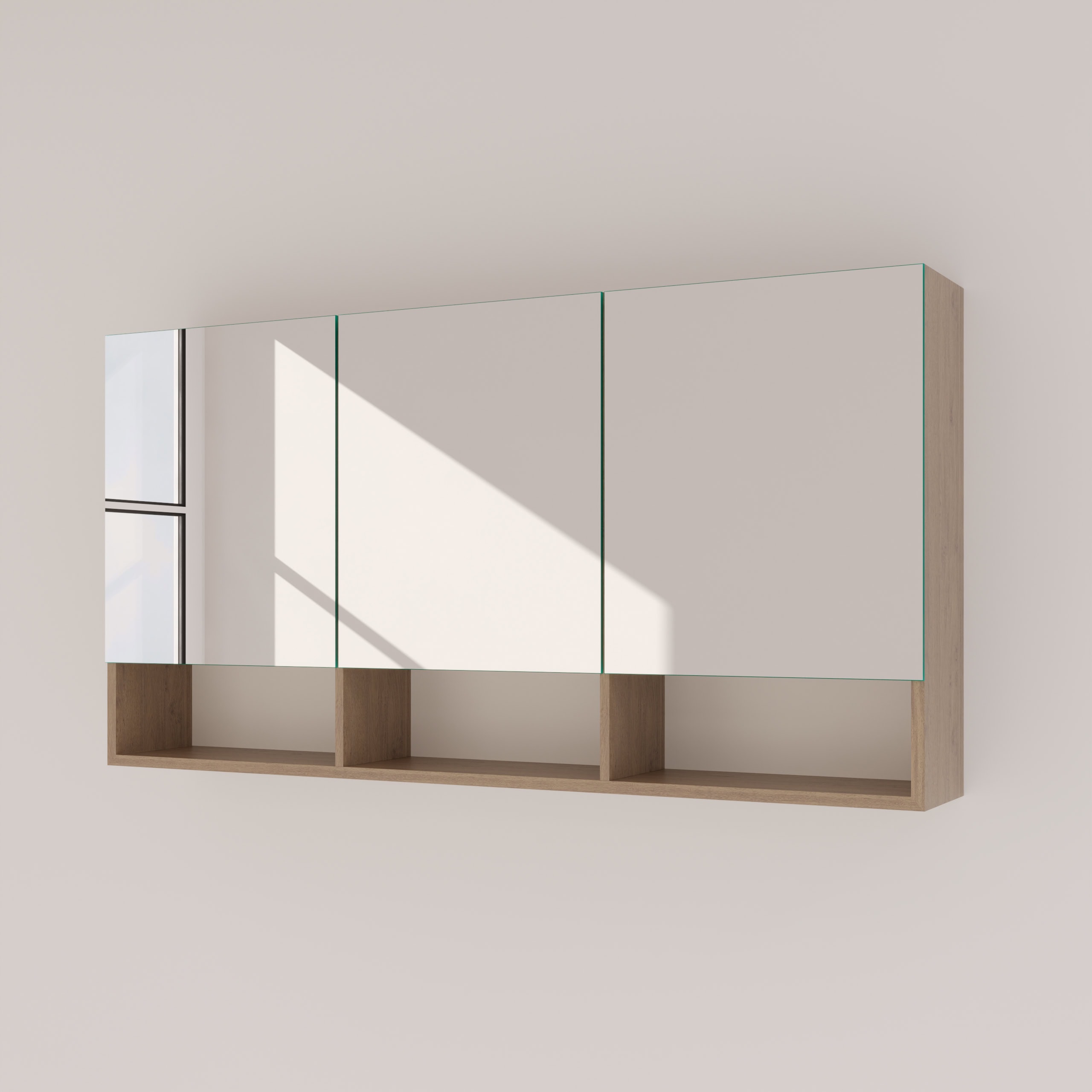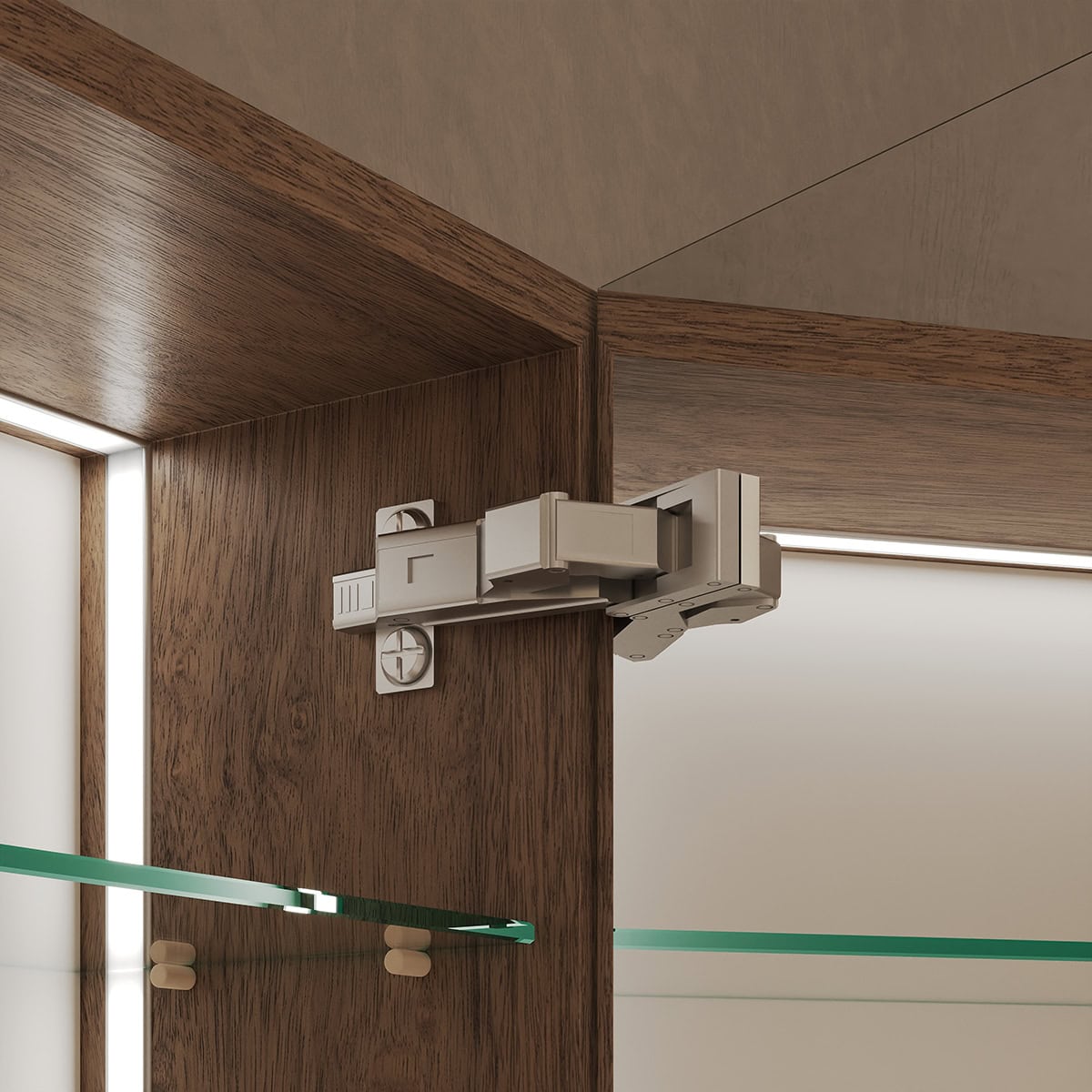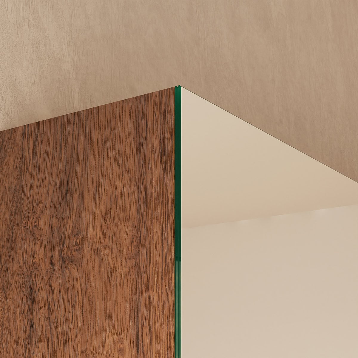 Der Spiegelschrank Aurea definiert anspruchsvolle Raumgestaltung neu. Gefertigt als individuelle Maßanfertigung, fügt er sich nahtlos in jede Nische und Wandfläche ein und schafft ein harmonisches Gesamtbild. Der Korpus aus 19 mm starken Holzdekorplatten in Ihrer Wunschfarbe bildet die solide Basis für die eleganten Spiegeltüren. Hinter dem 6 mm starken Kristallspiegel, dessen präzise geschliffene Kanten von höchster Verarbeitungsqualität zeugen, verbirgt sich eine durchdachte Innenwelt. Eine speziell für kosmetische Anwendungen optimierte LED-Innenbeleuchtung illuminiert den Inhalt sanft und blendfrei, sobald Sie die Tür öffnen. Die einzigartigen, offenen Fächer im unteren Bereich des Schranks bieten eine stilvolle Ablagefläche für täglich genutzte Utensilien oder Ihre liebsten Dekorationsstücke. Jede Türbewegung wird zum haptischen Erlebnis: Hochwertige Blum-Scharniere mit Soft-Close-Mechanismus sorgen für ein sanftes und geräuschloses Schließen.