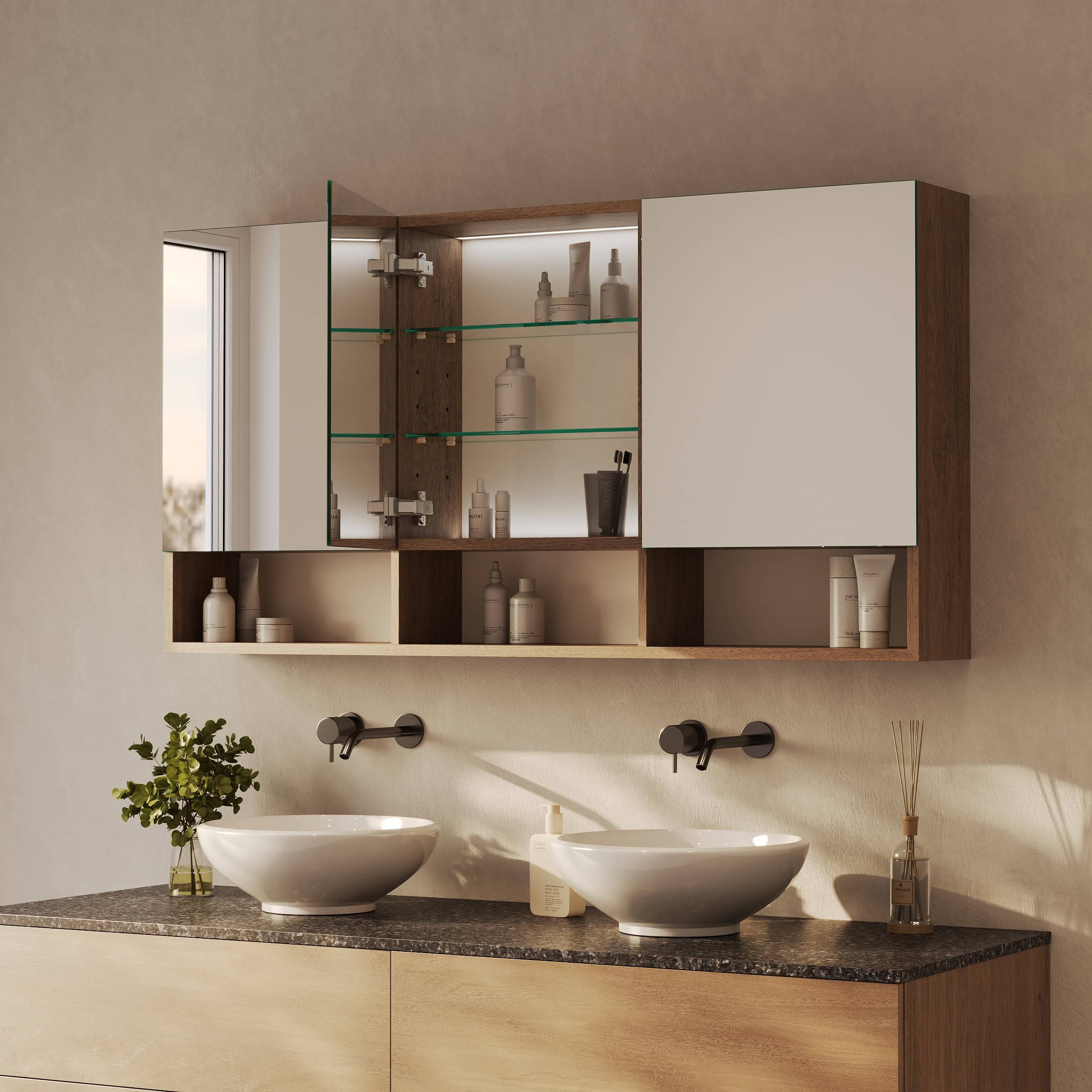 Verwandeln Sie Ihr Badezimmer in eine Oase der Ordnung und des Lichts mit einem Spiegelschrank, der exakt nach Ihren Wünschen gefertigt wird.