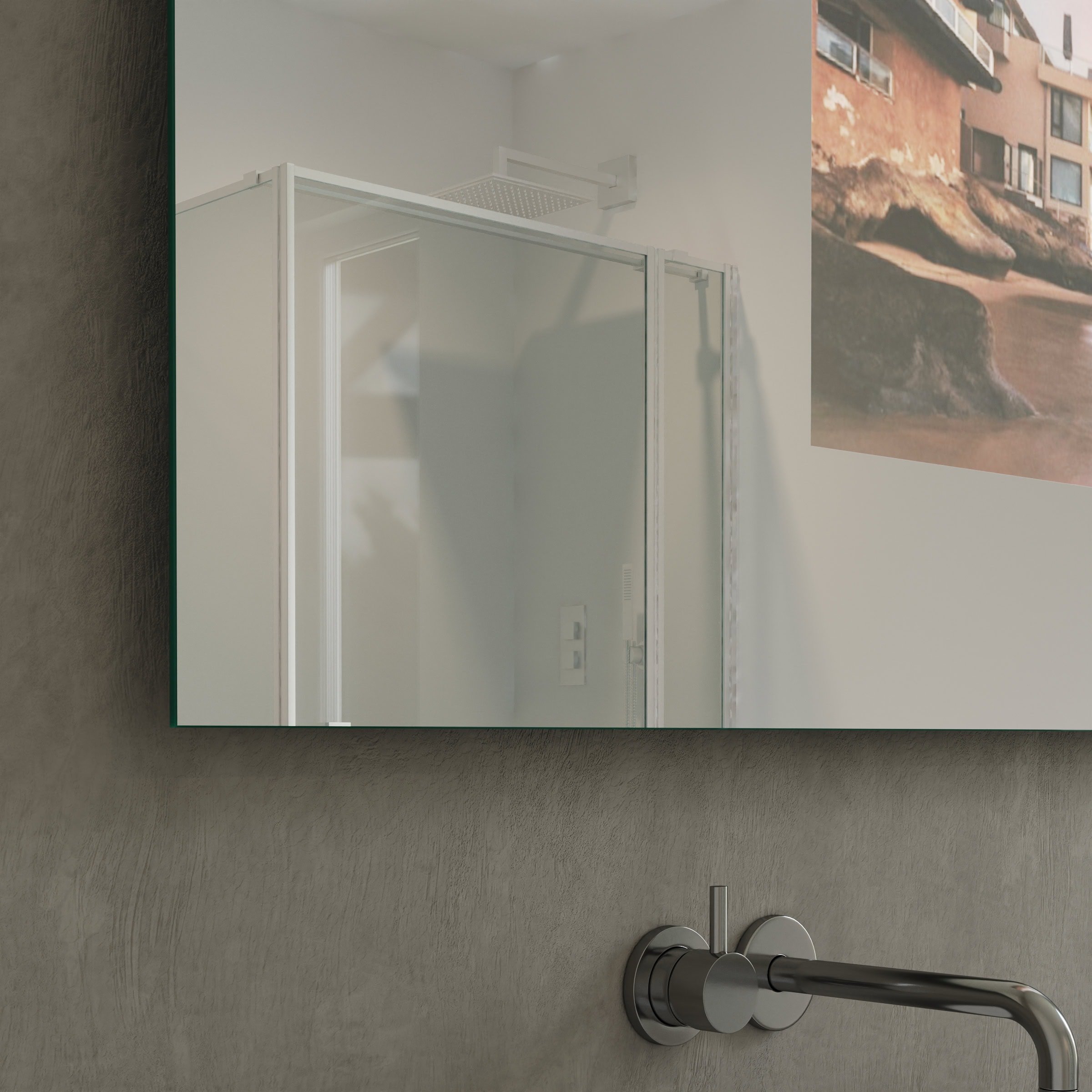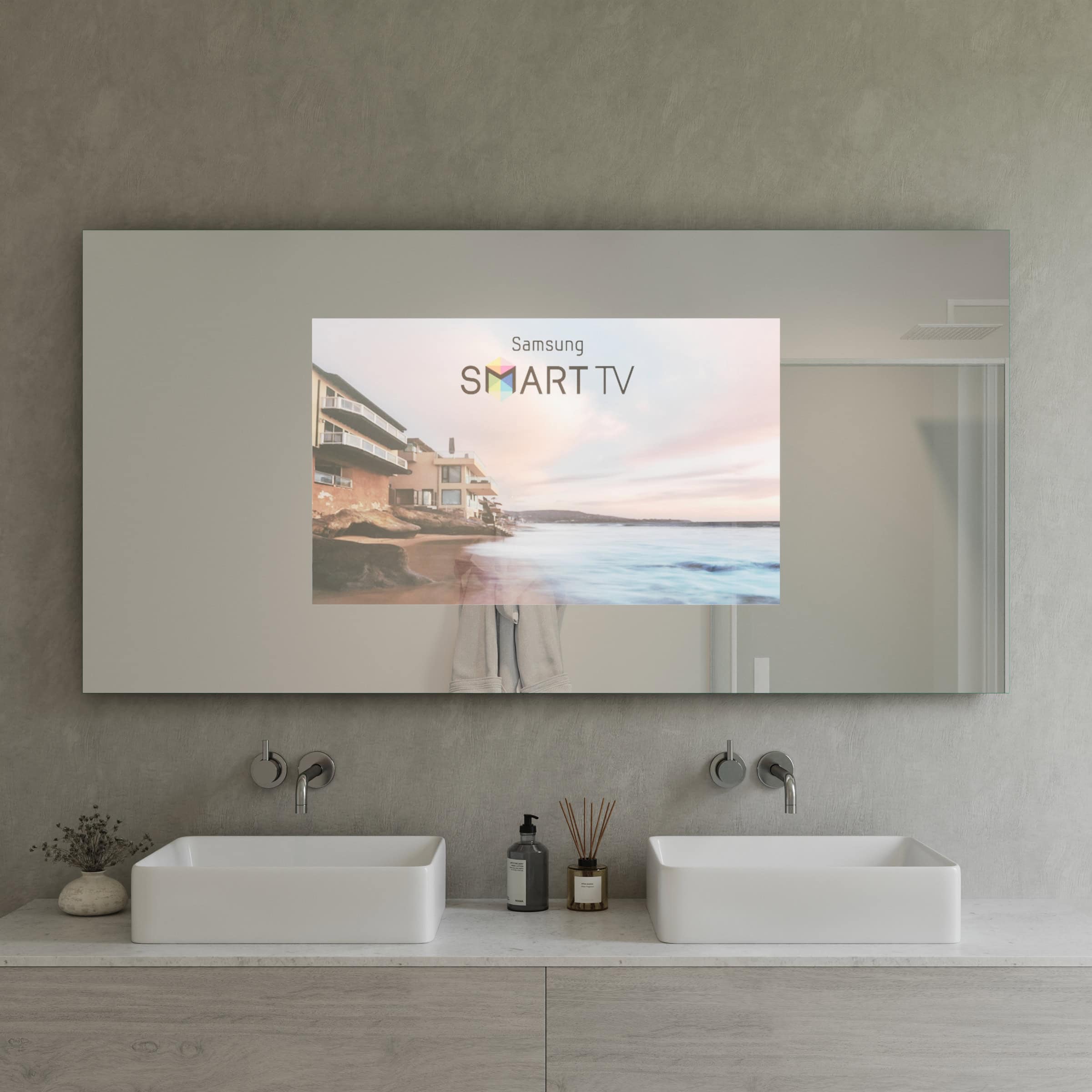 Der TV Spiegel Cristal definiert die Grenzen zwischen Funktion und Design neu. Im ausgeschalteten Zustand präsentiert er sich als makelloser, hochwertiger Spiegel, der Ihrem Raum Tiefe und Licht verleiht. Sein Geheimnis liegt im erstklassigen Spionglas: Aktivieren Sie den integrierten Fernseher, verschwindet die Spiegelfläche und macht Platz für ein brillantes, gestochen scharfes Bild. Dank individueller Maßanfertigung fügt sich dieser Spiegel mit TV nahtlos in jede Raumarchitektur ein – exakt nach Ihren Breiten- und Höhenvorgaben. Das 6mm starke Sicherheitsglas mit seinen sorgfältig geschliffenen und veredelten Kanten unterstreicht den kompromisslosen Qualitätsanspruch und sorgt für eine beeindruckende Langlebigkeit. Mit einer Bautiefe von nur 60mm entsteht eine flächenbündige, minimalistische Ästhetik, die Ihr Badezimmer in eine private Wellness-Oase ohne sichtbare Technik verwandelt.