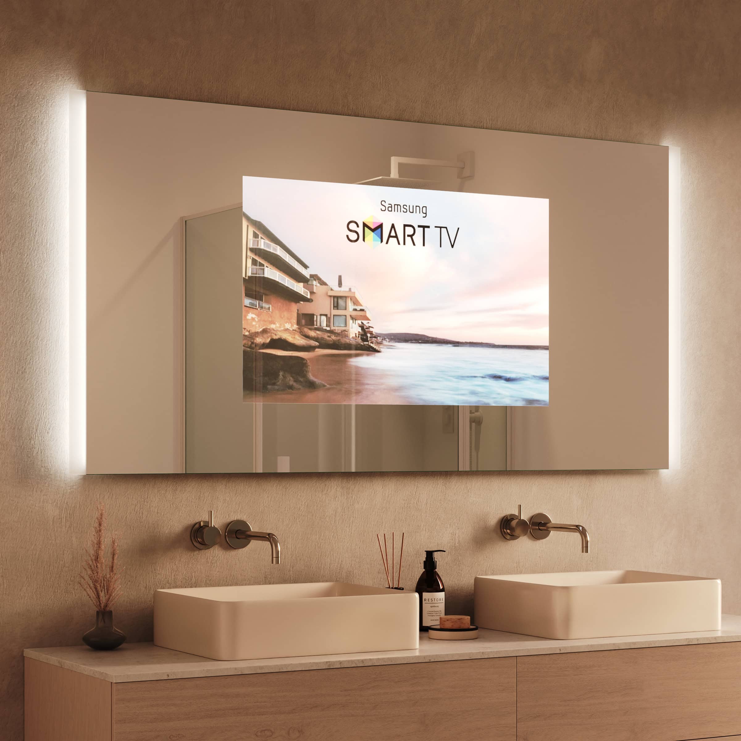 Erleben Sie die Symbiose aus präziser Maßanfertigung und innovativer Funktion. Gestalten Sie mit dem TV Spiegel Noemi ein zeitloses Designobjekt für Ihr anspruchsvolles Badambiente.