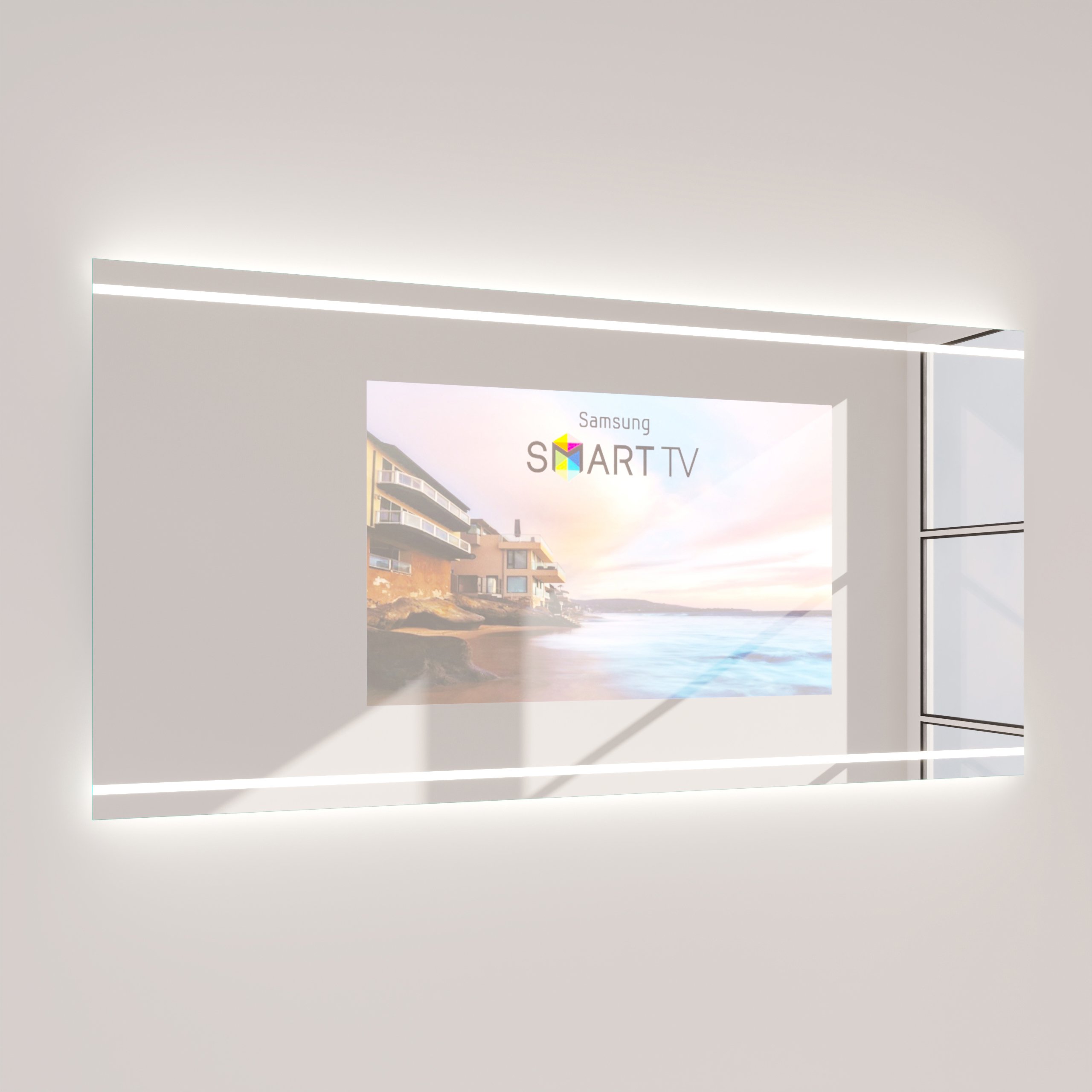 Erleben Sie, wie sich eine makellose Spiegelfläche auf Wunsch in ein brillantes TV-Display verwandelt.