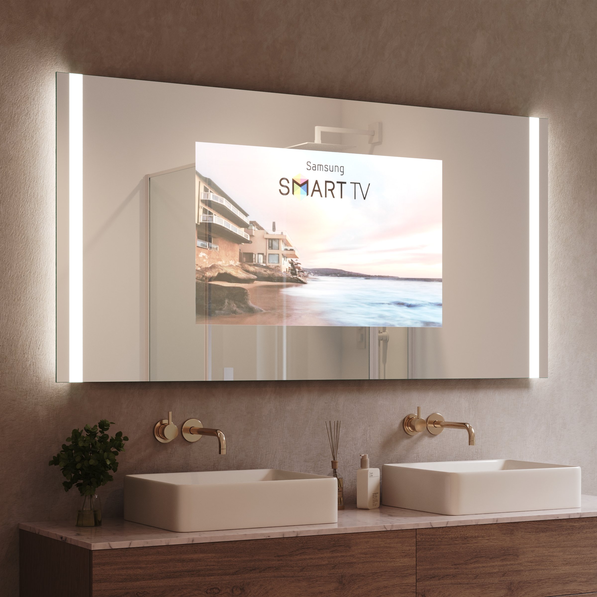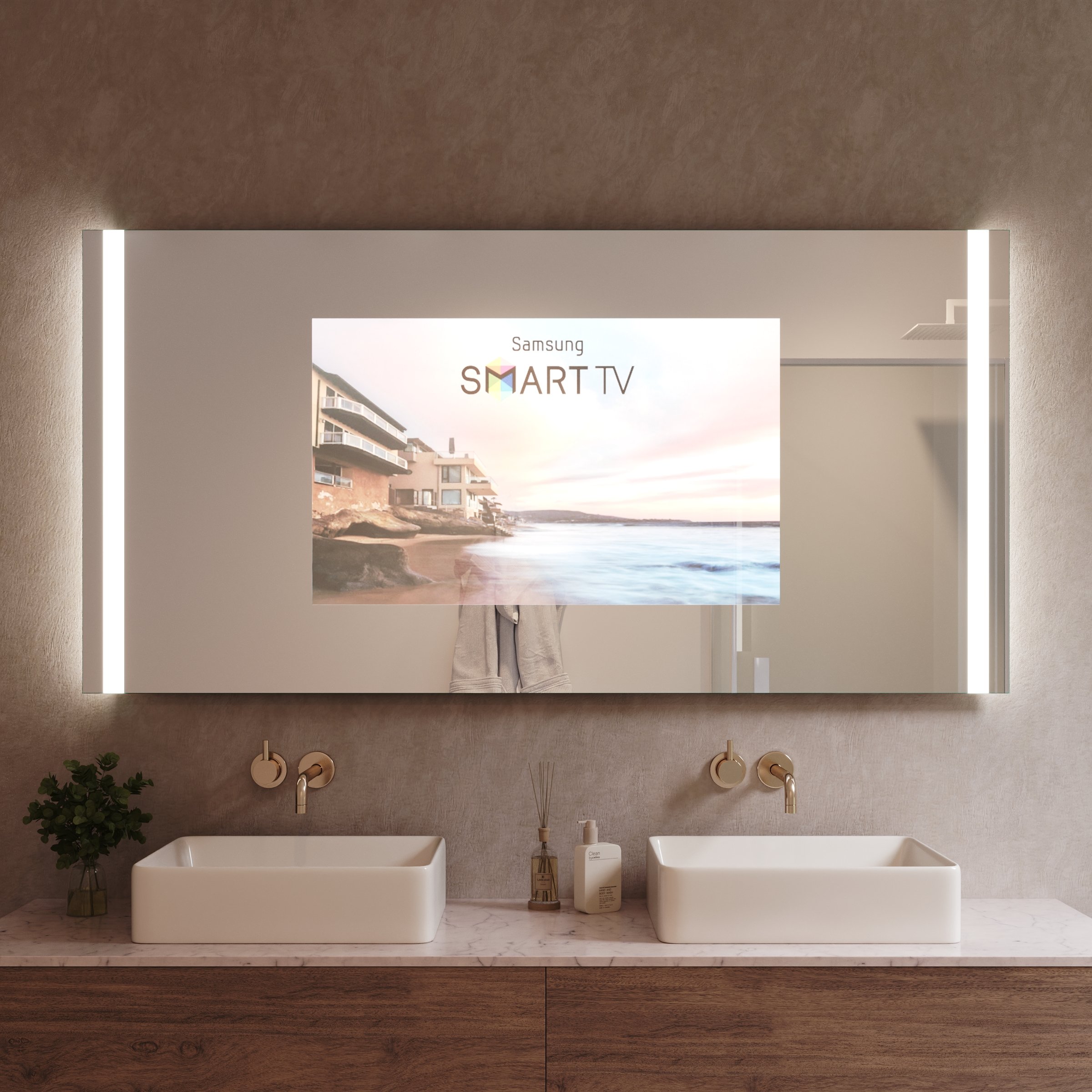 Verwandeln Sie Ihr Badezimmer in eine Oase, in der sich exklusives Design und smarte Unterhaltung elegant vereinen.