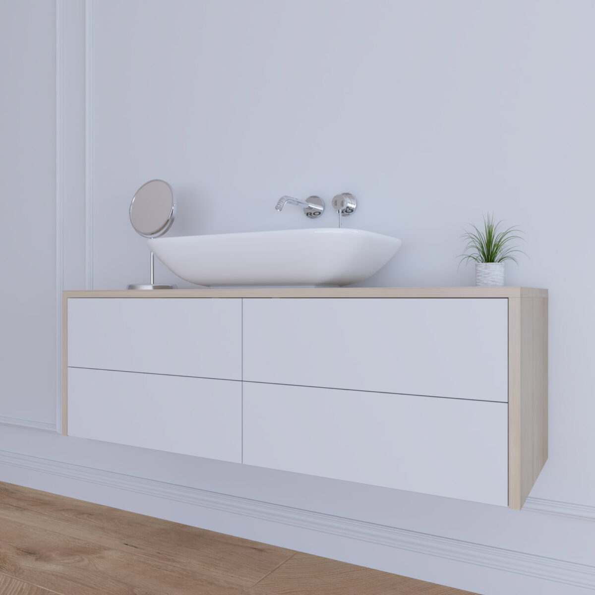 Erleben Sie die Symbiose aus präziser Fertigung, Langlebigkeit und zeitlosem Design. Konfigurieren Sie jetzt Ihren Alora Unterschrank und vollenden Sie Ihr Traumbad.