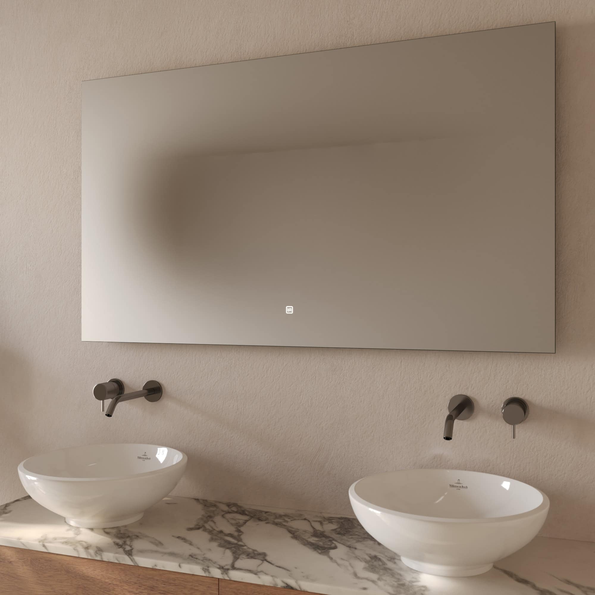 Machen Sie Ihren Badspiegel zur Kommandozentrale Ihres Badezimmers. Eine integrierte Spiegelheizung sorgt nach dem Duschen sekundenschnell für eine klare Sicht und beendet das lästige Beschlagen. Ein unauffällig integrierter Kosmetikspiegel mit Vergrößerung erleichtert die Detailarbeit, während eine digitale Uhr Sie immer auf dem Laufenden hält. Für Unterhaltung und das perfekte Ambiente sorgen auf Wunsch sogar integrierte Bluetooth-Lautsprecher. All diese Optionen und mehr können Sie in unserem Konfigurator nach Belieben zusammenstellen.